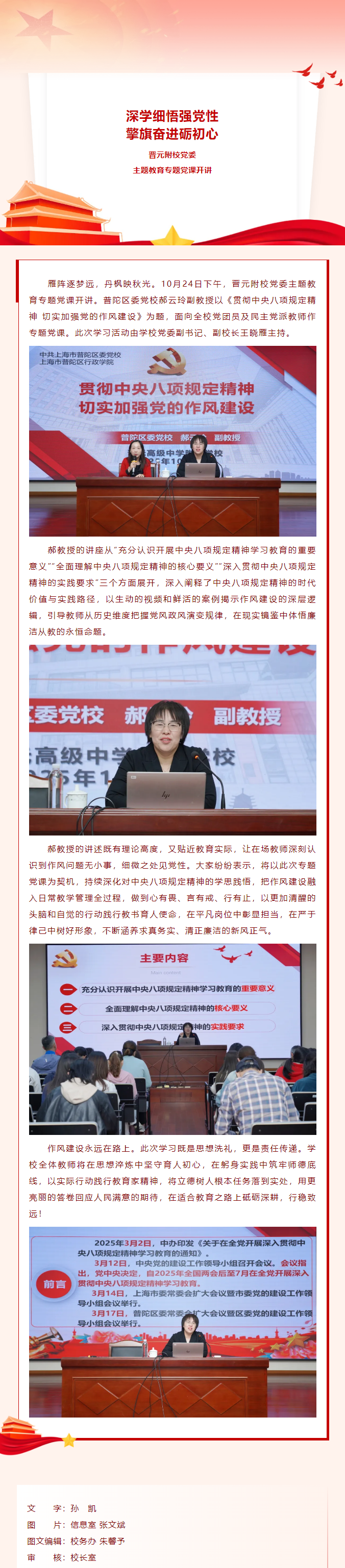 深学细悟强党性 擎旗奋进砺初心——晋元附校、西校及南校党委主题教育专题党课开讲
