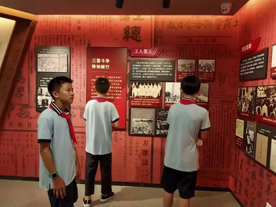 “苦难岁月” “觉醒成长”“反帝怒潮”“燎原烈火”“永恒纪念”…… 通过文字、影像资料、历史书刊等形式 ,队员们了解了顾正红烈士的生平事迹和五卅运动等重大历史事件。