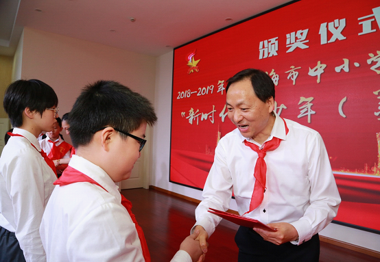 第三篇章“理想践行少年强”,通过选树一批在学习实践中涌现出来的“身边小榜样”,感召莘莘学子,激励他们以德为先、向善向上、自立自强、不断成长。活动现场,市、区有关领导为荣获2019年度普陀区“学雷”奖学金一等奖及2018-2019年度上海市“新时代好少年(美德少年)”的少先队员颁奖。其中,我校七(1)班的赵诗悦同学也作为“学雷”奖学金一等奖的队员接受表彰。