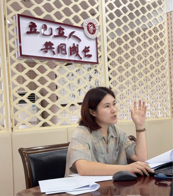 会议开始,虞凌洁主任代表学校对与会的各位专家和成员表示热烈欢迎。随后,郭嘉琳老师围绕《小学三年级语文思辨性表达的学习支架开发与应用研究》作开题报告。该课题立足《义务教育语文课程标准(2022年版)》,聚焦小学三年级语文思辨性表达,旨在开发并应用学习支架,构建起语文本位、学段适配、操作性强的支架体系,通过对小学中段思辨性表达的细化研究,直接破解一线教师“不知如何教”的难题,助力学生预防“三年级现象”,为高段思维能力发展筑牢基础。