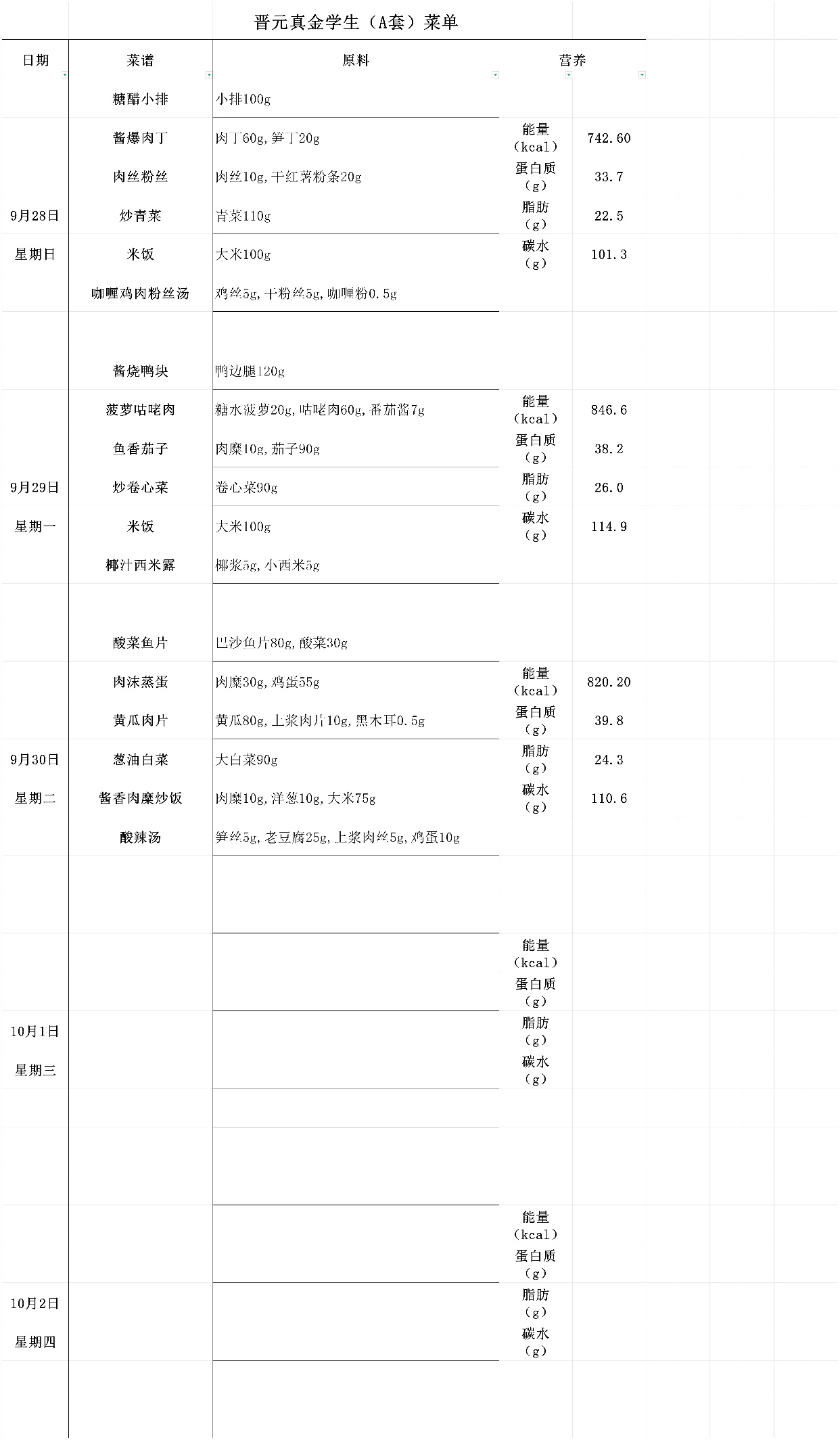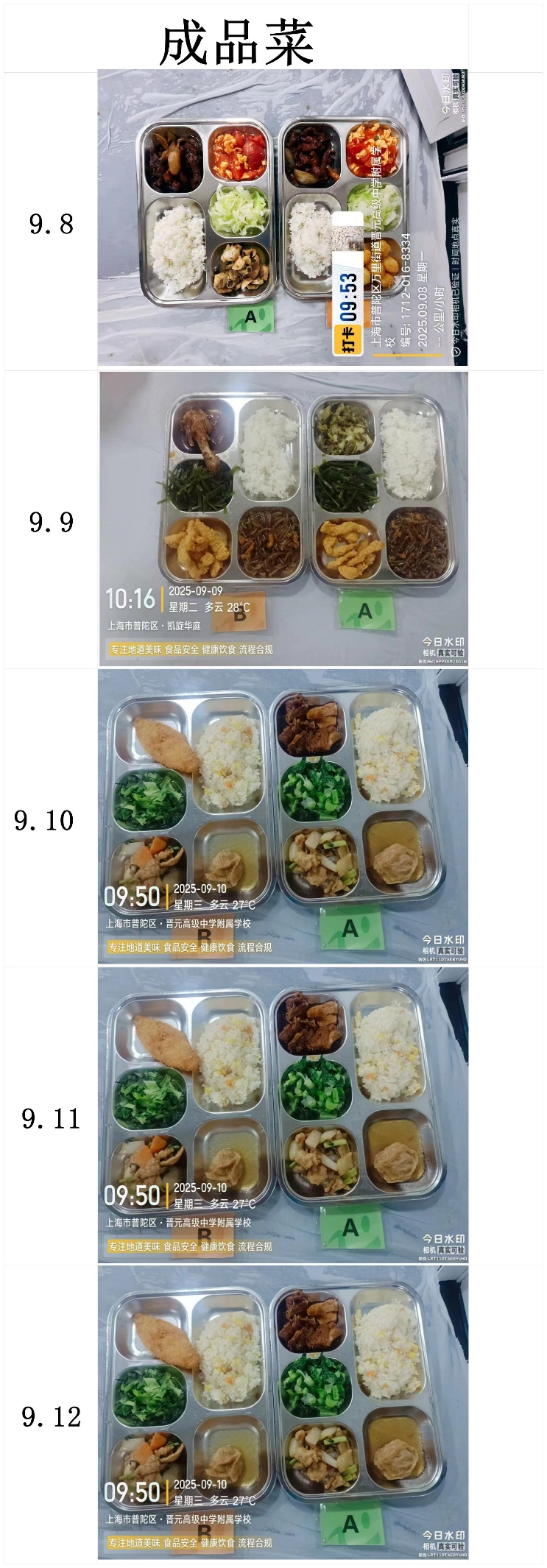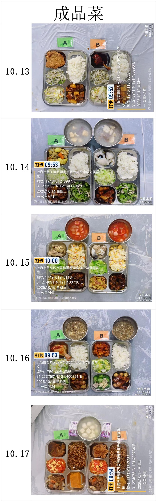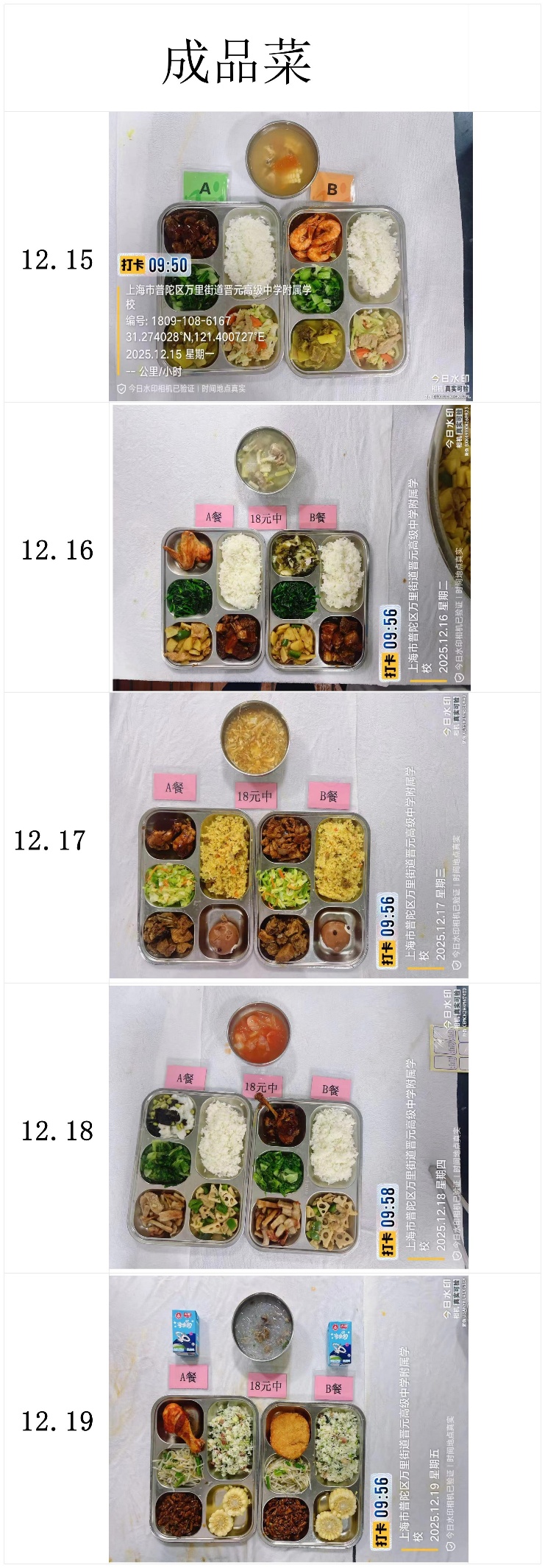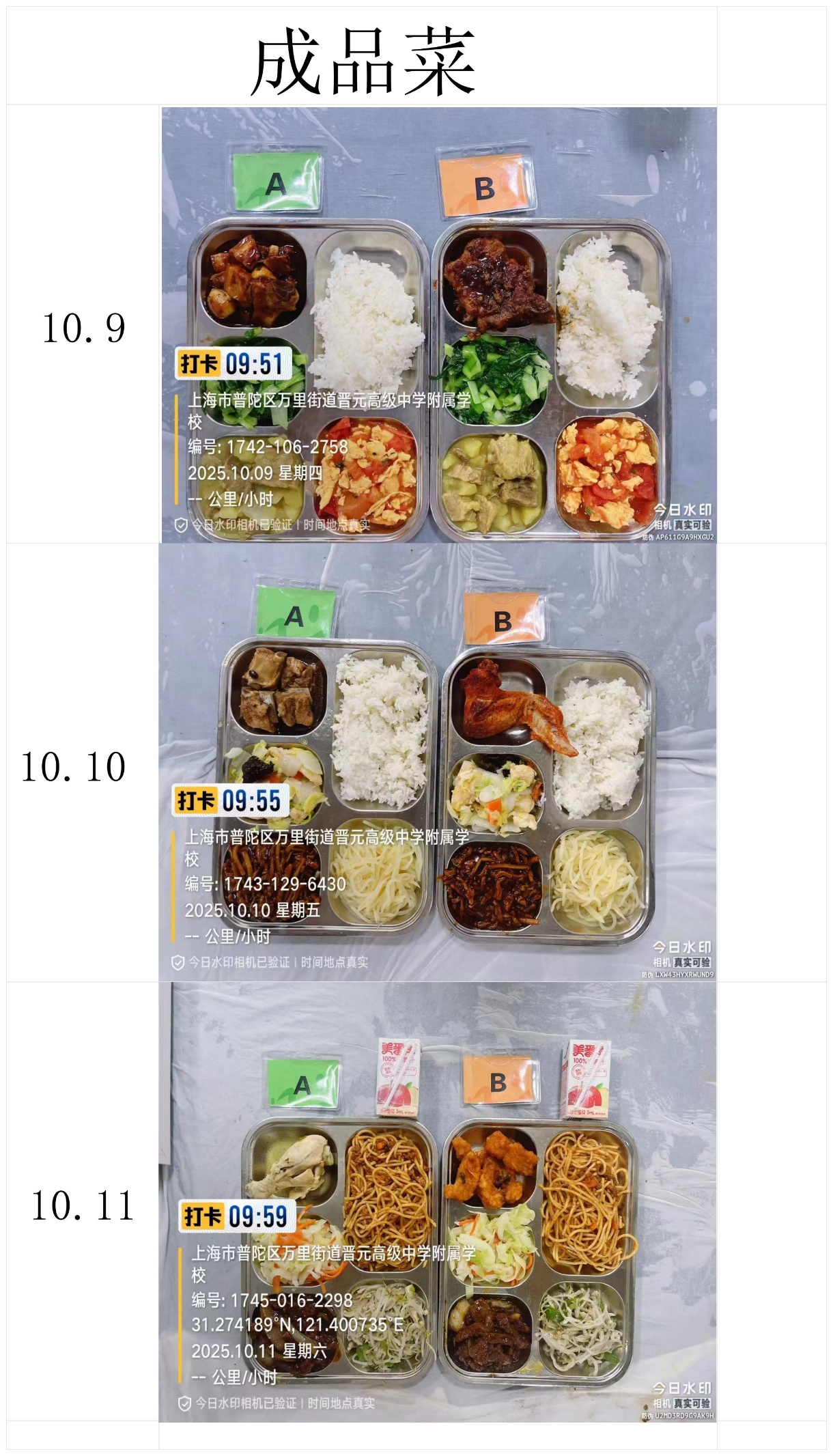 2025学年第一学期晋元附校(真金校区)学生午餐公示集锦