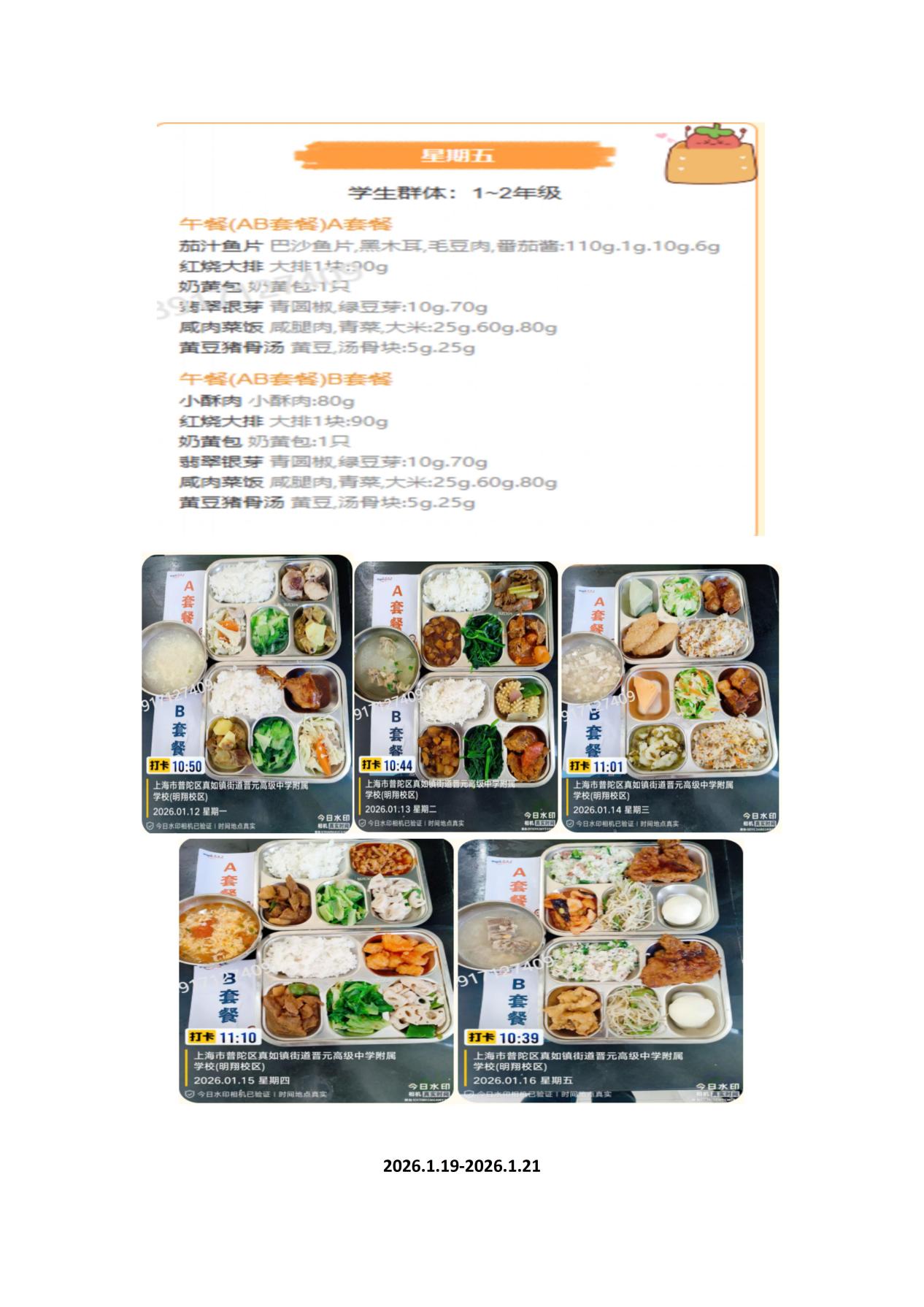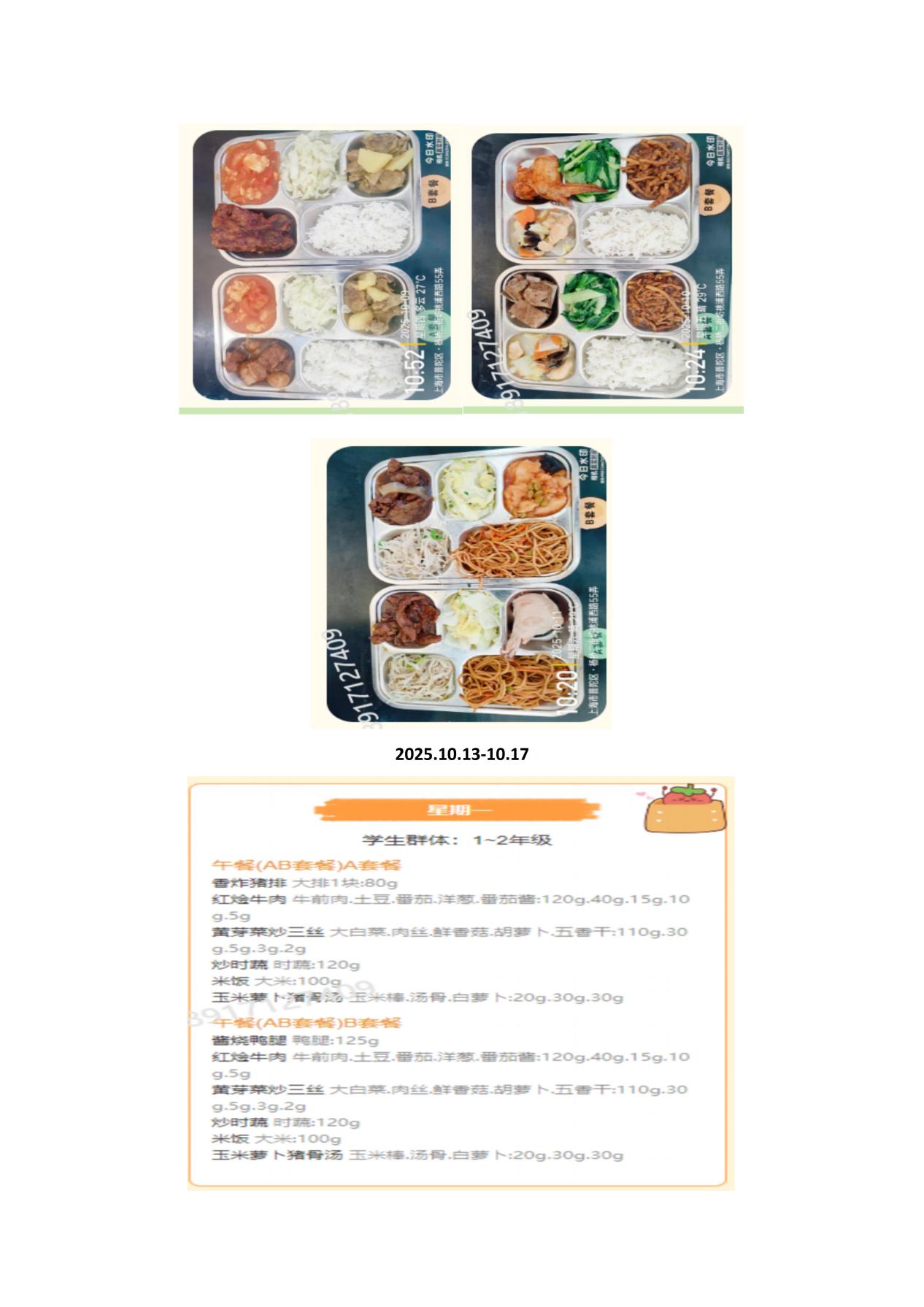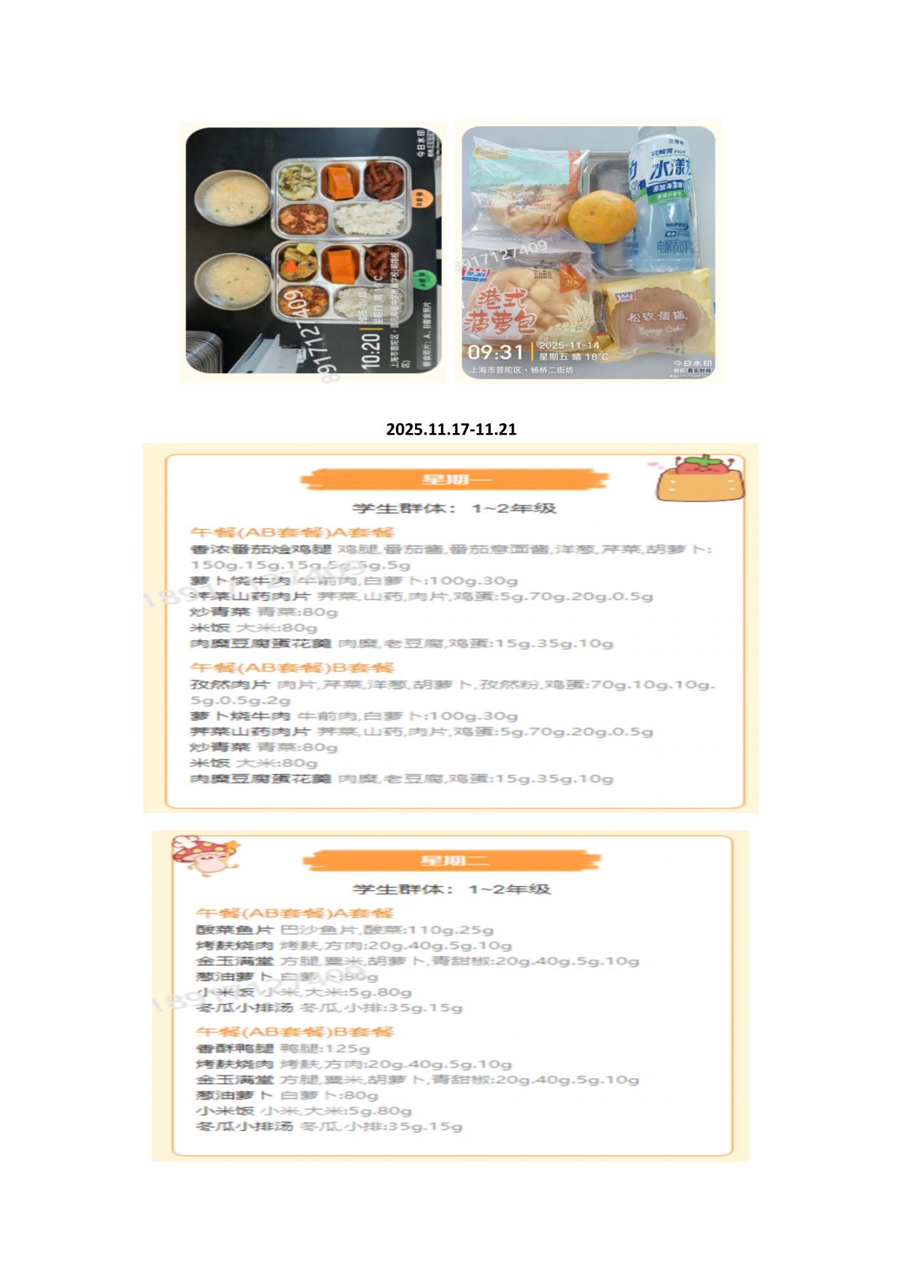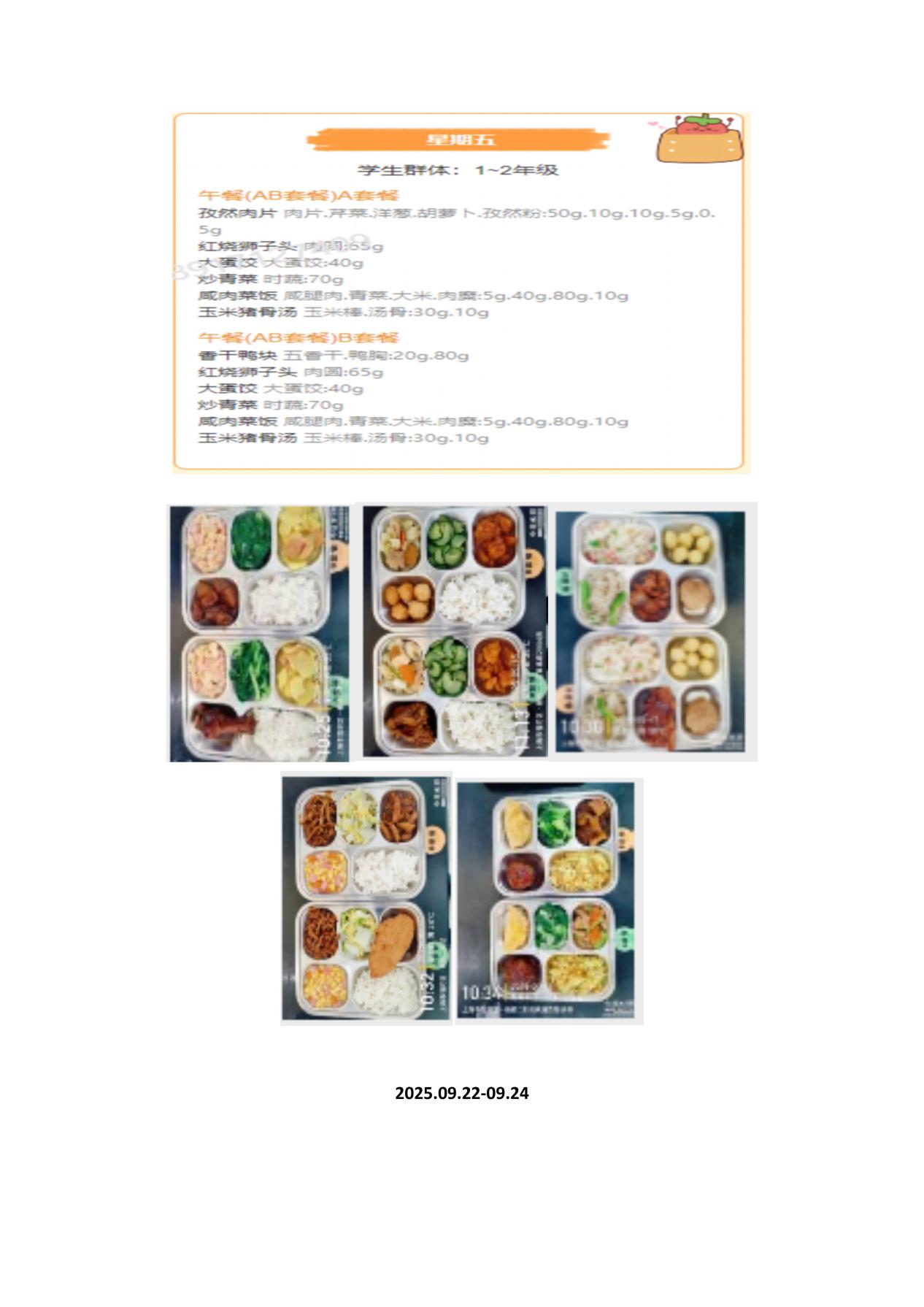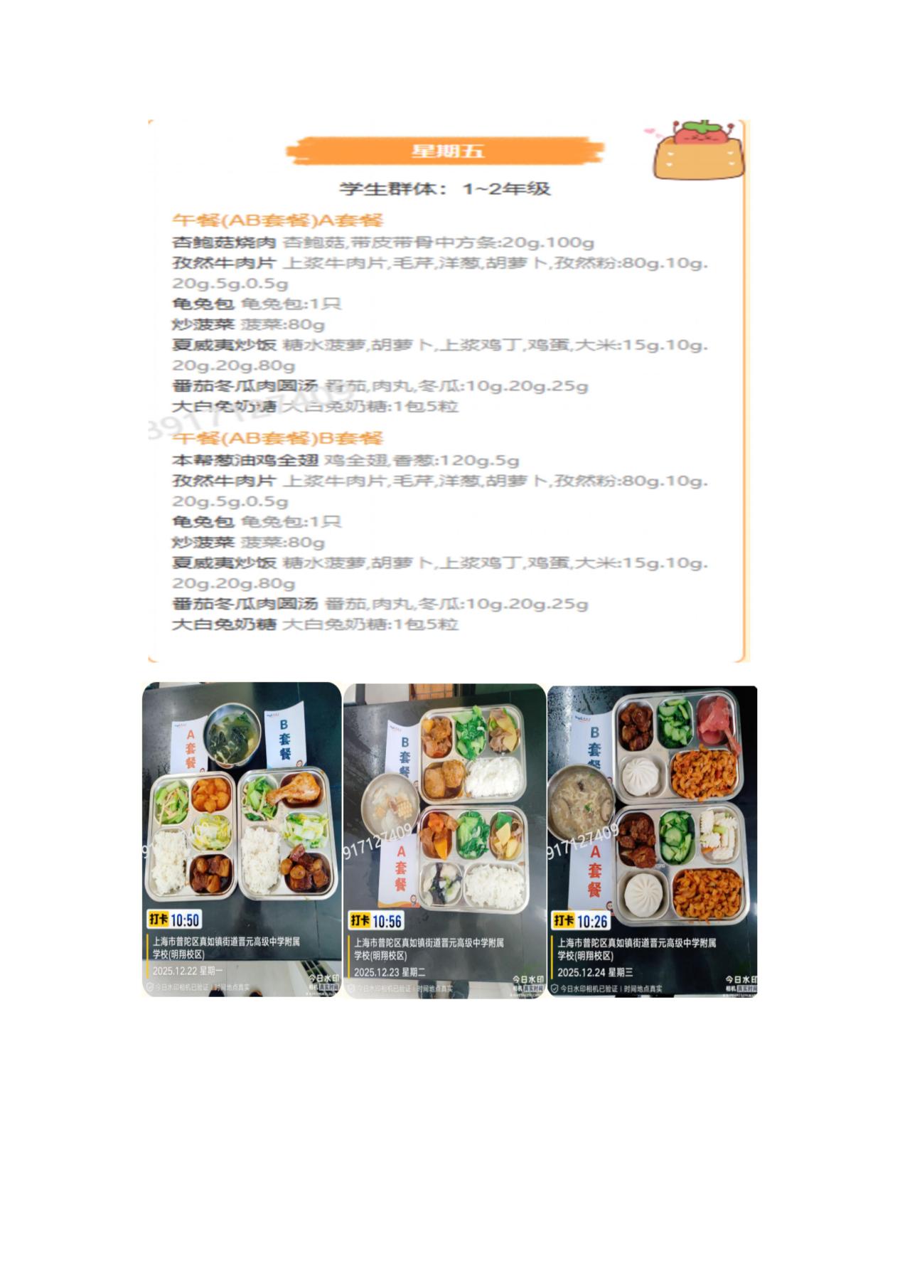 2025学年第一学期晋元附校(明翔校区)学生午餐公示集锦