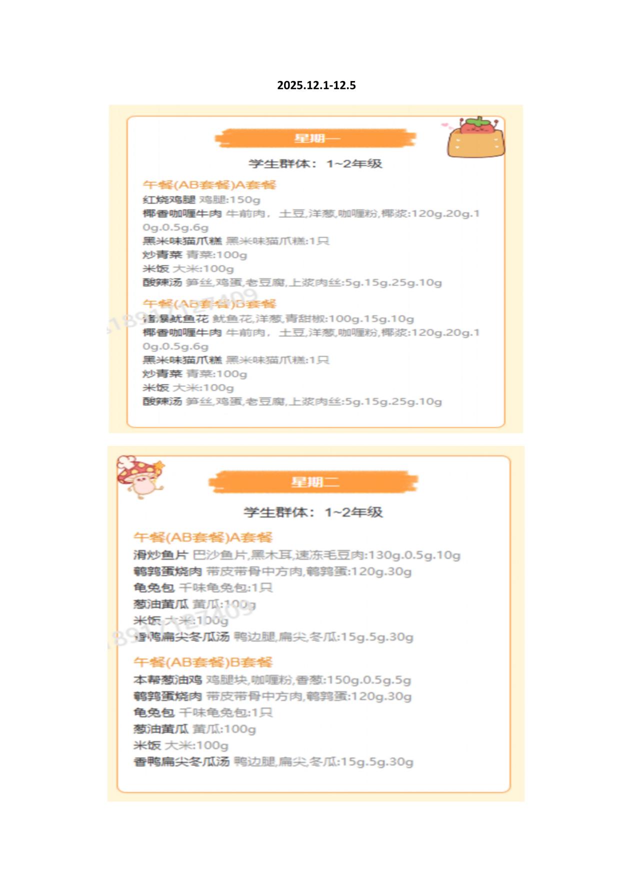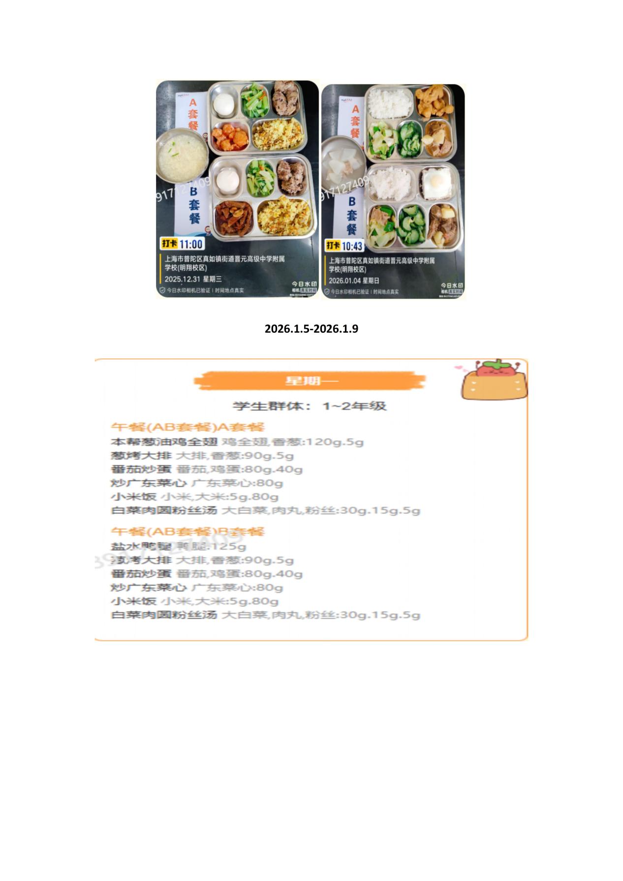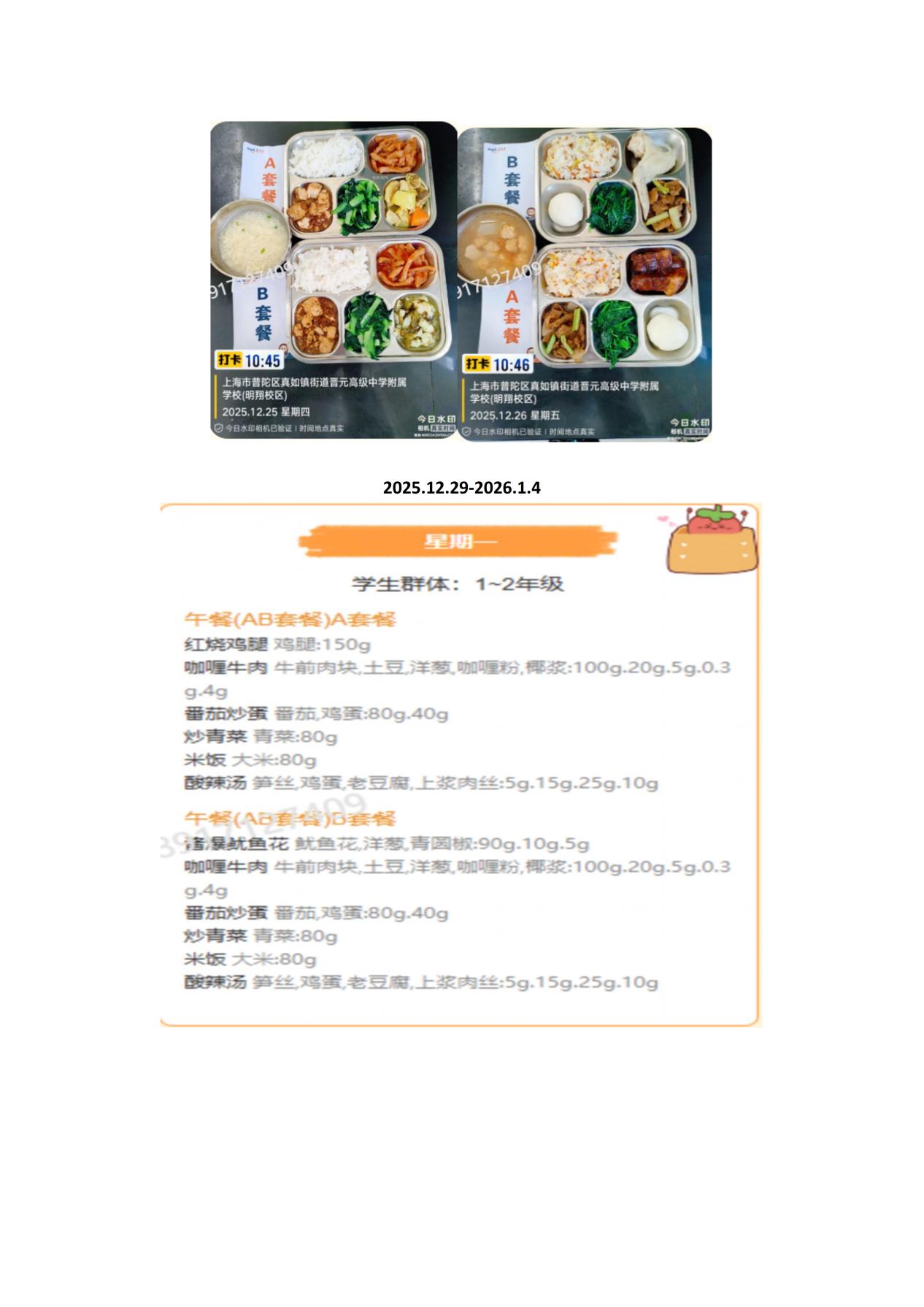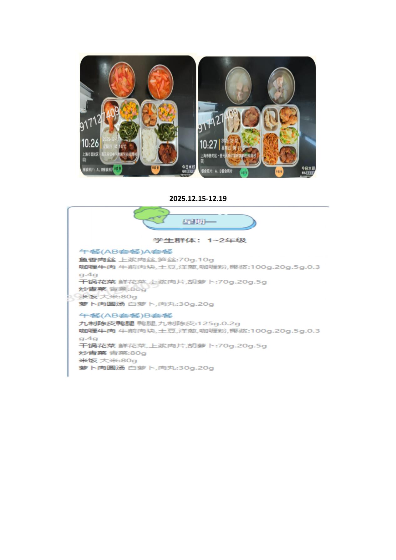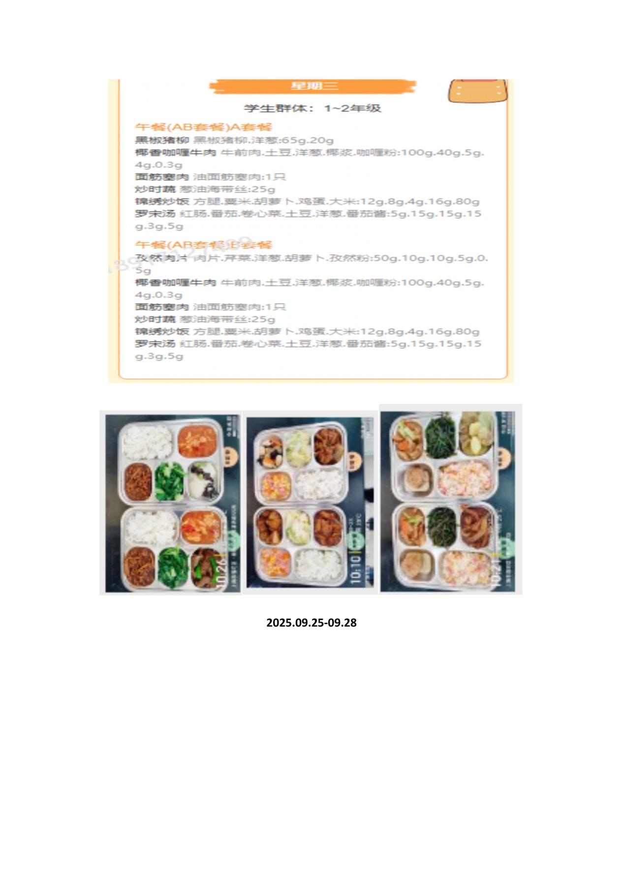 2025学年第一学期晋元附校(明翔校区)学生午餐公示集锦