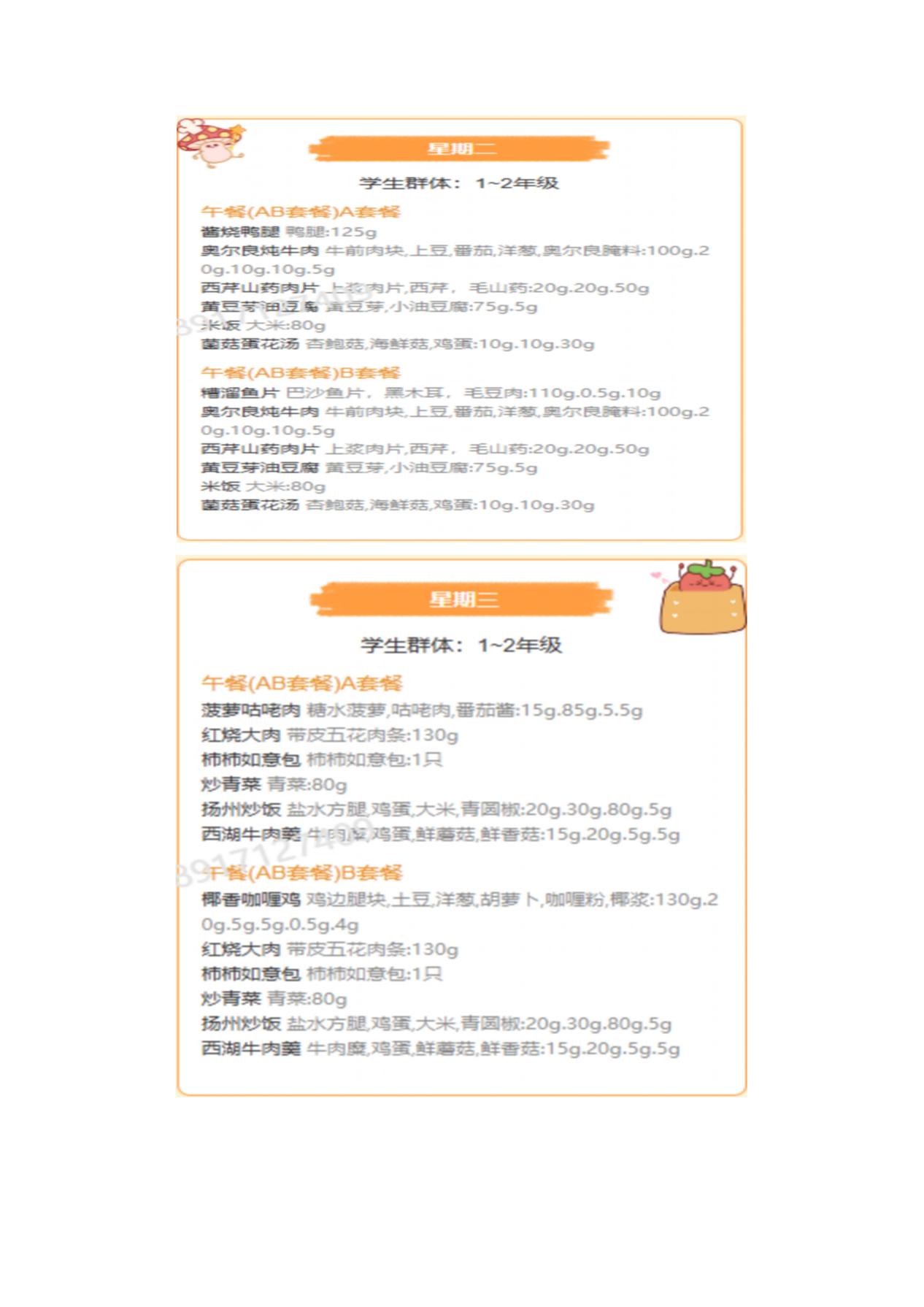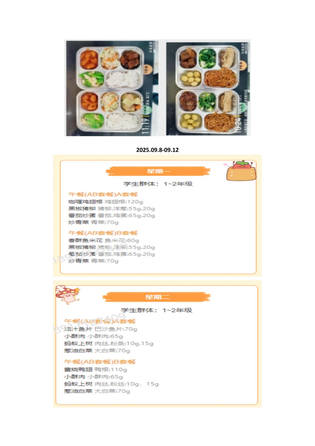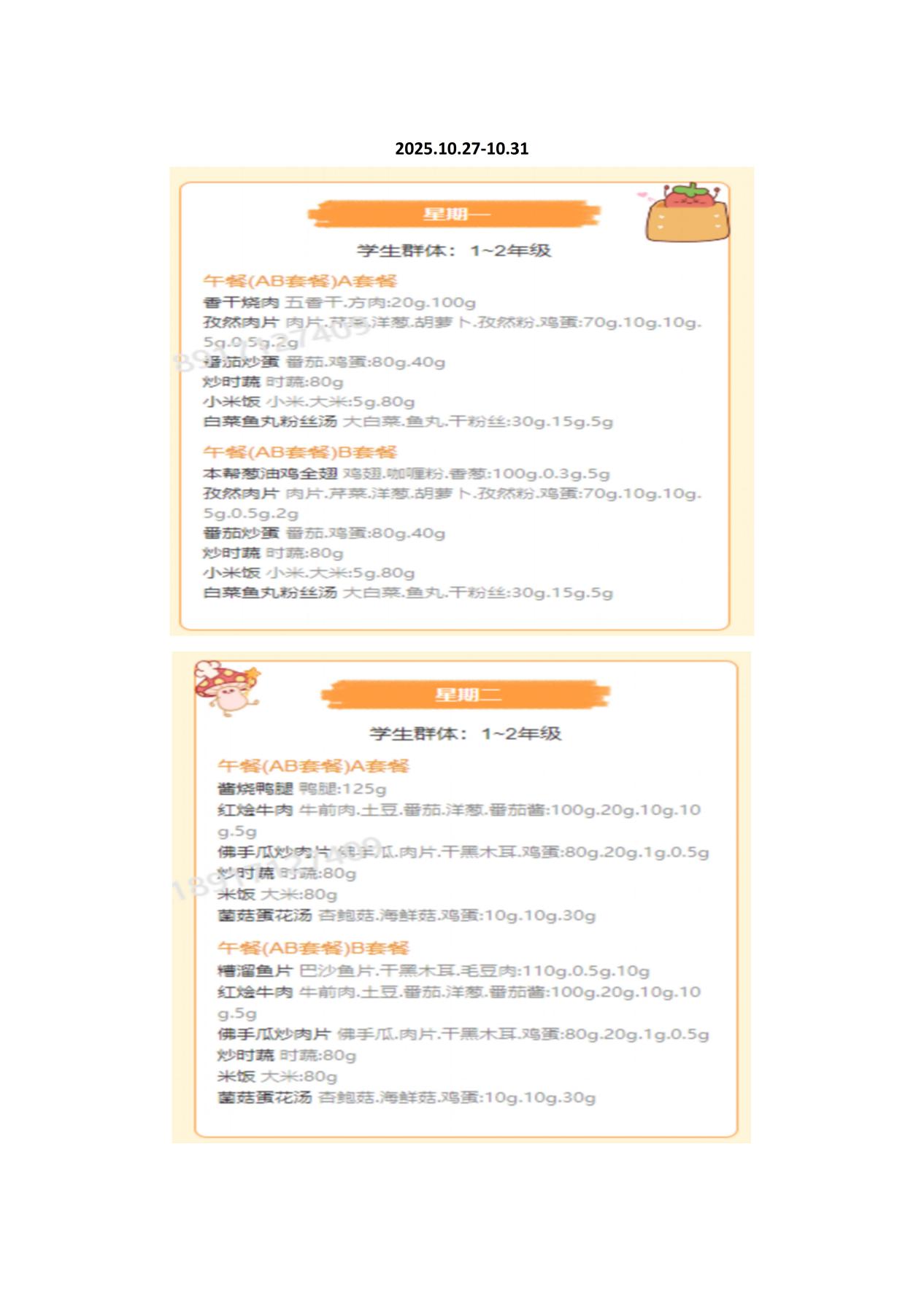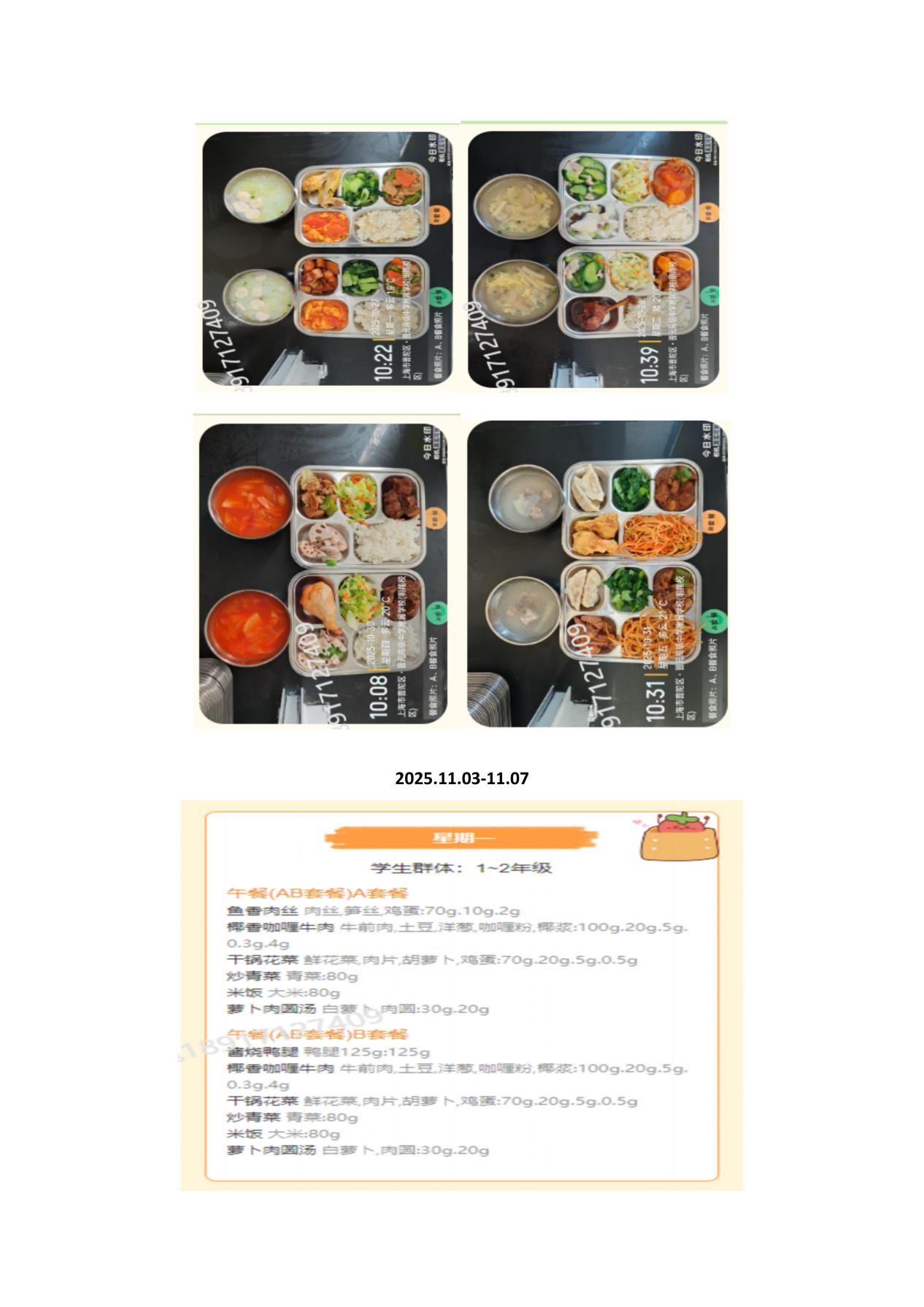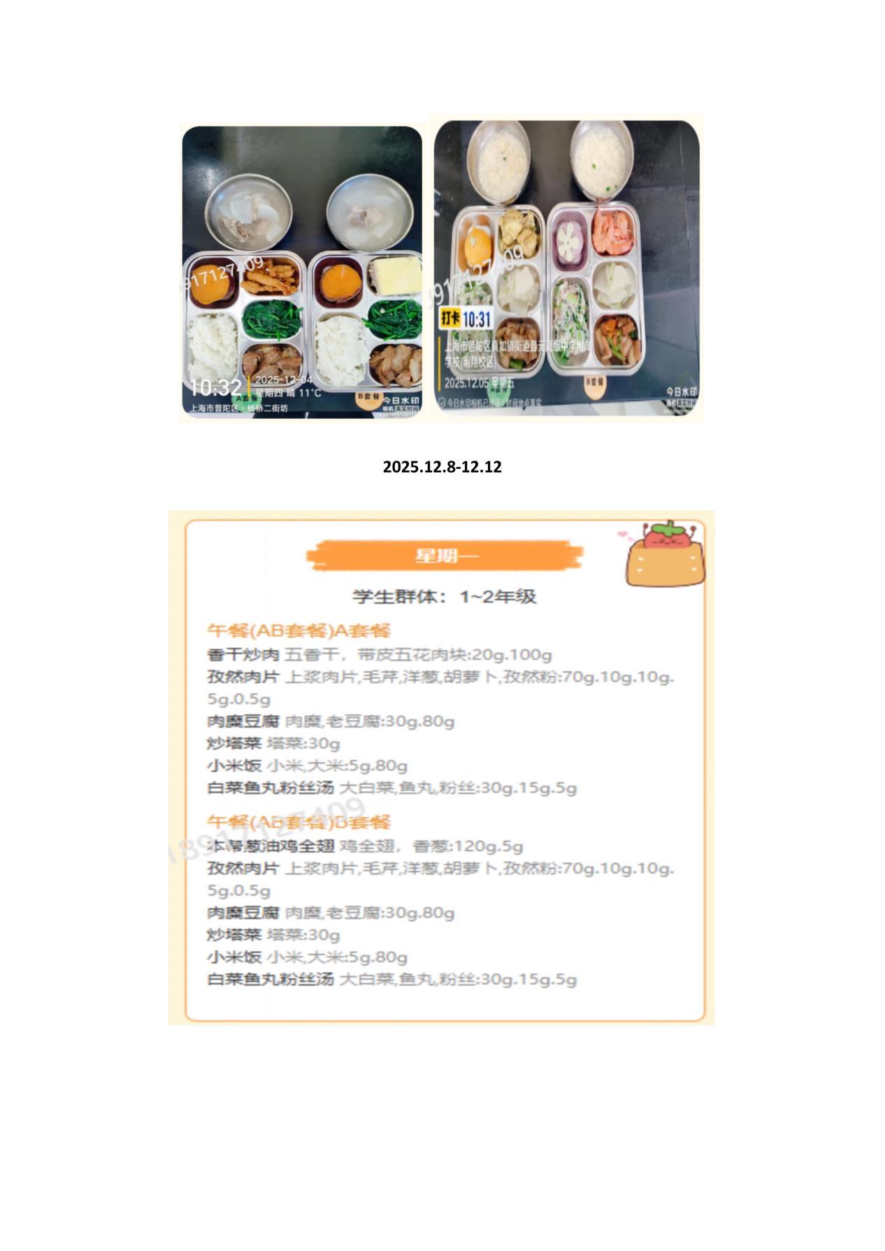 2025学年第一学期晋元附校(明翔校区)学生午餐公示集锦