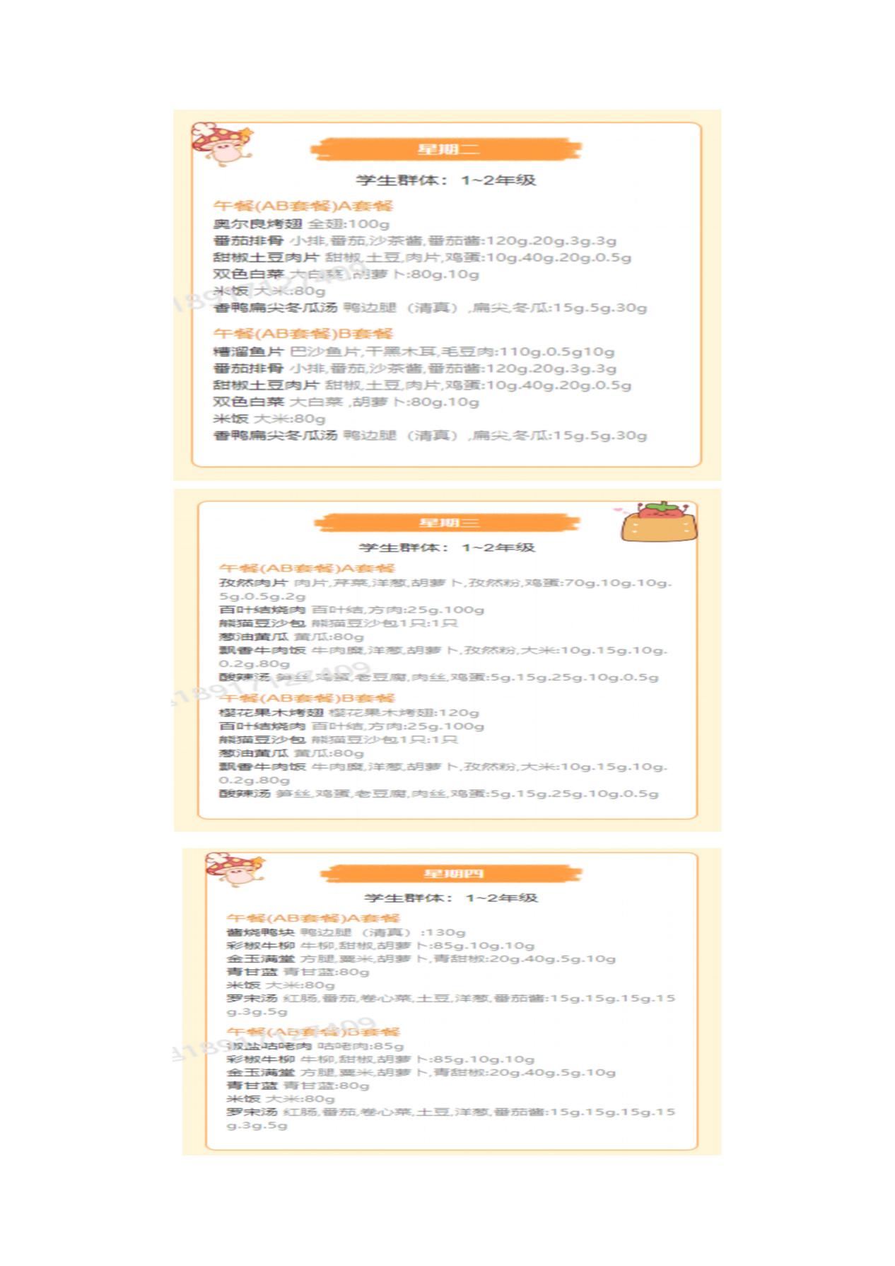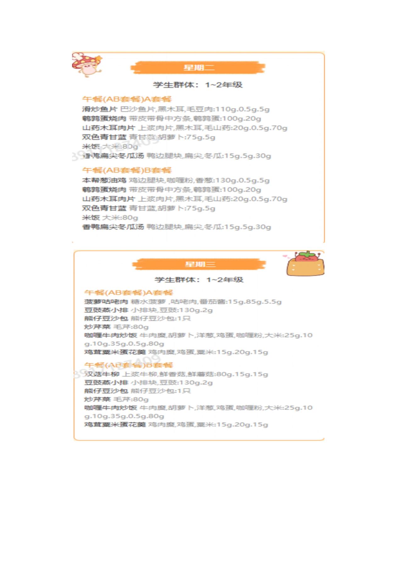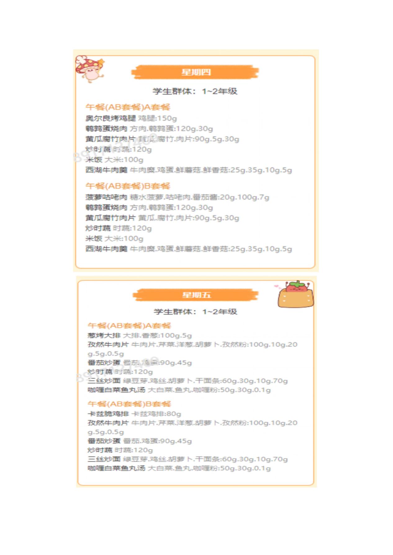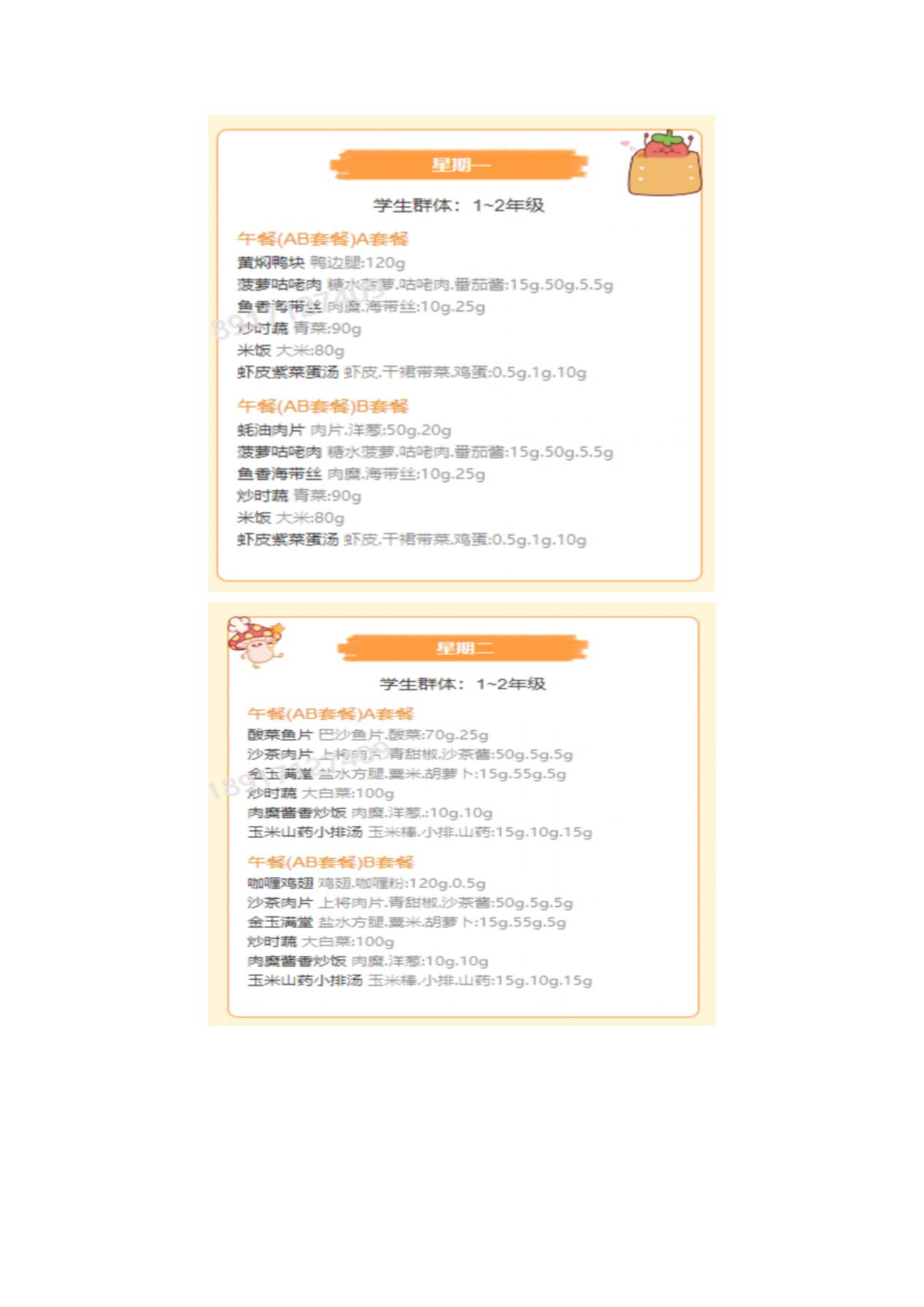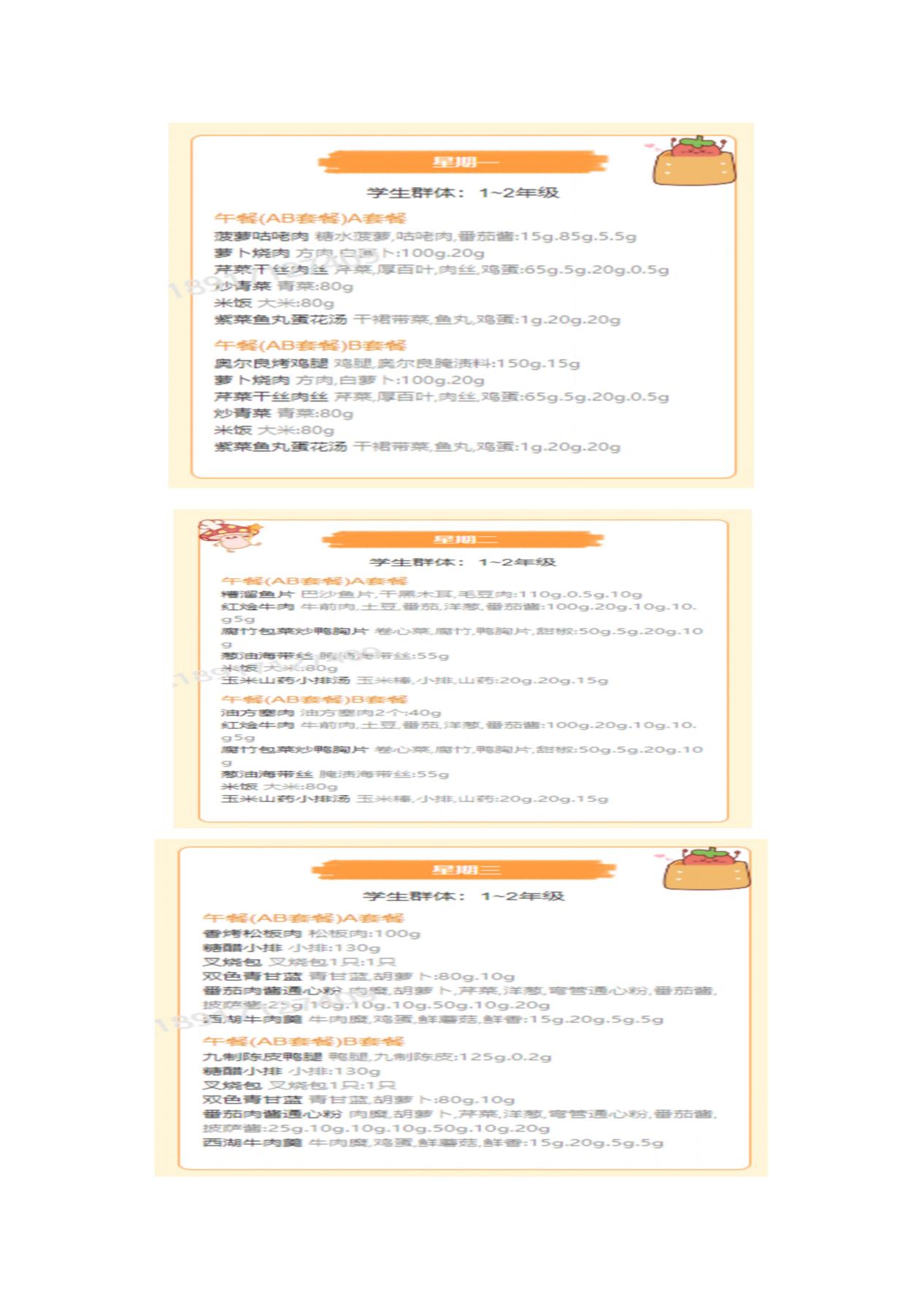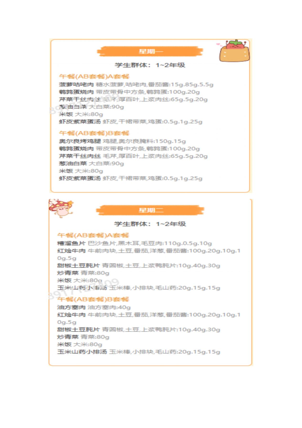 2025学年第一学期晋元附校(明翔校区)学生午餐公示集锦