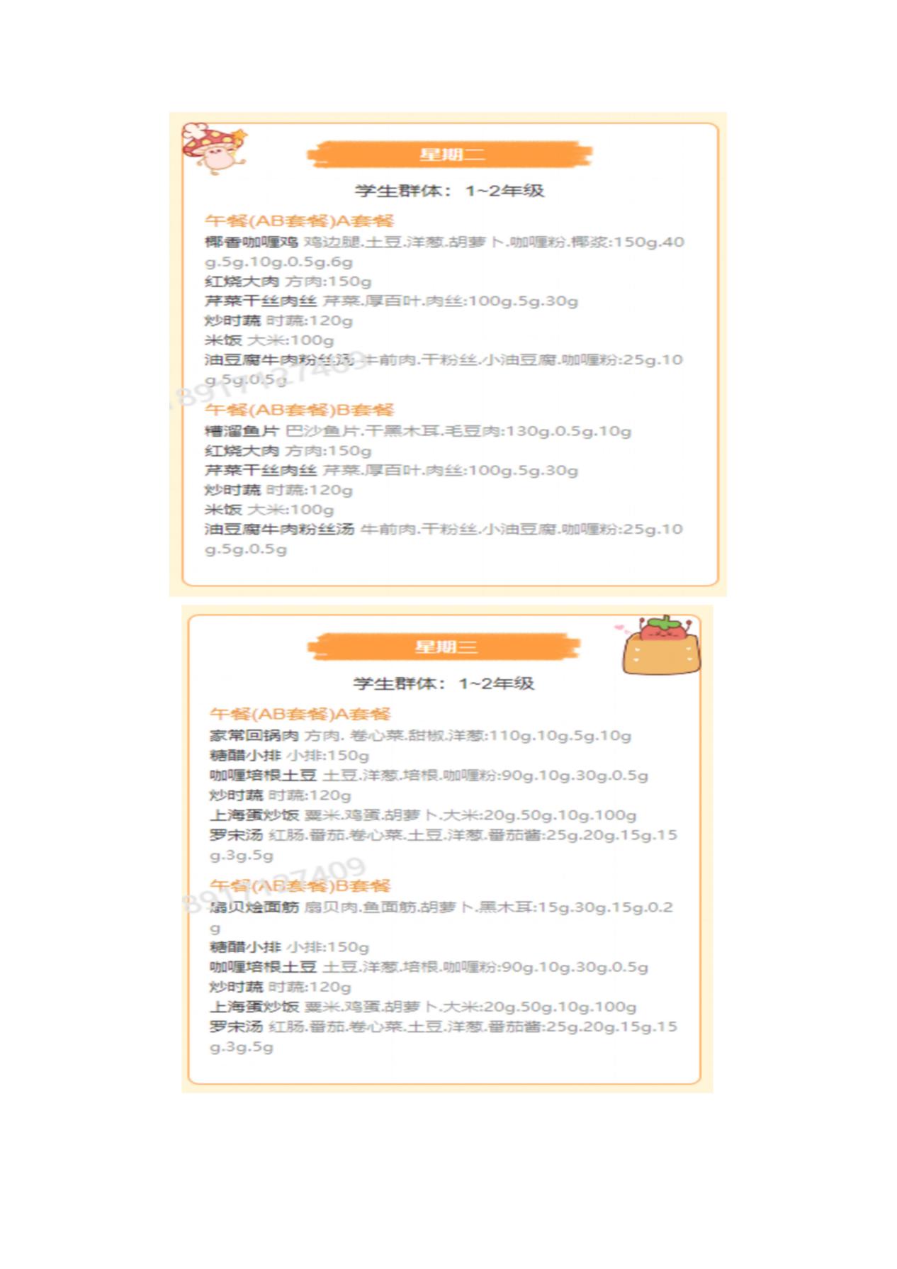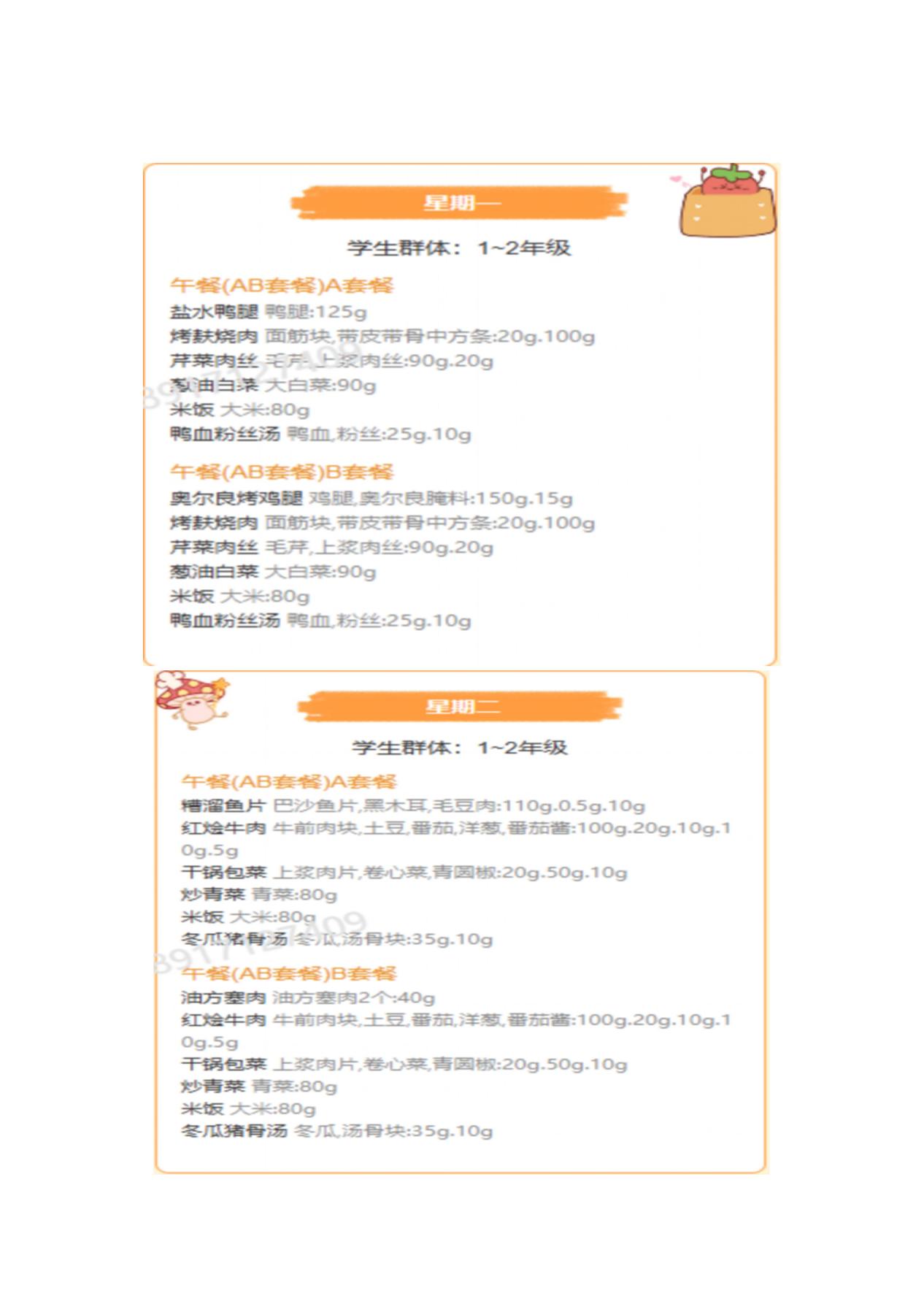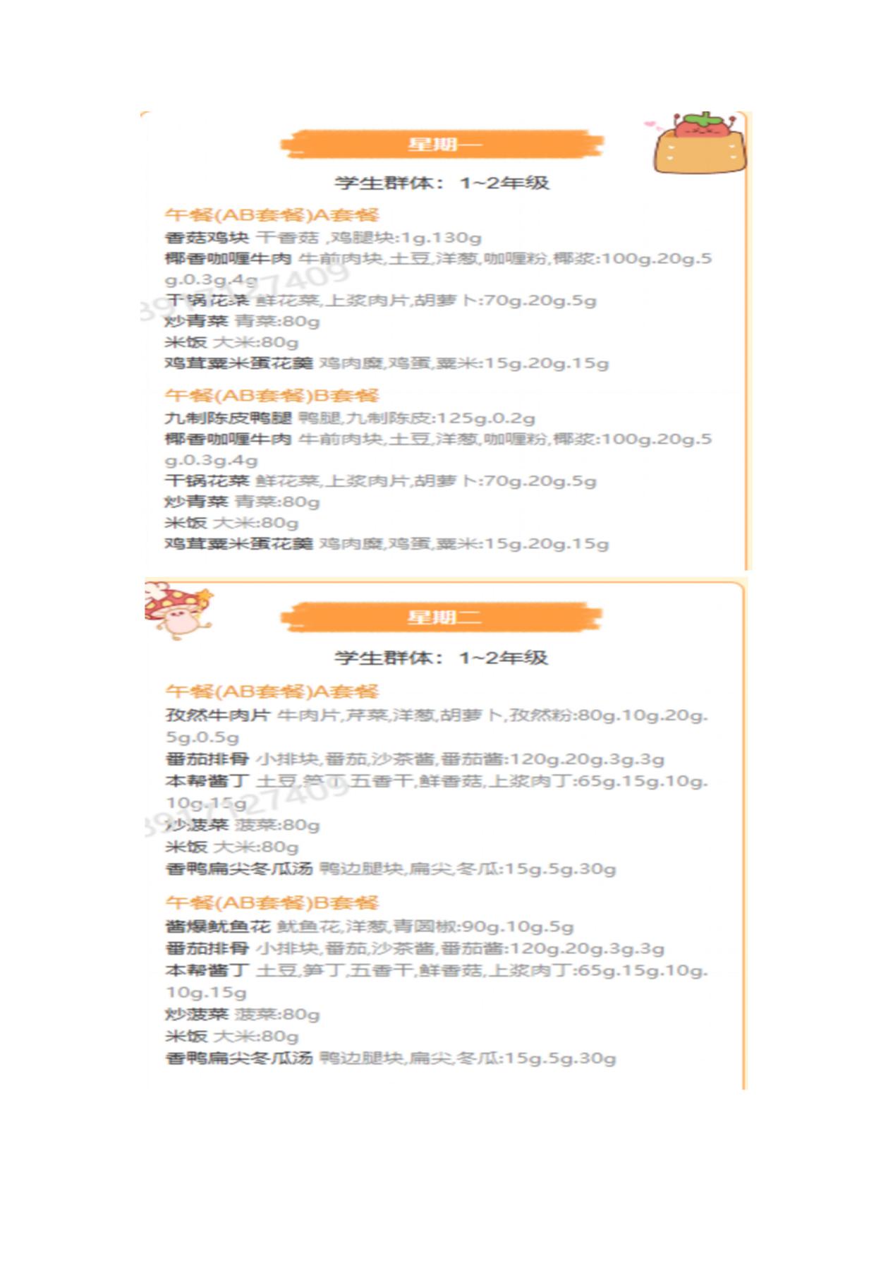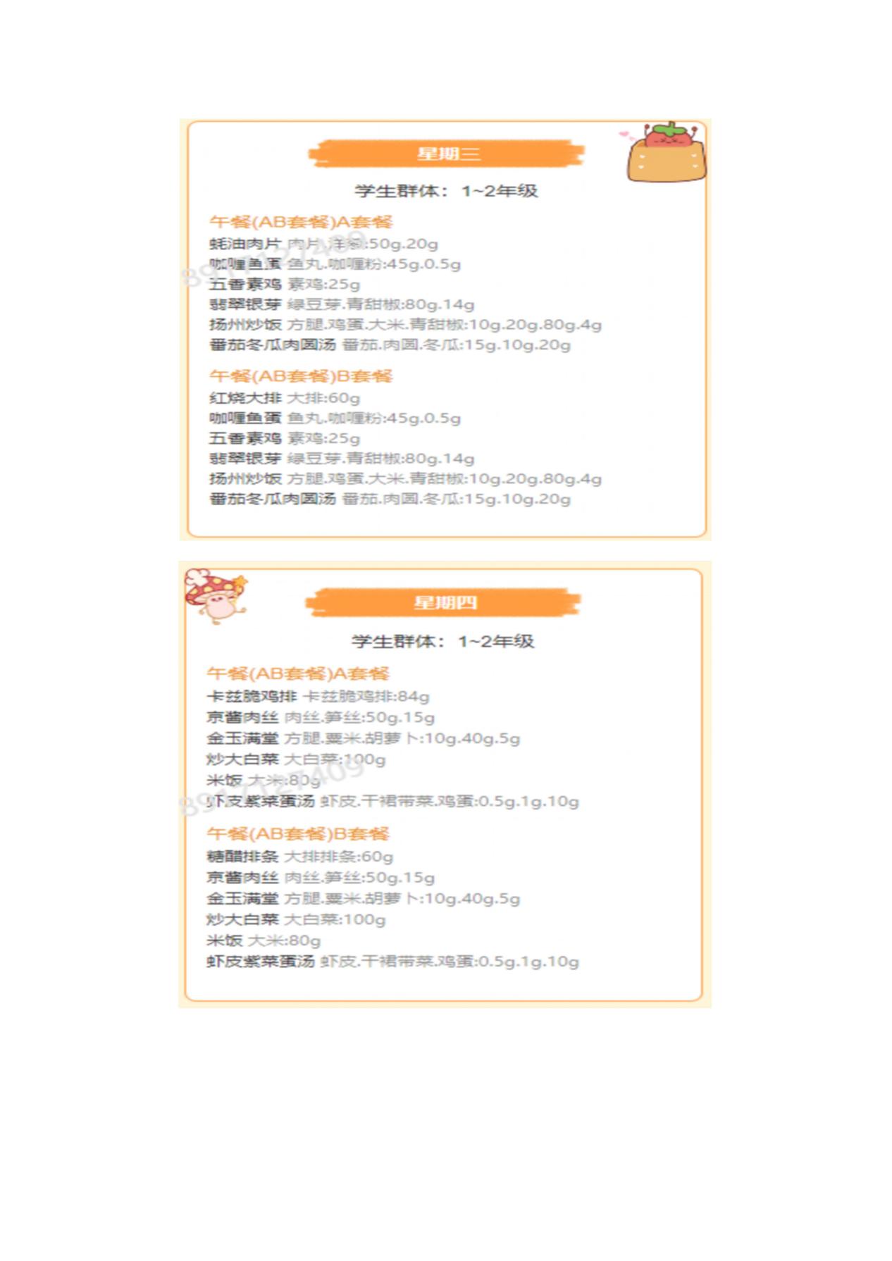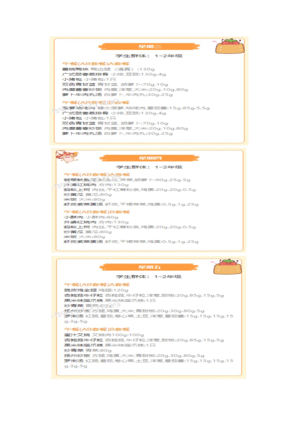 2025学年第一学期晋元附校(明翔校区)学生午餐公示集锦