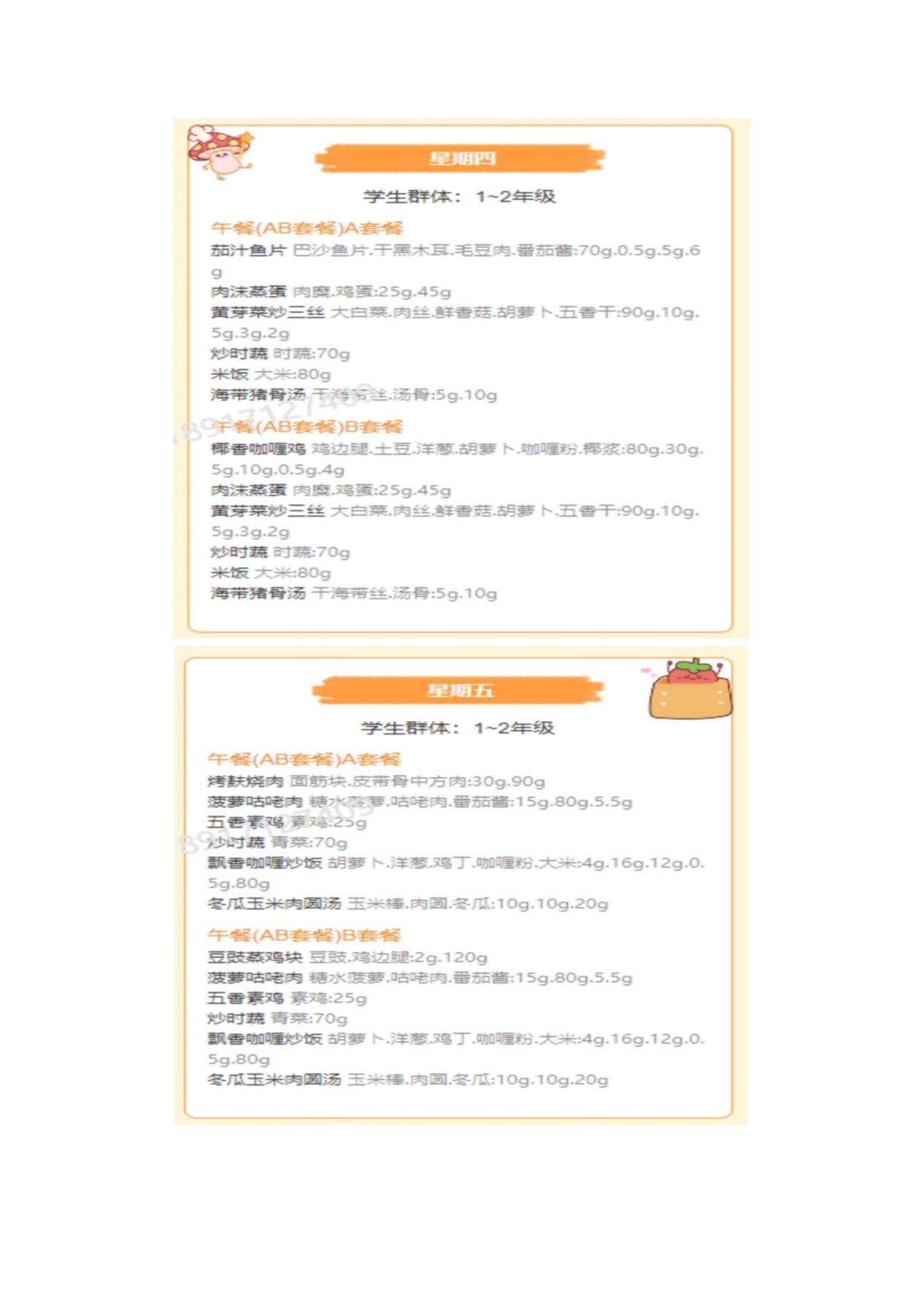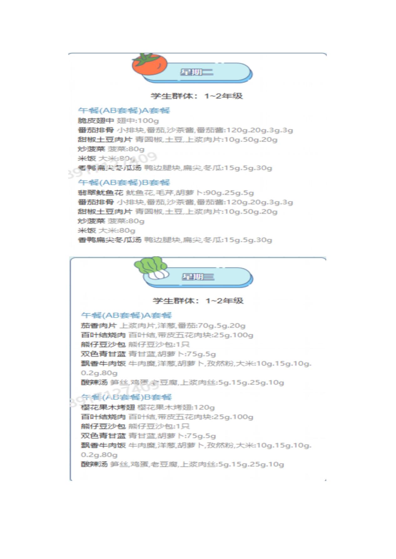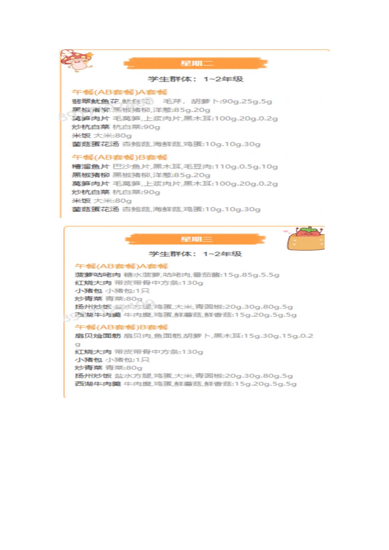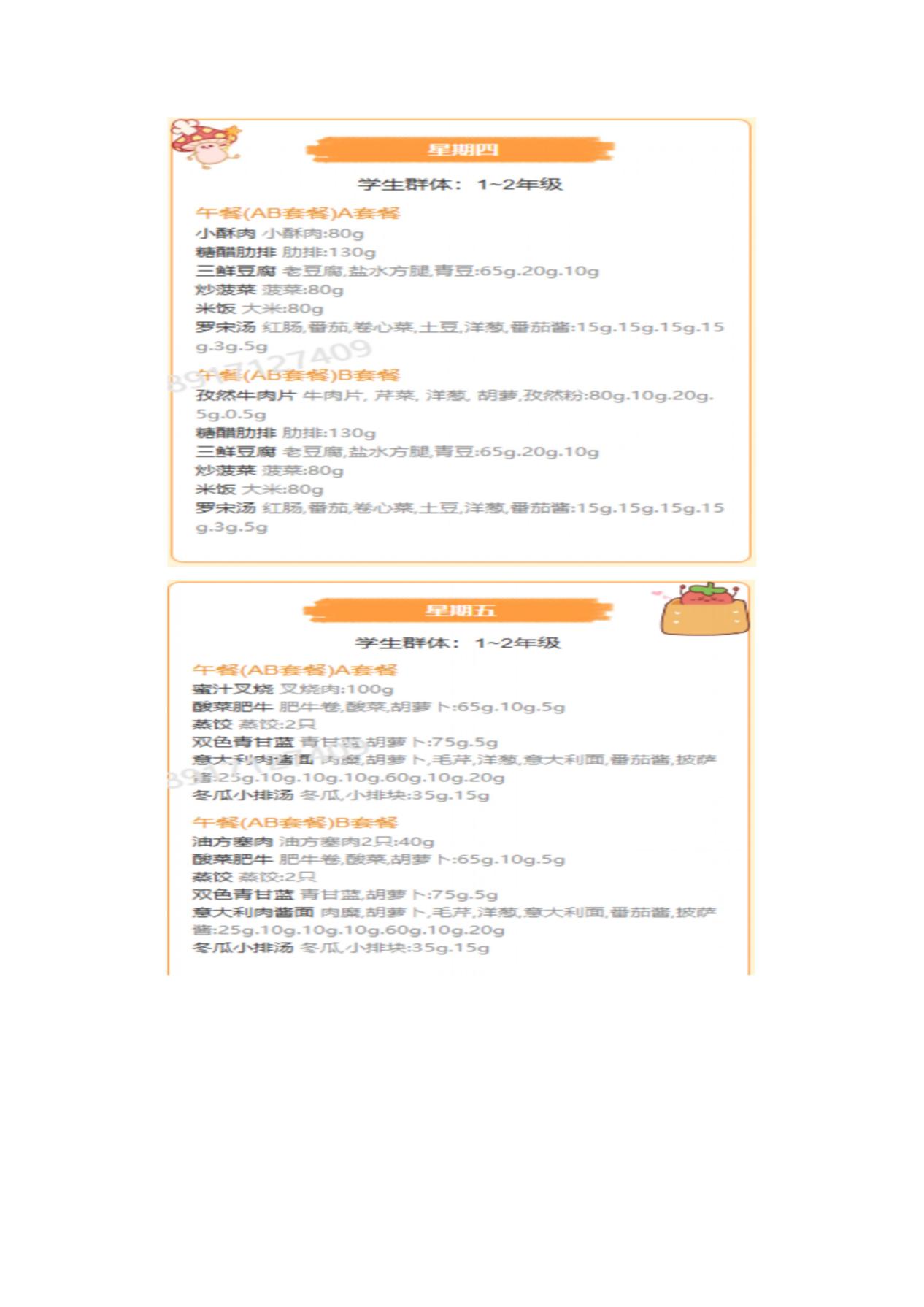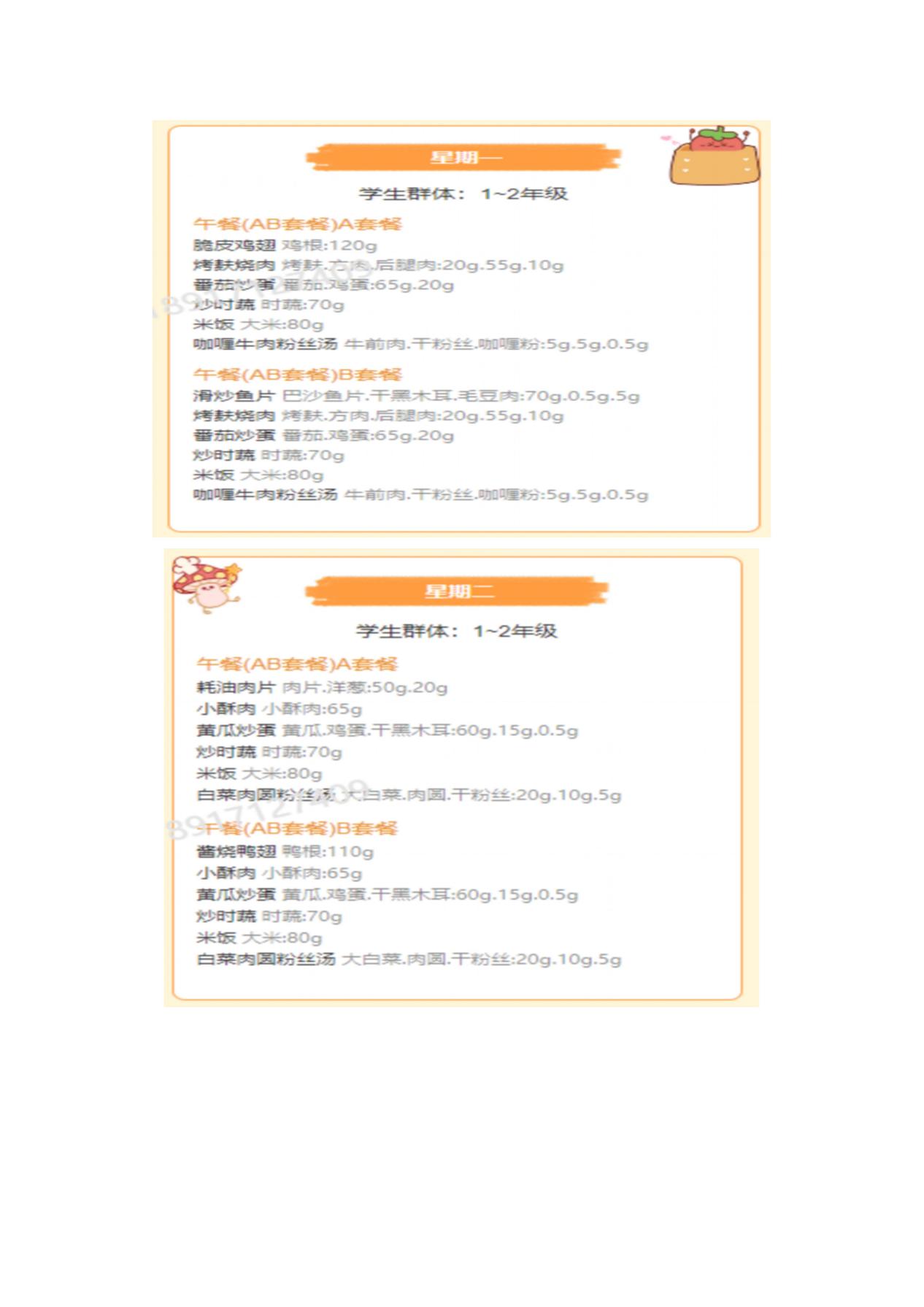 2025学年第一学期晋元附校(明翔校区)学生午餐公示集锦