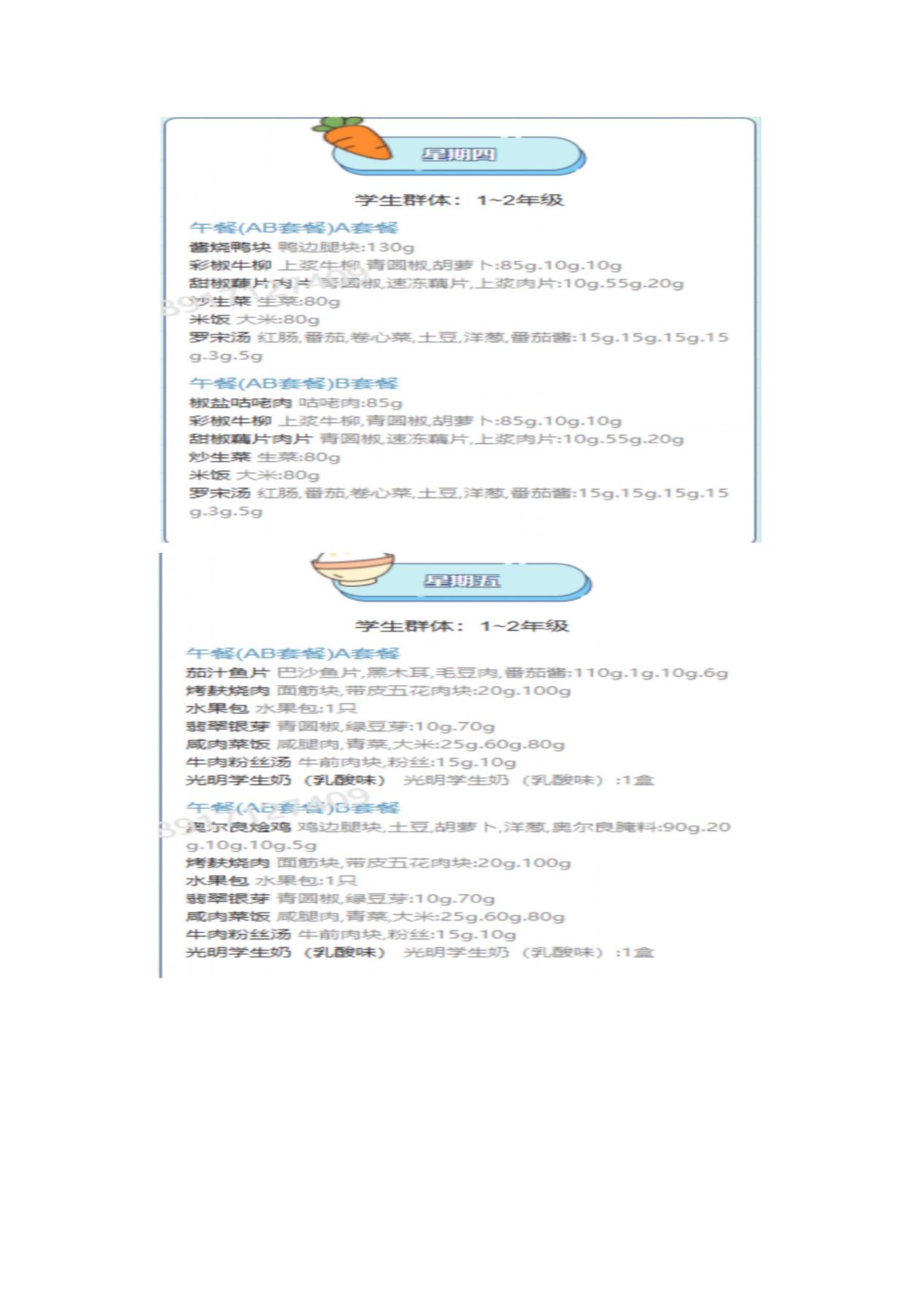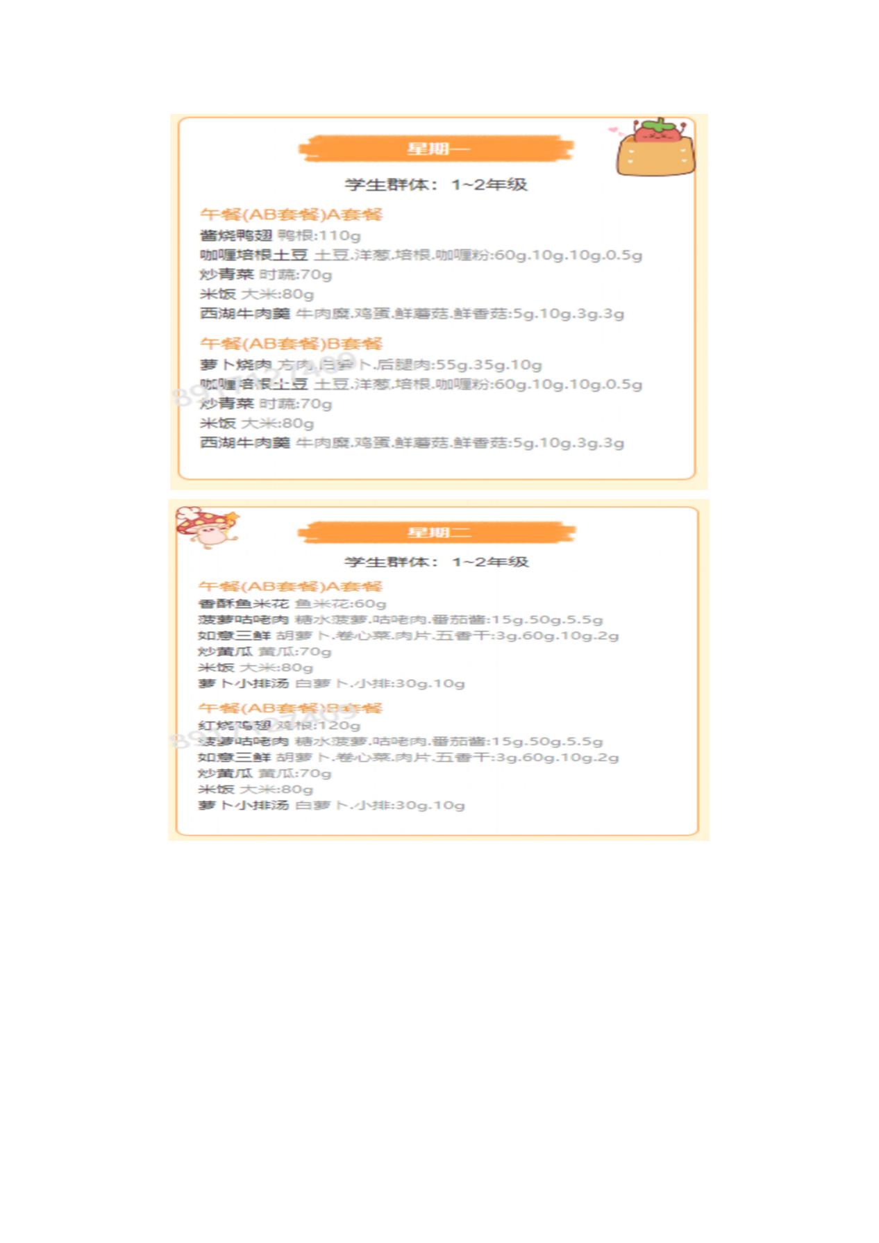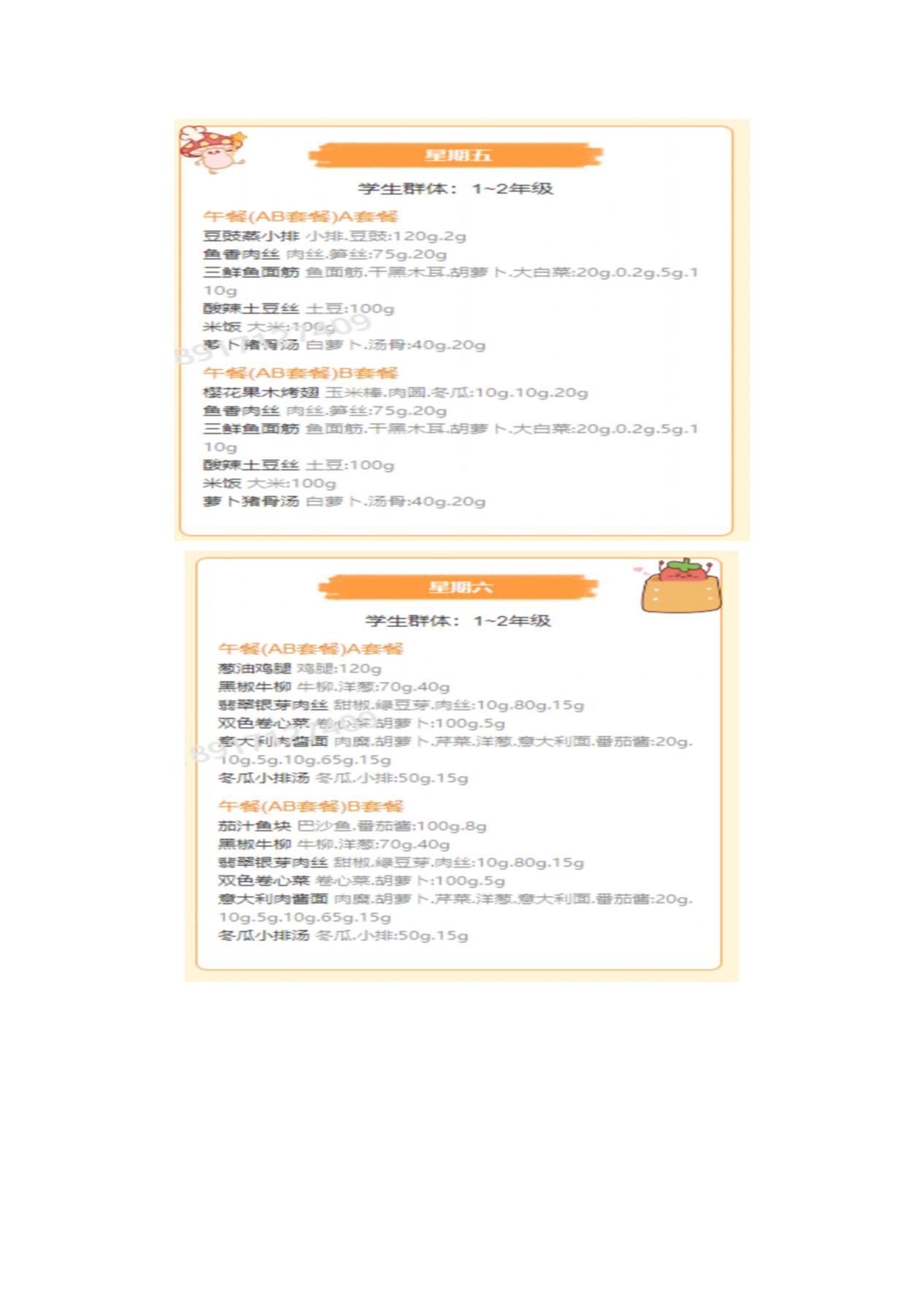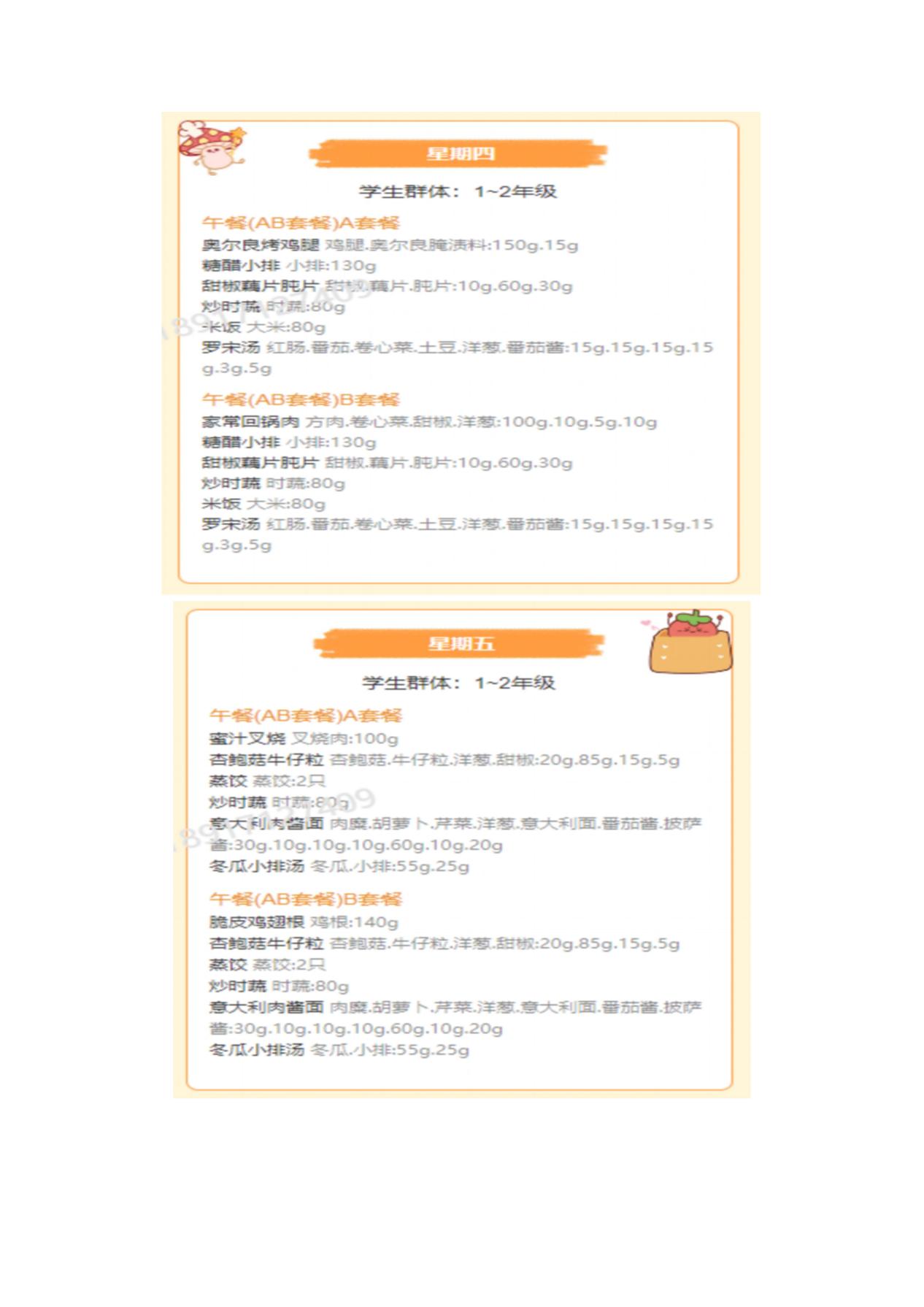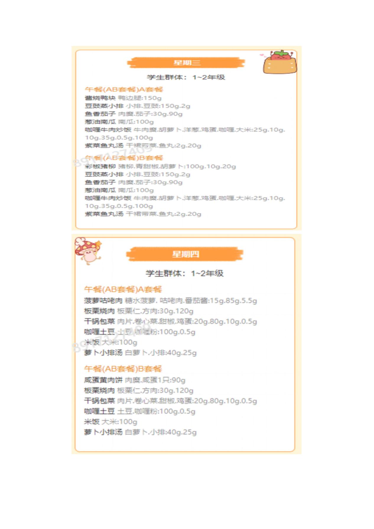 2025学年第一学期晋元附校(明翔校区)学生午餐公示集锦