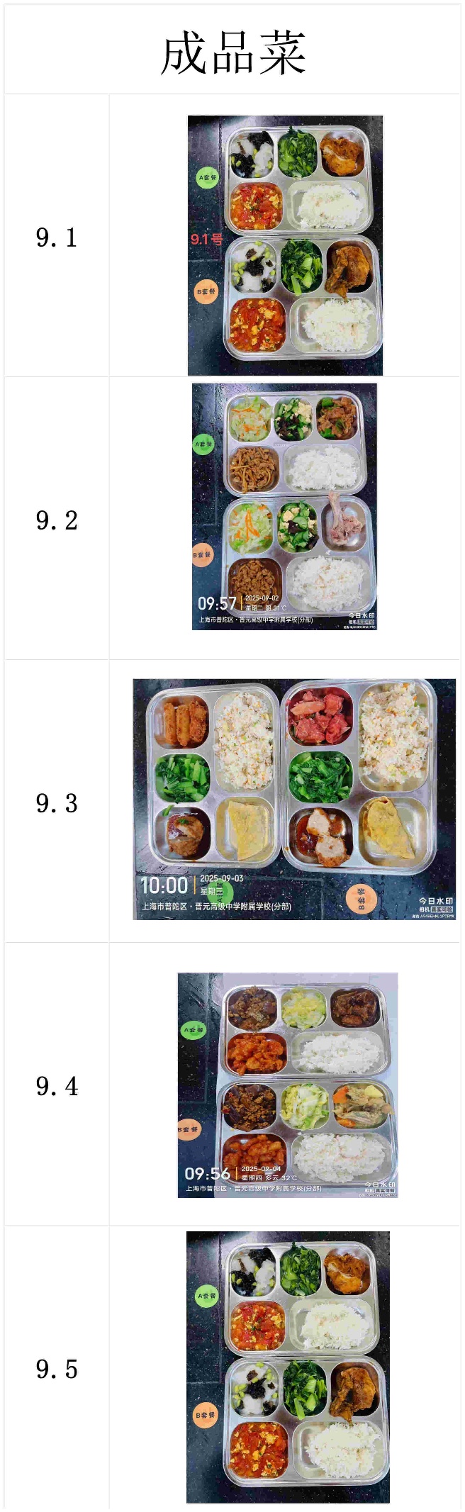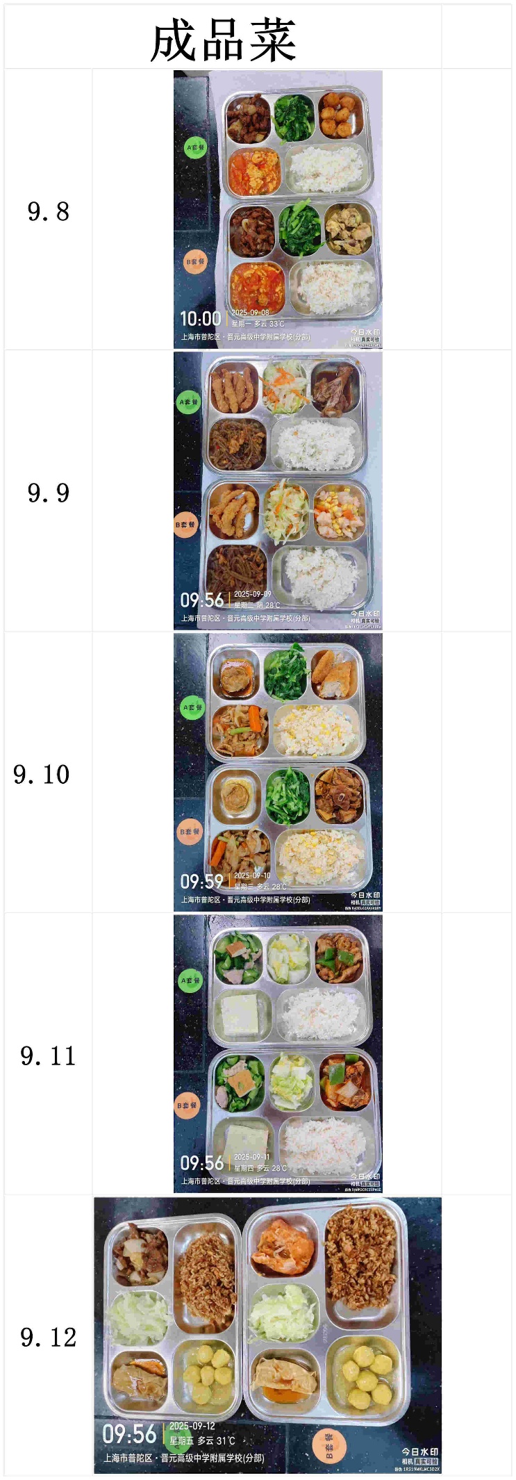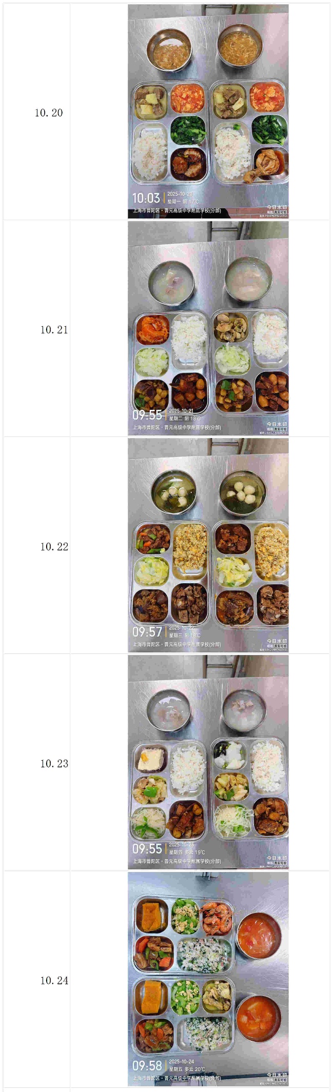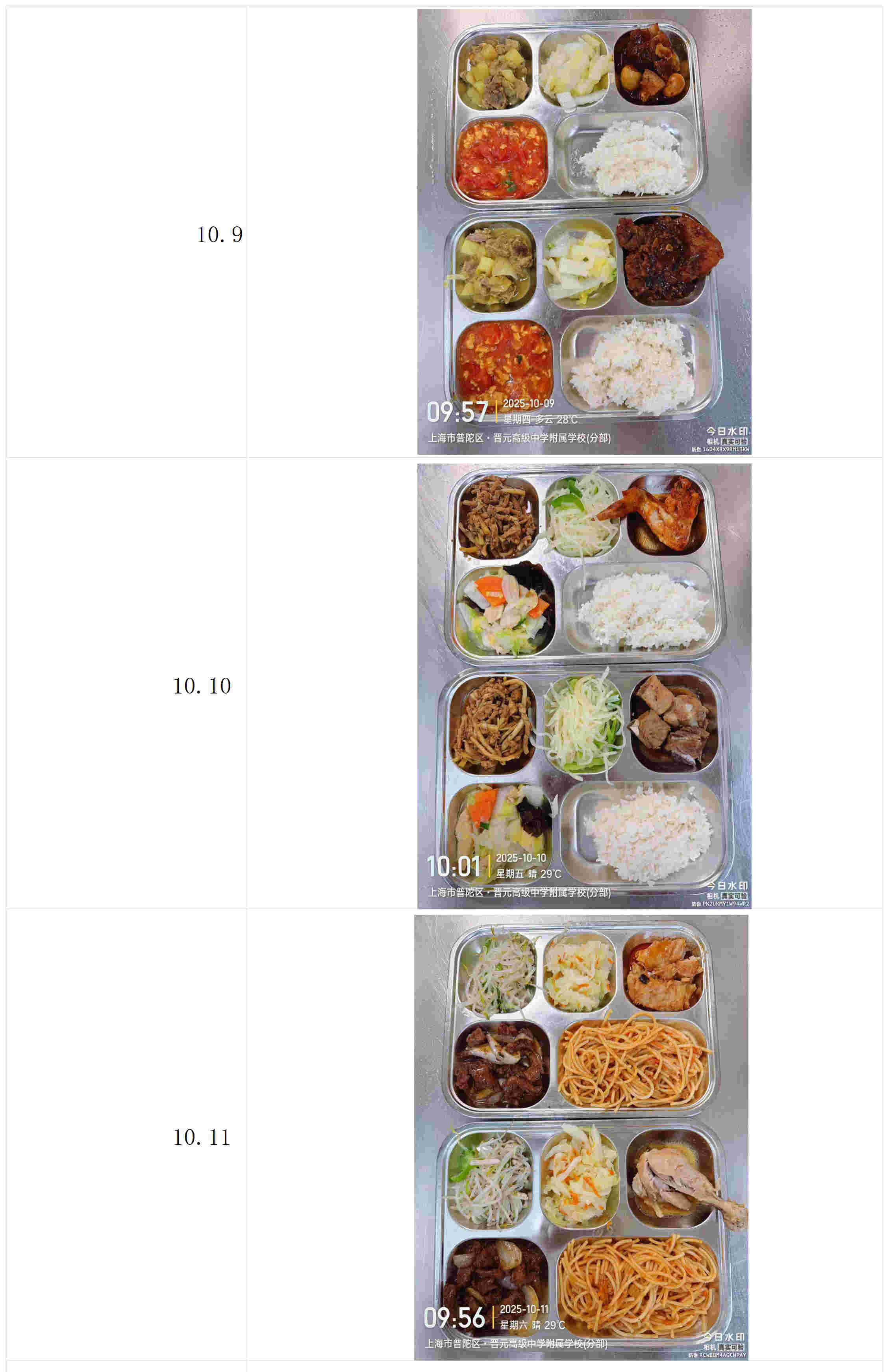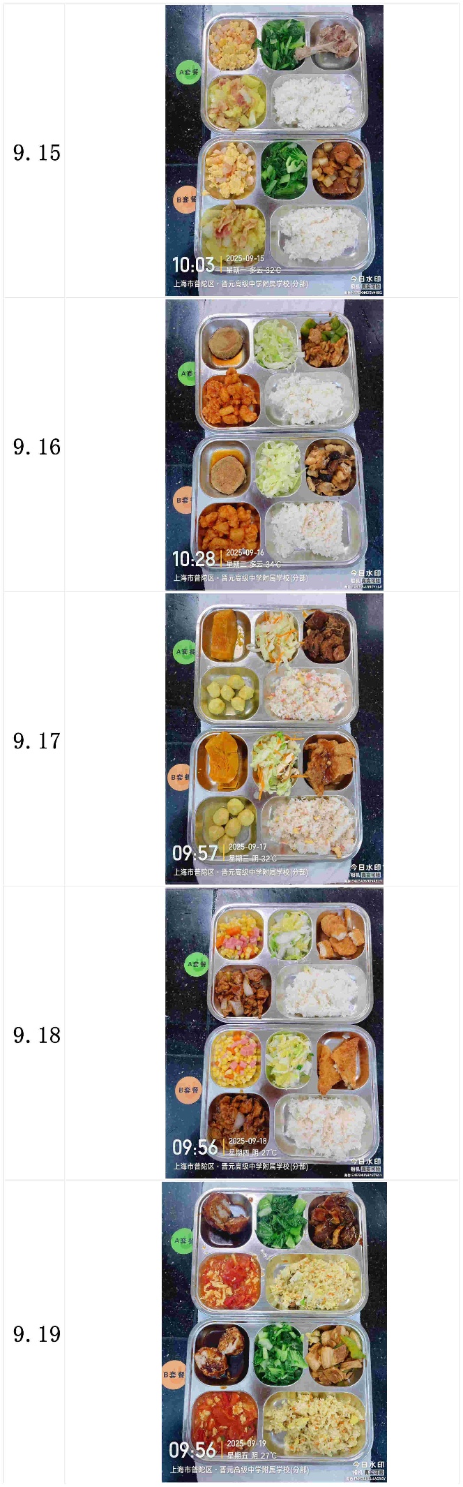 2025学年第一学期晋元附校(武威校区)学生午餐公示集锦