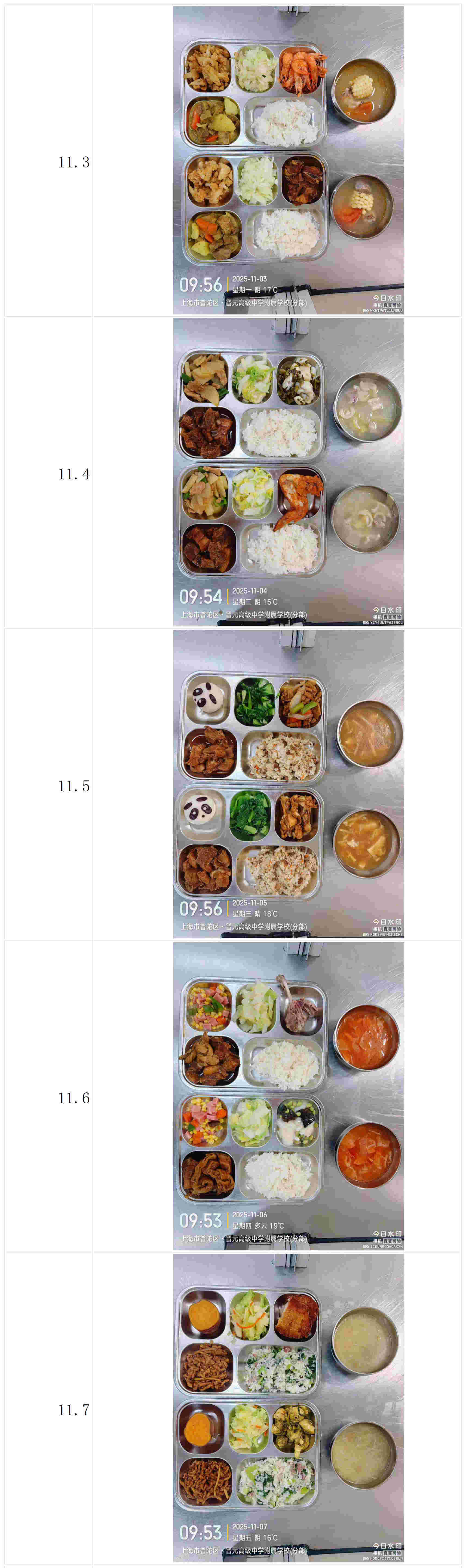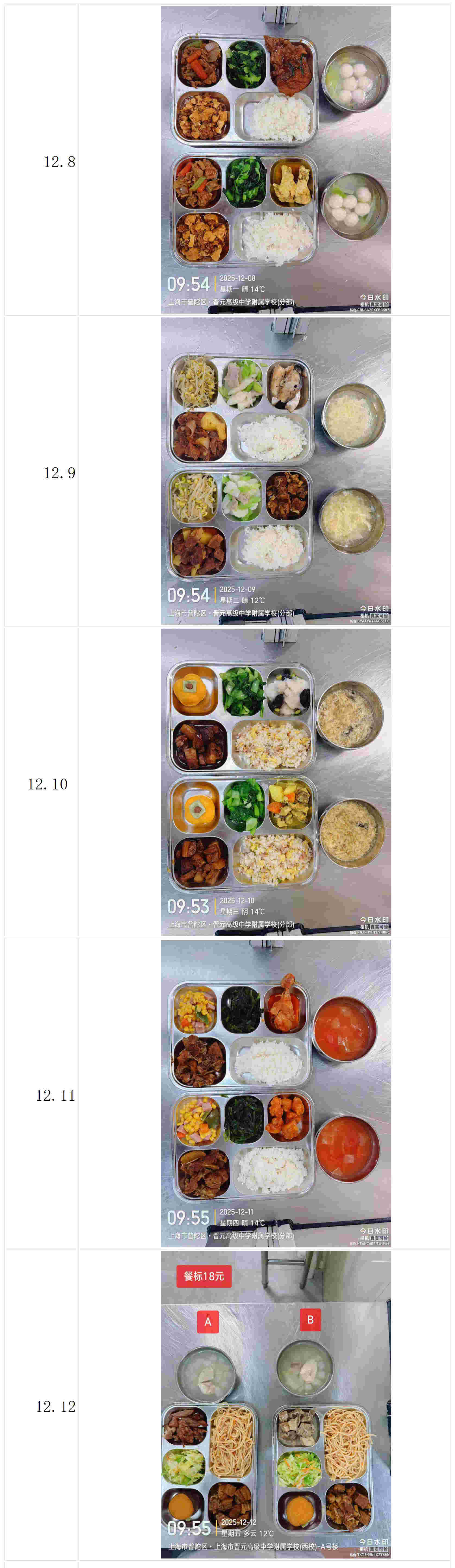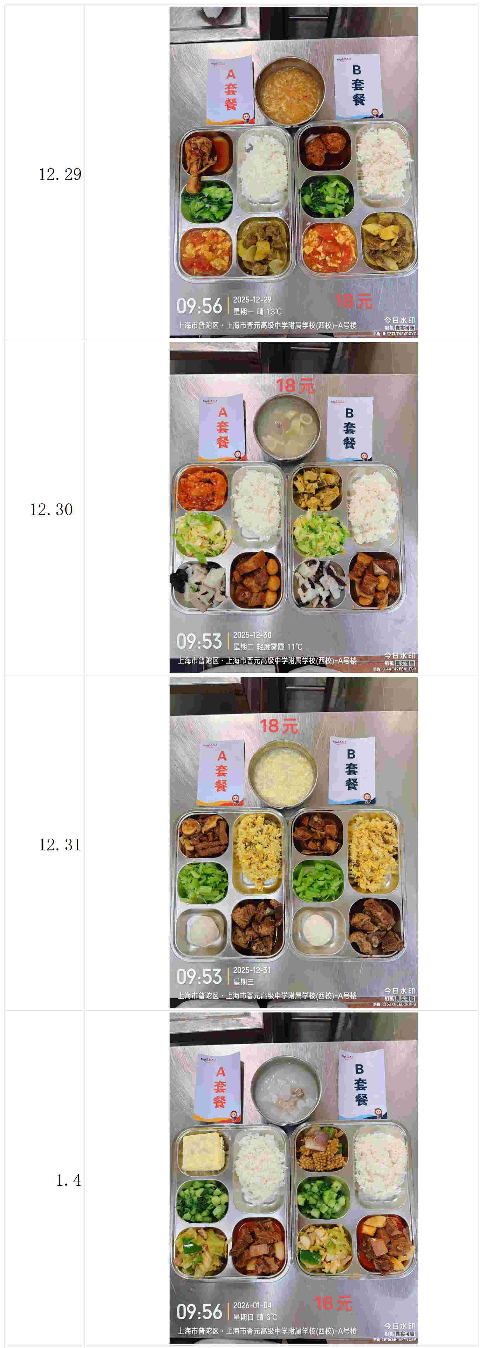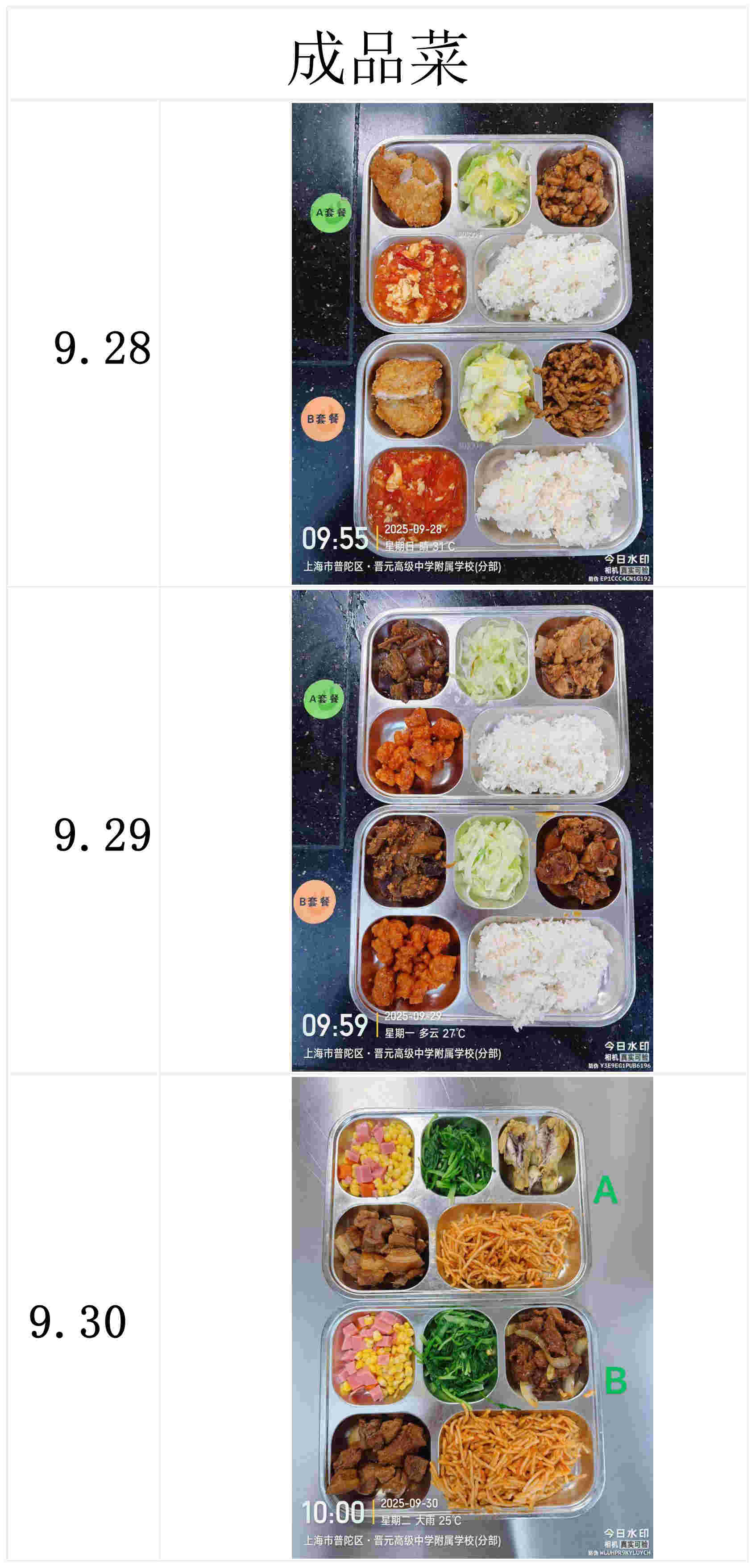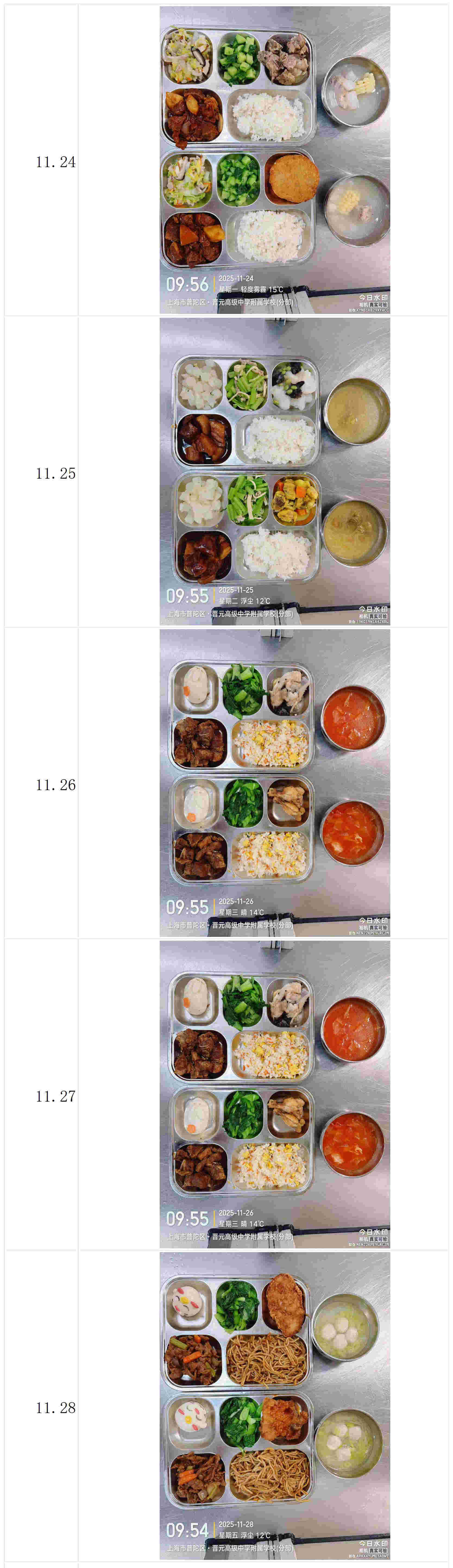 2025学年第一学期晋元附校(武威校区)学生午餐公示集锦