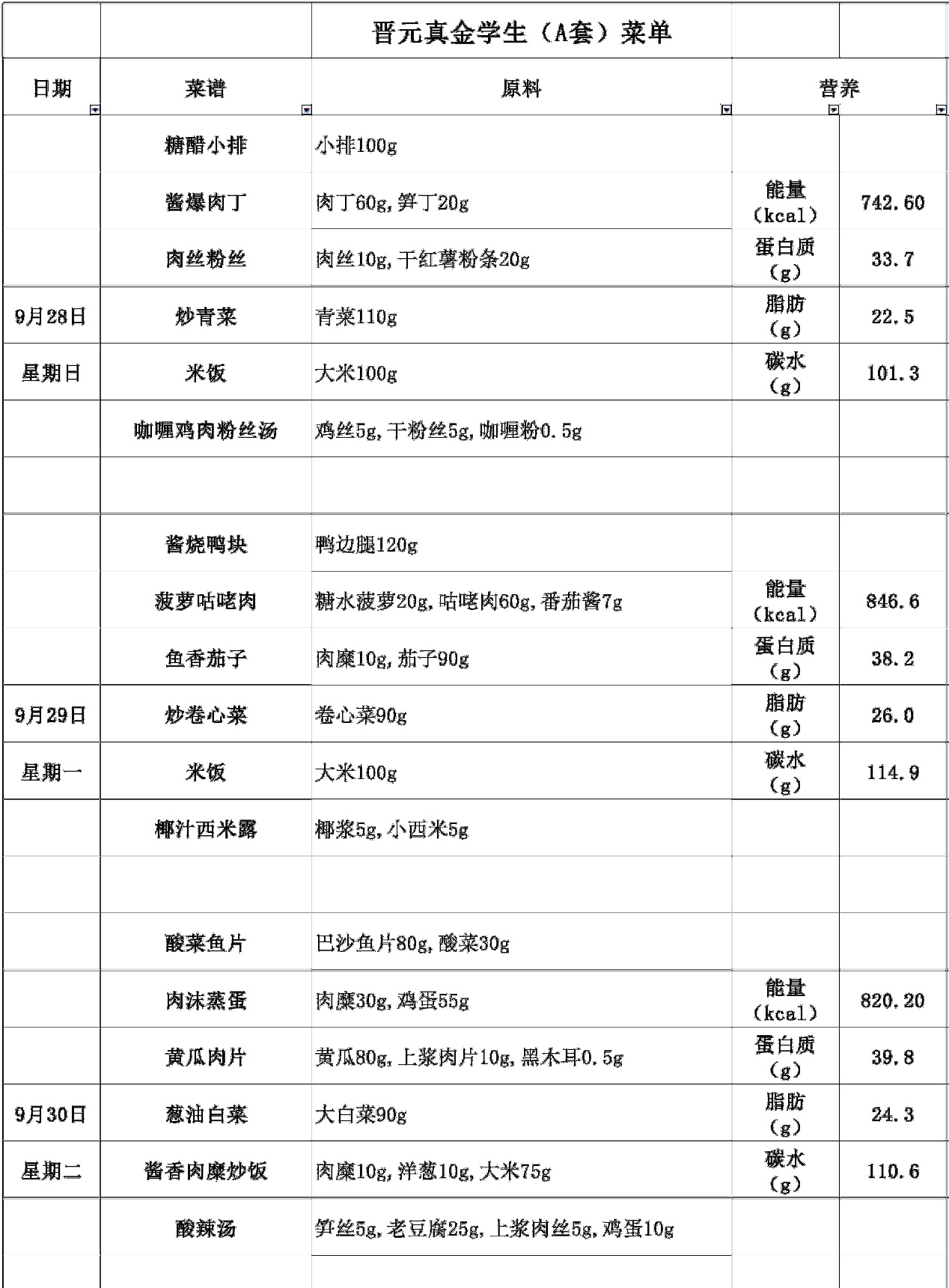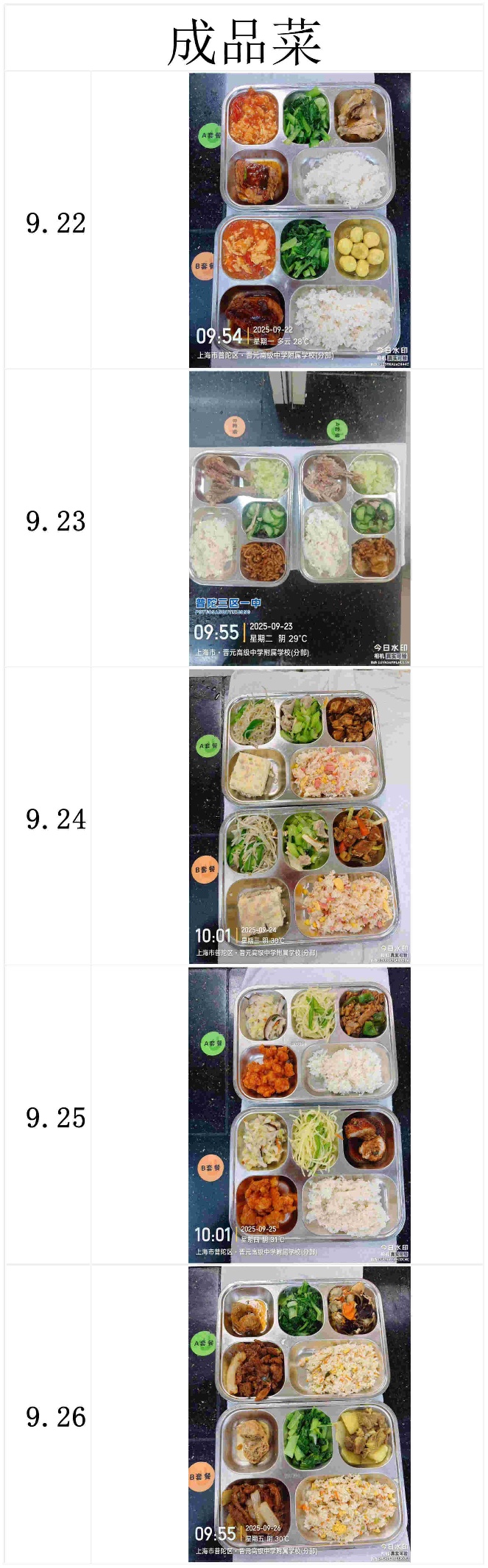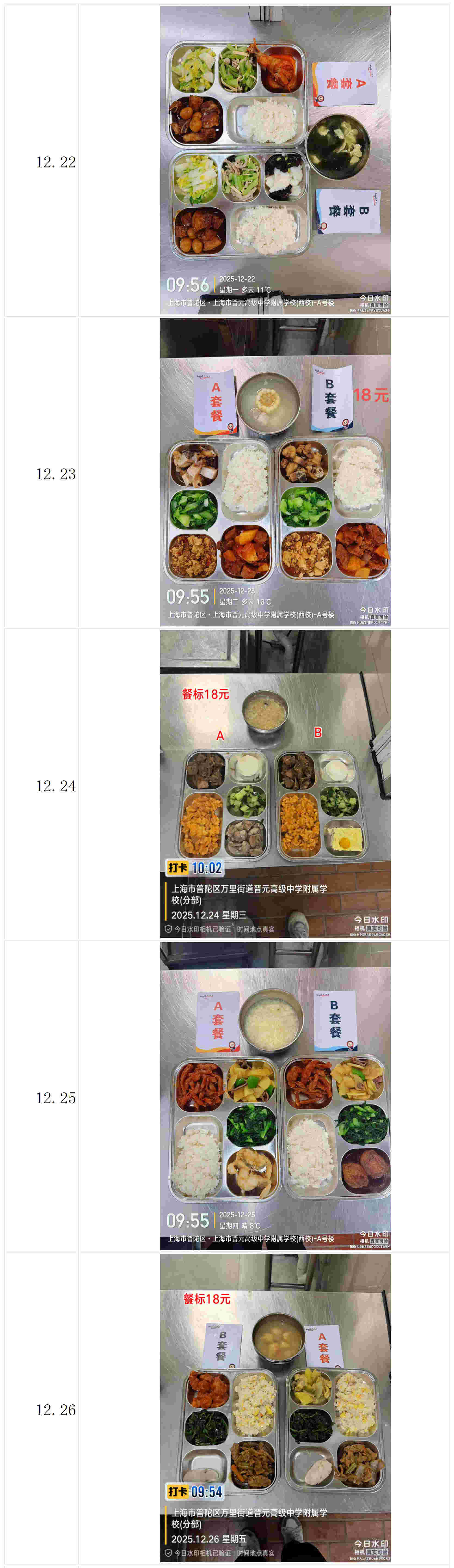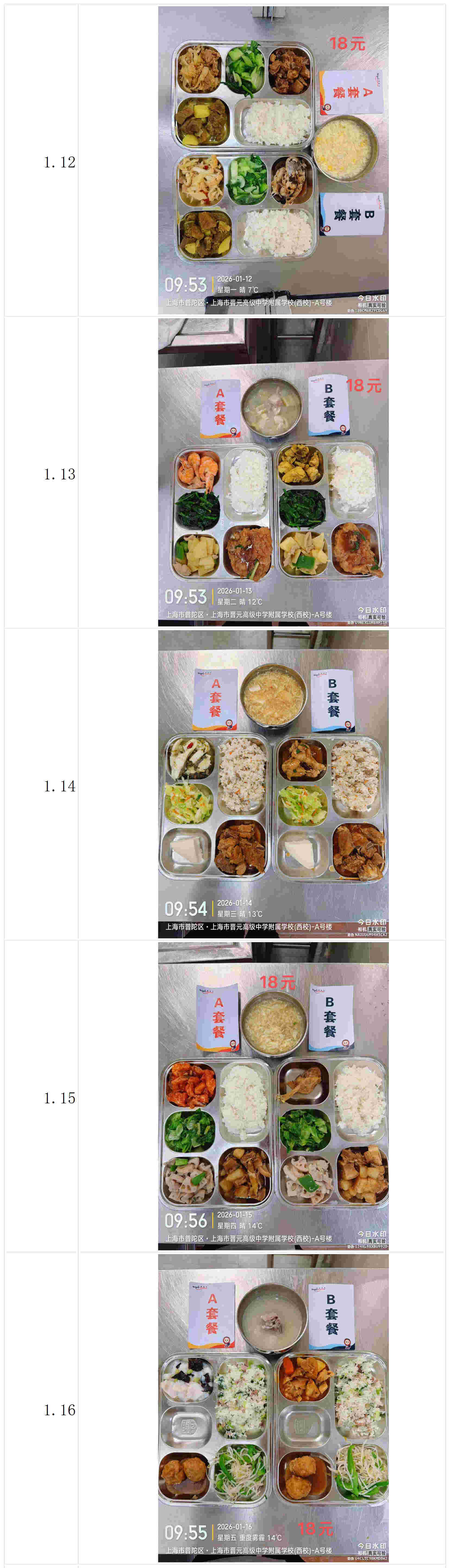 2025学年第一学期晋元附校(武威校区)学生午餐公示集锦