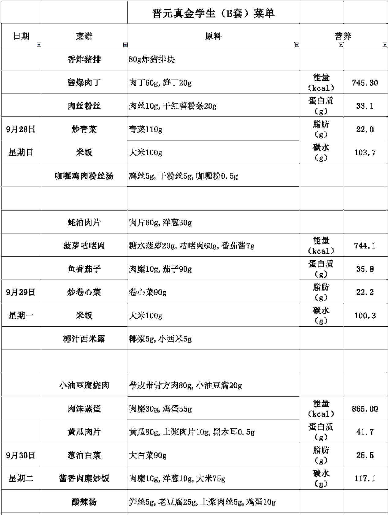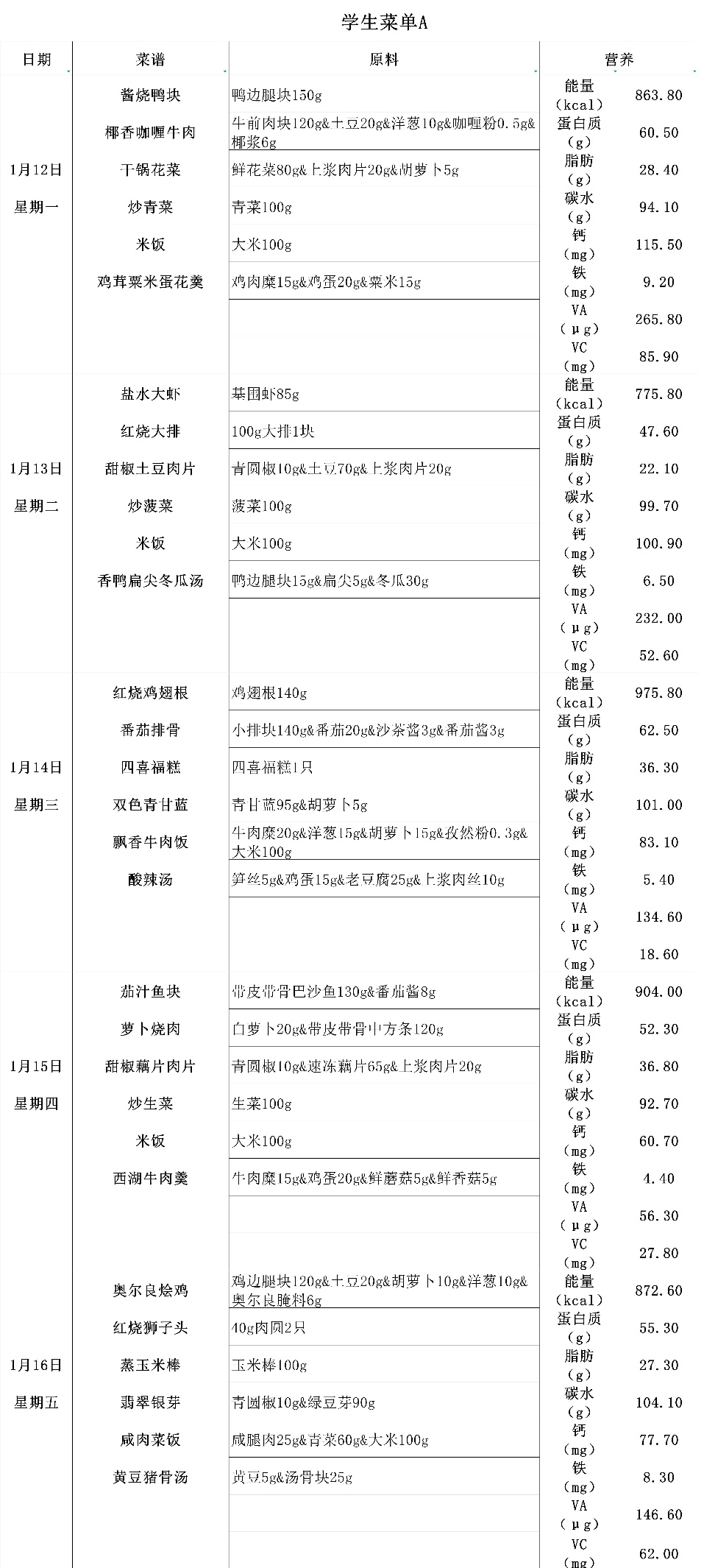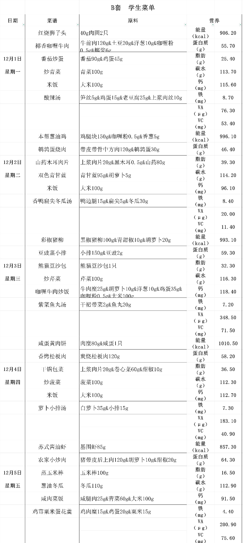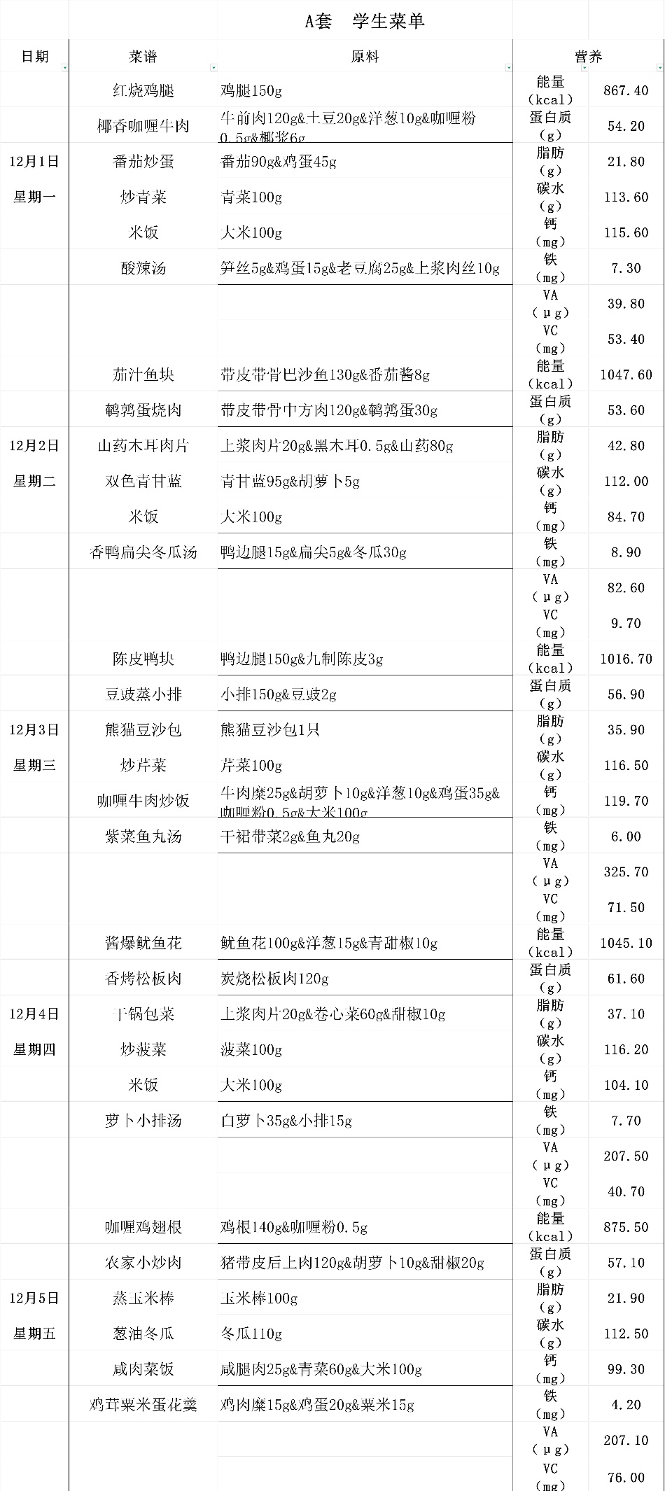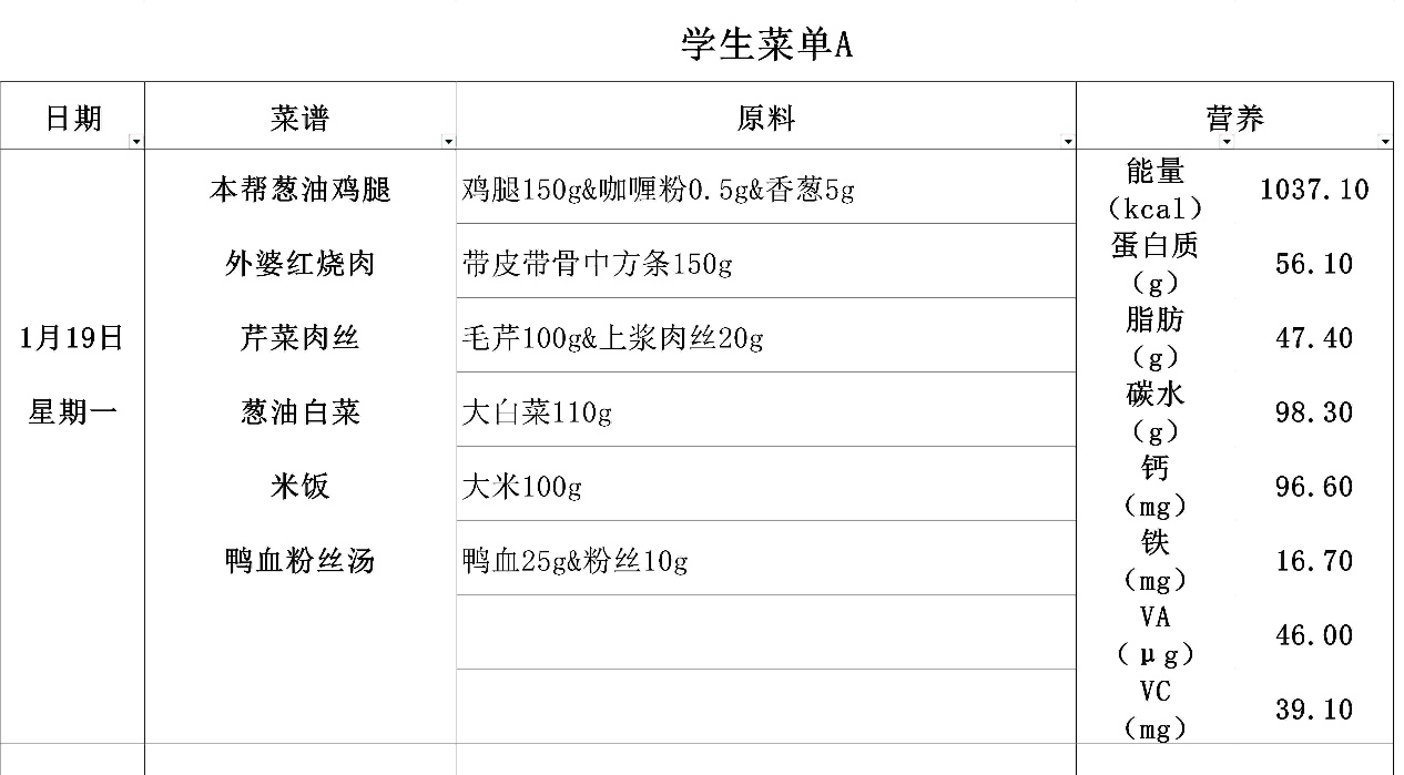 2025学年第一学期晋元附校(武威校区)学生午餐公示集锦