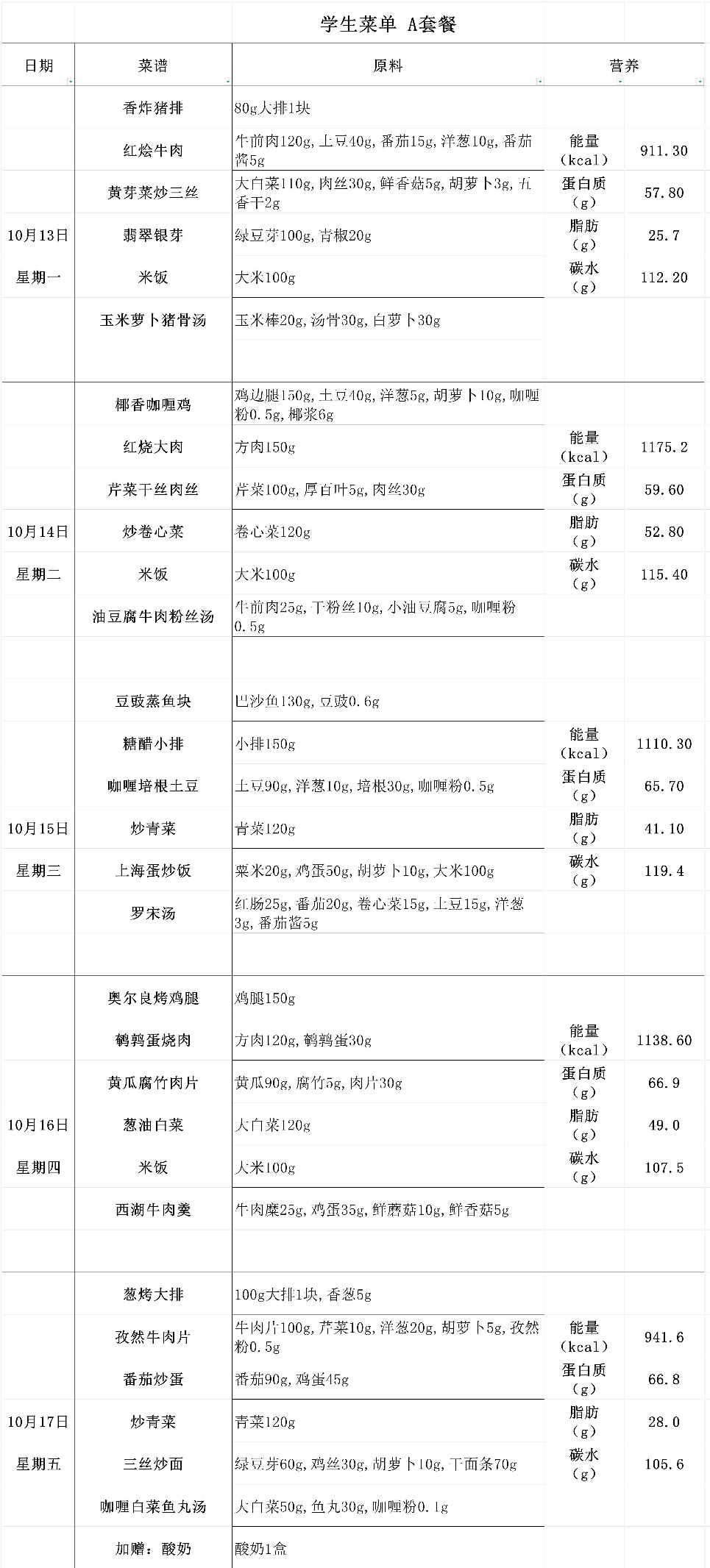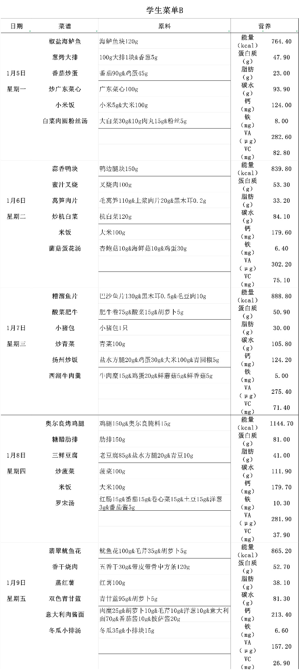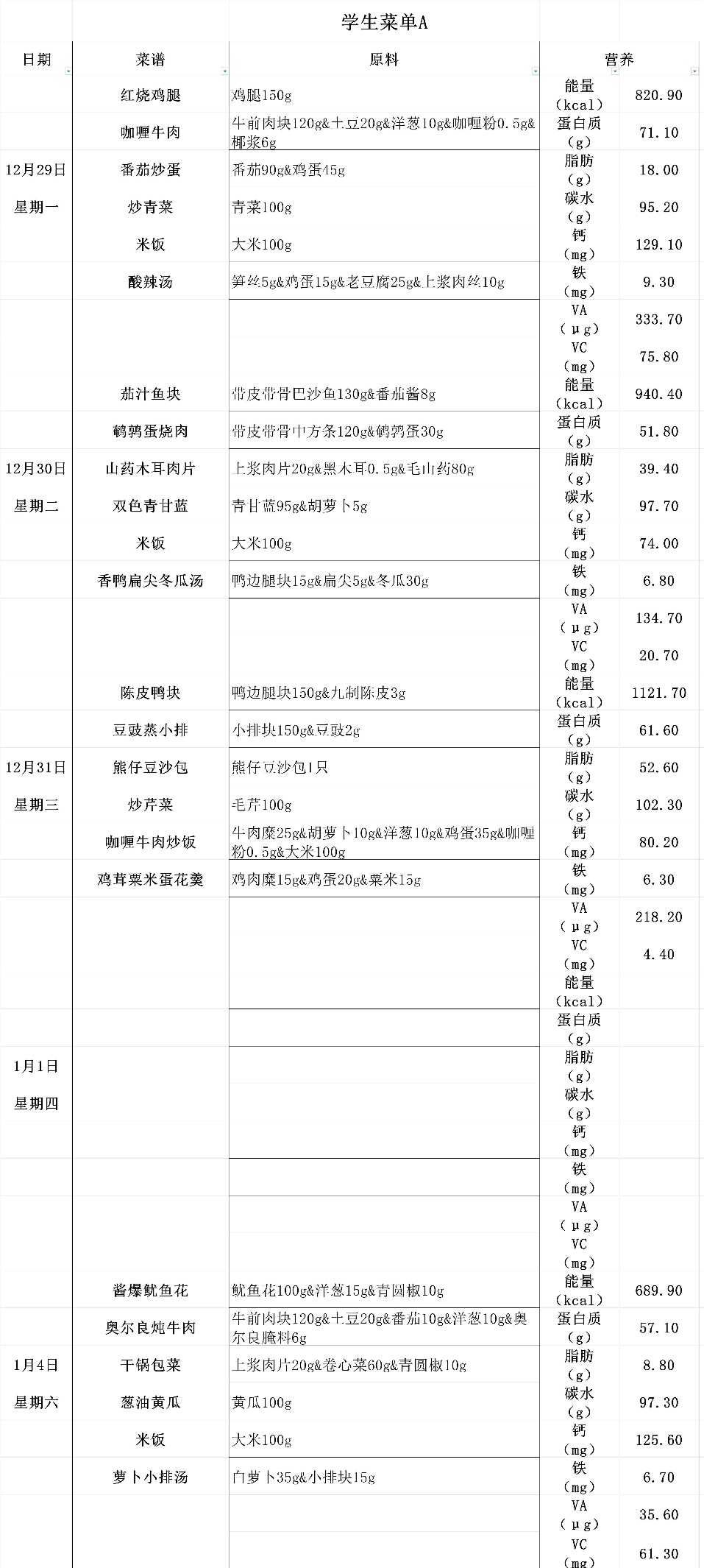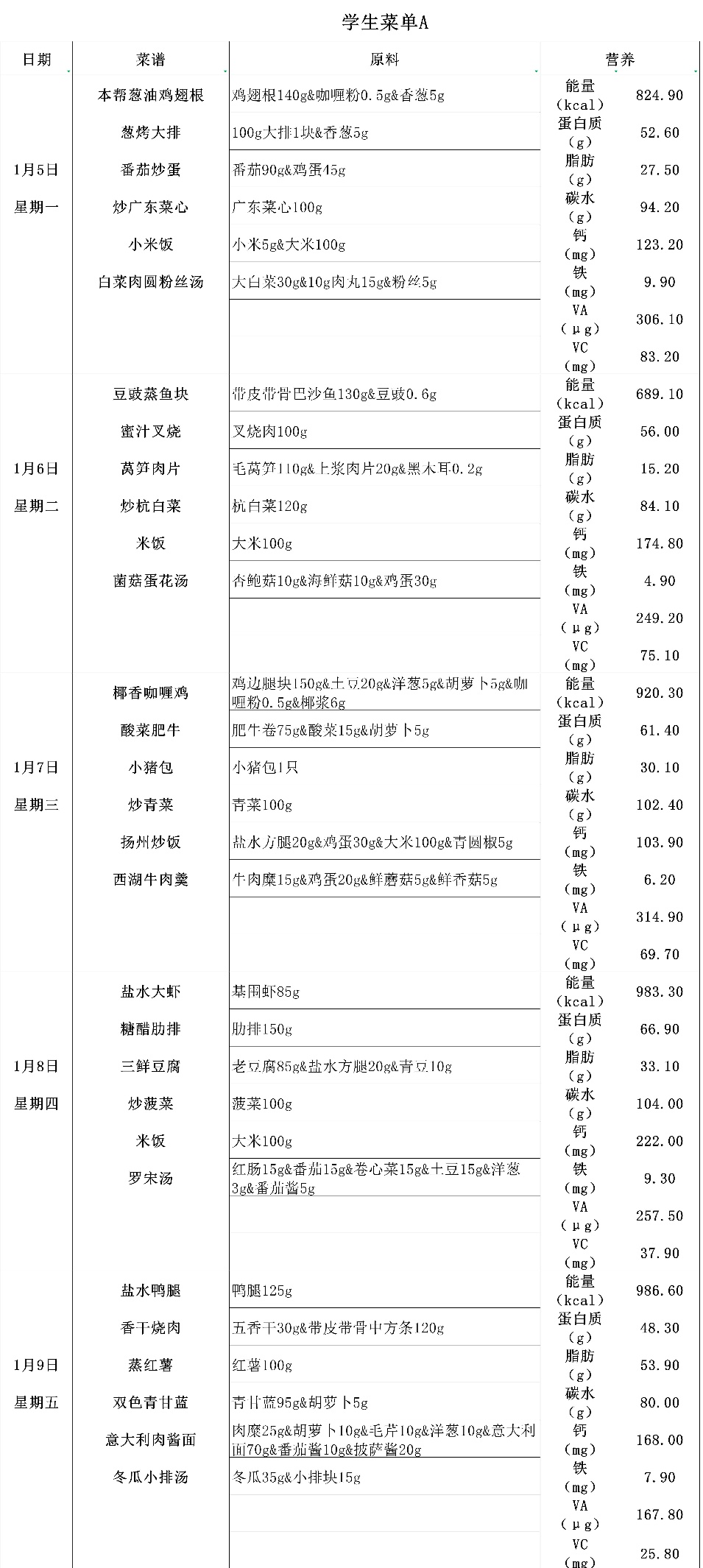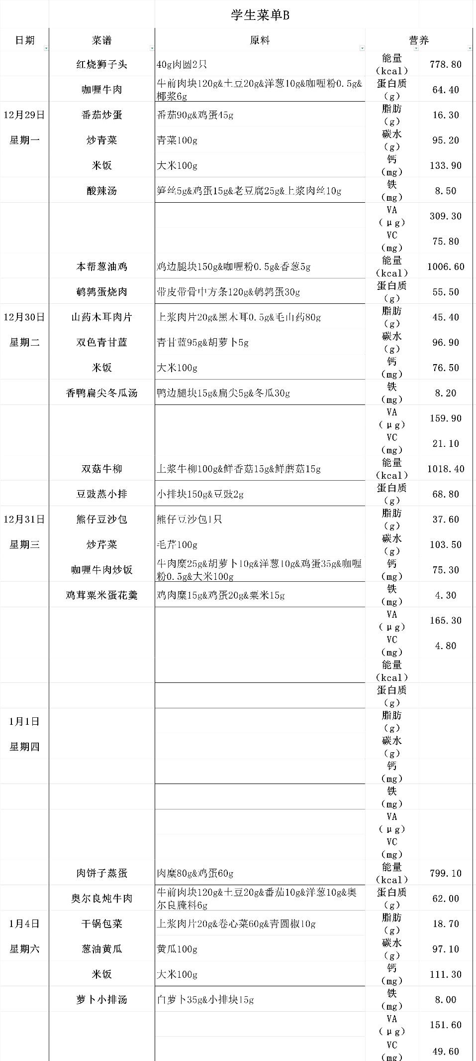 2025学年第一学期晋元附校(武威校区)学生午餐公示集锦