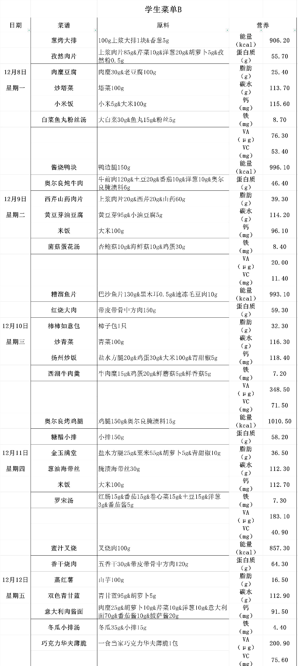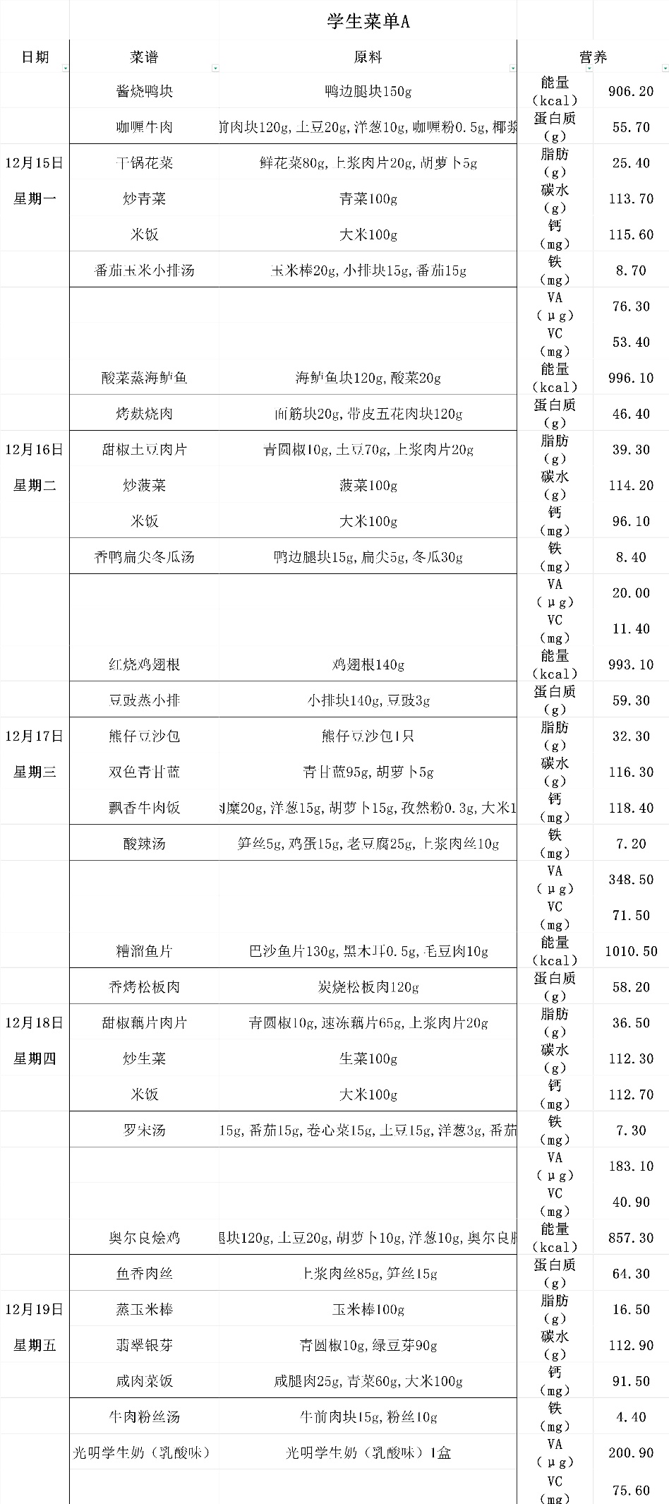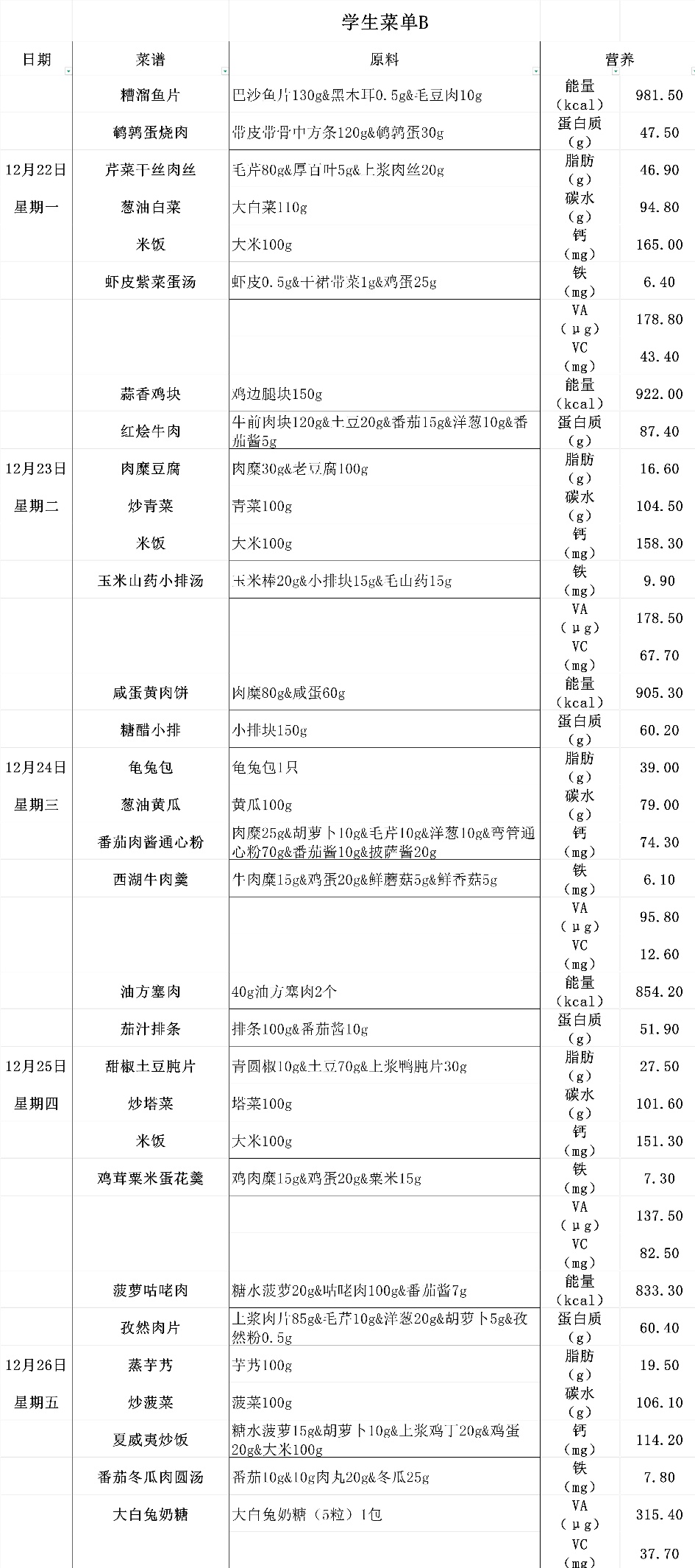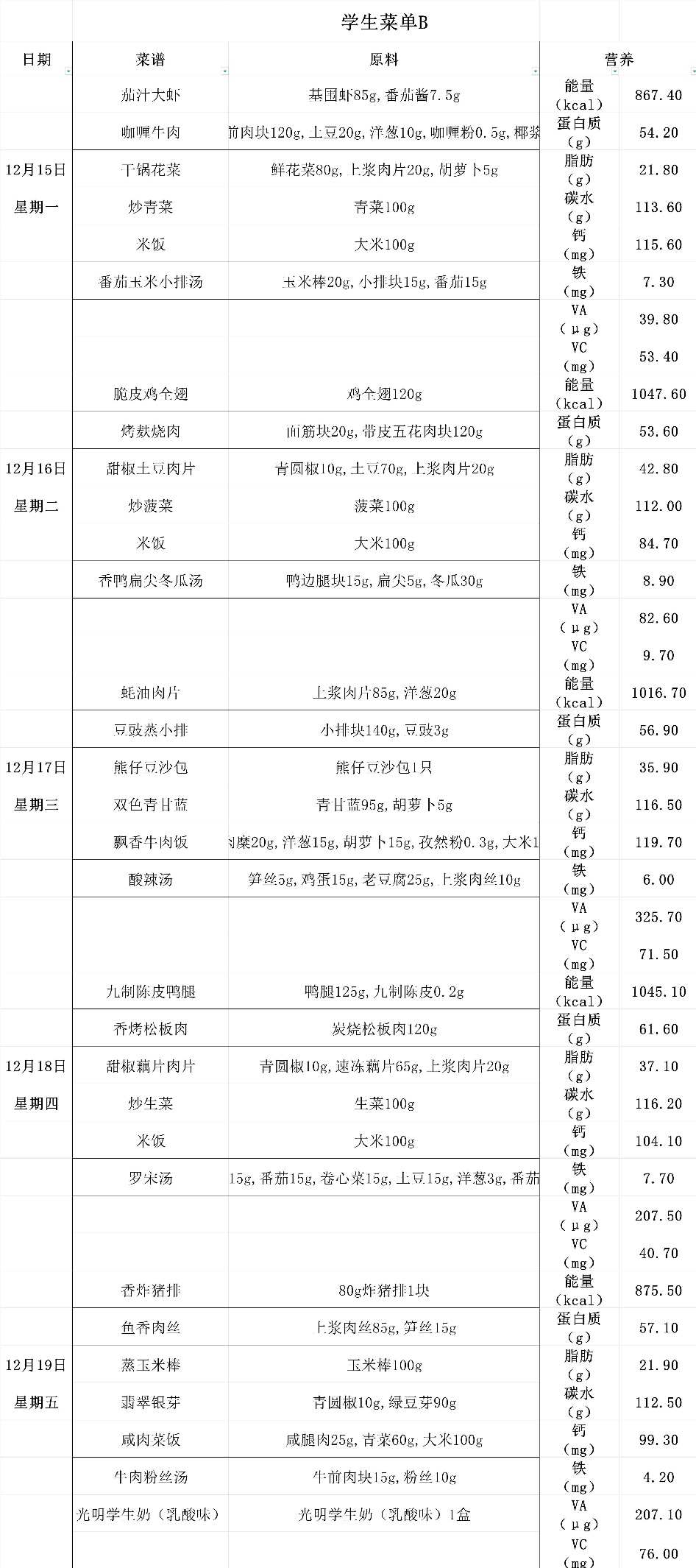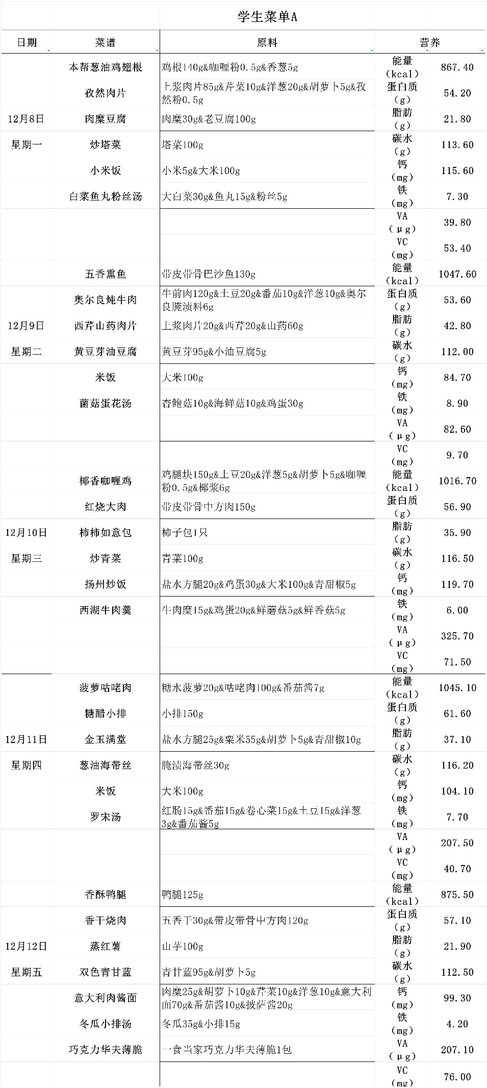2025学年第一学期晋元附校(武威校区)学生午餐公示集锦