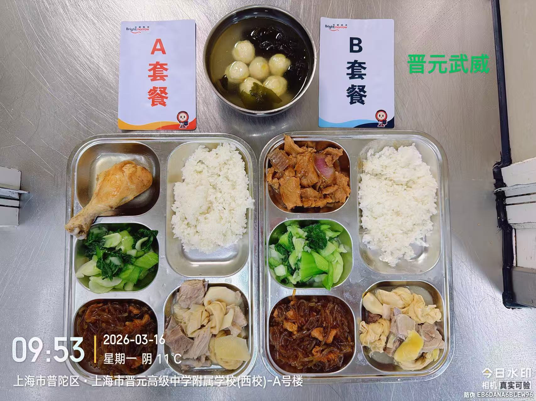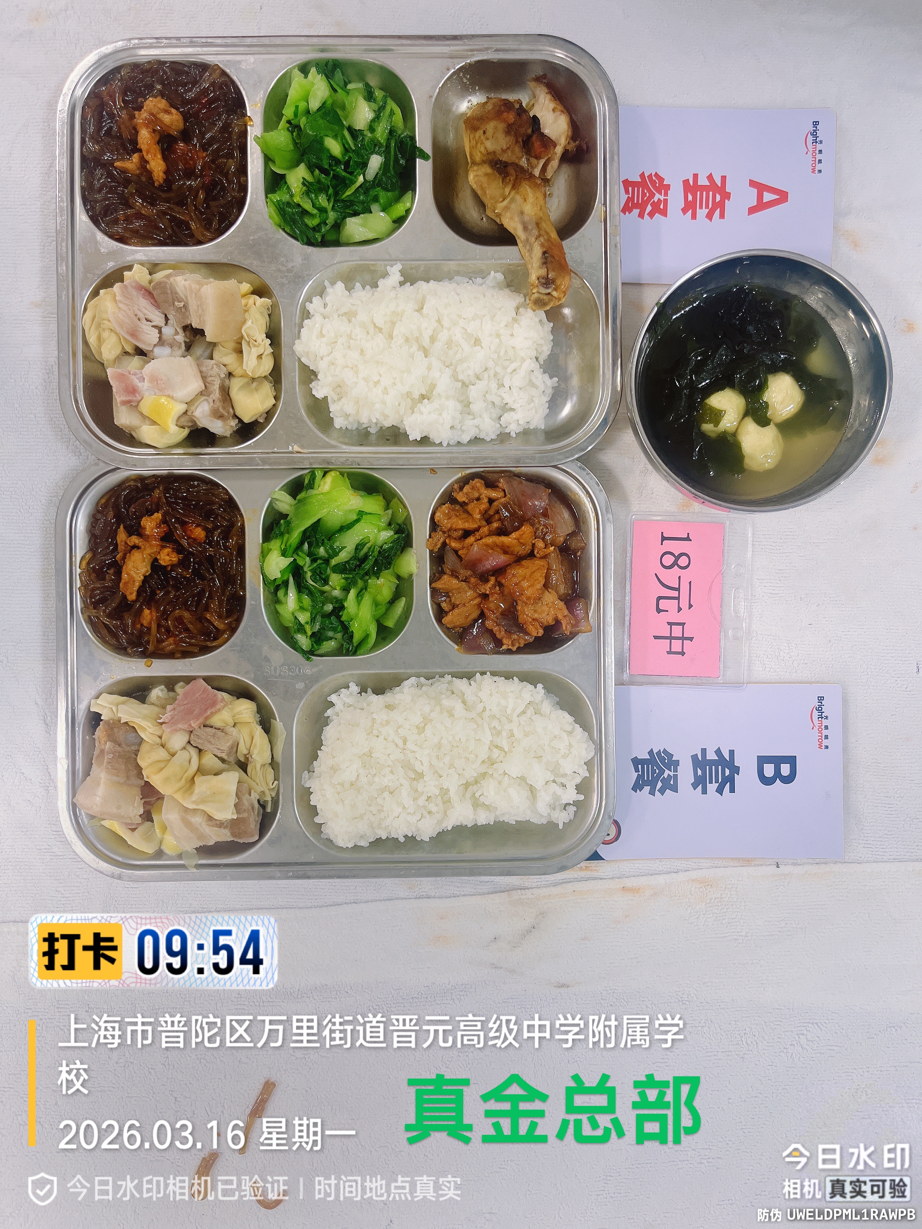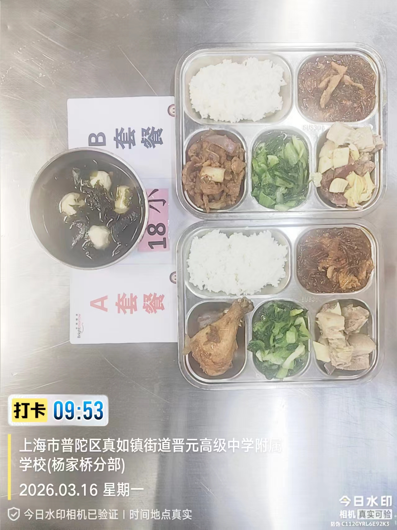 晋元附校、西校及南校三校四校区第三周学生午餐成品公示(3.16-3.20 每日更新 )