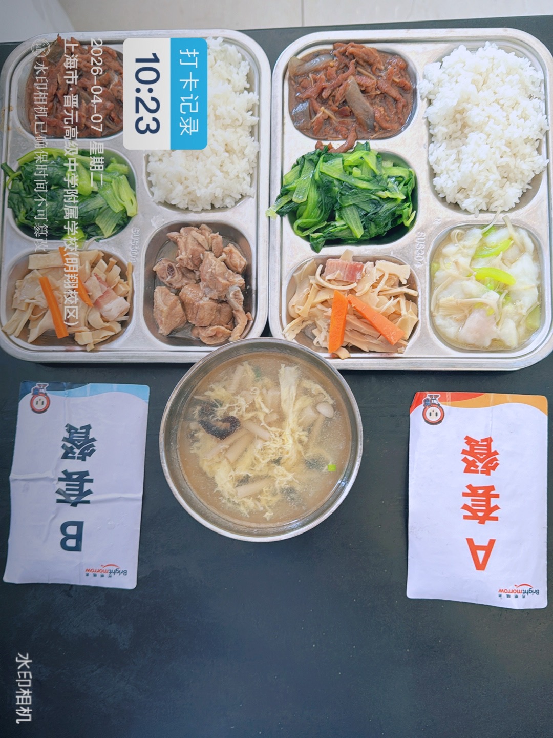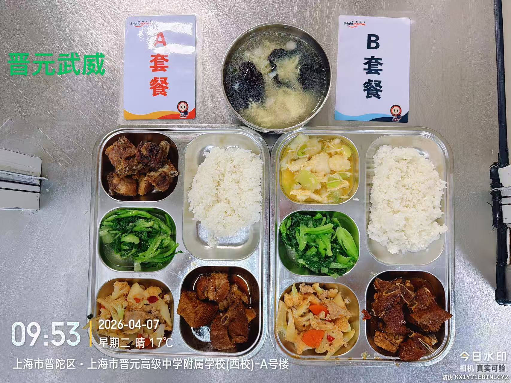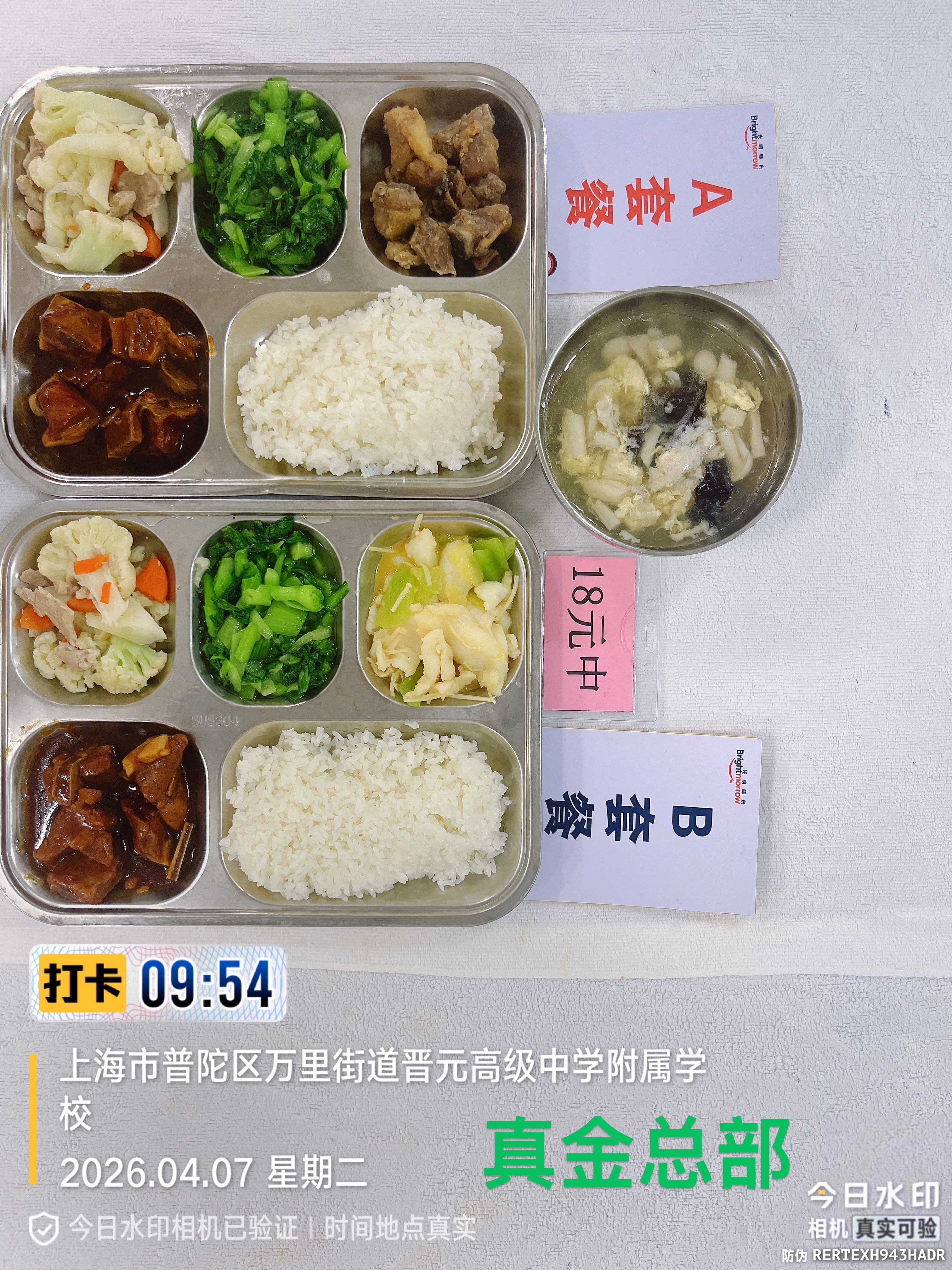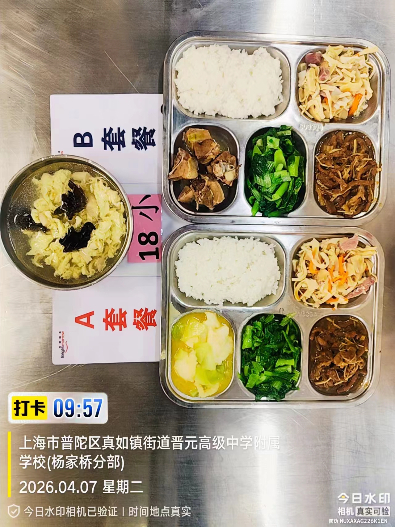 晋元附校、西校及南校三校四校区第六周学生午餐成品公示(4.7-4.10 每日更新 )