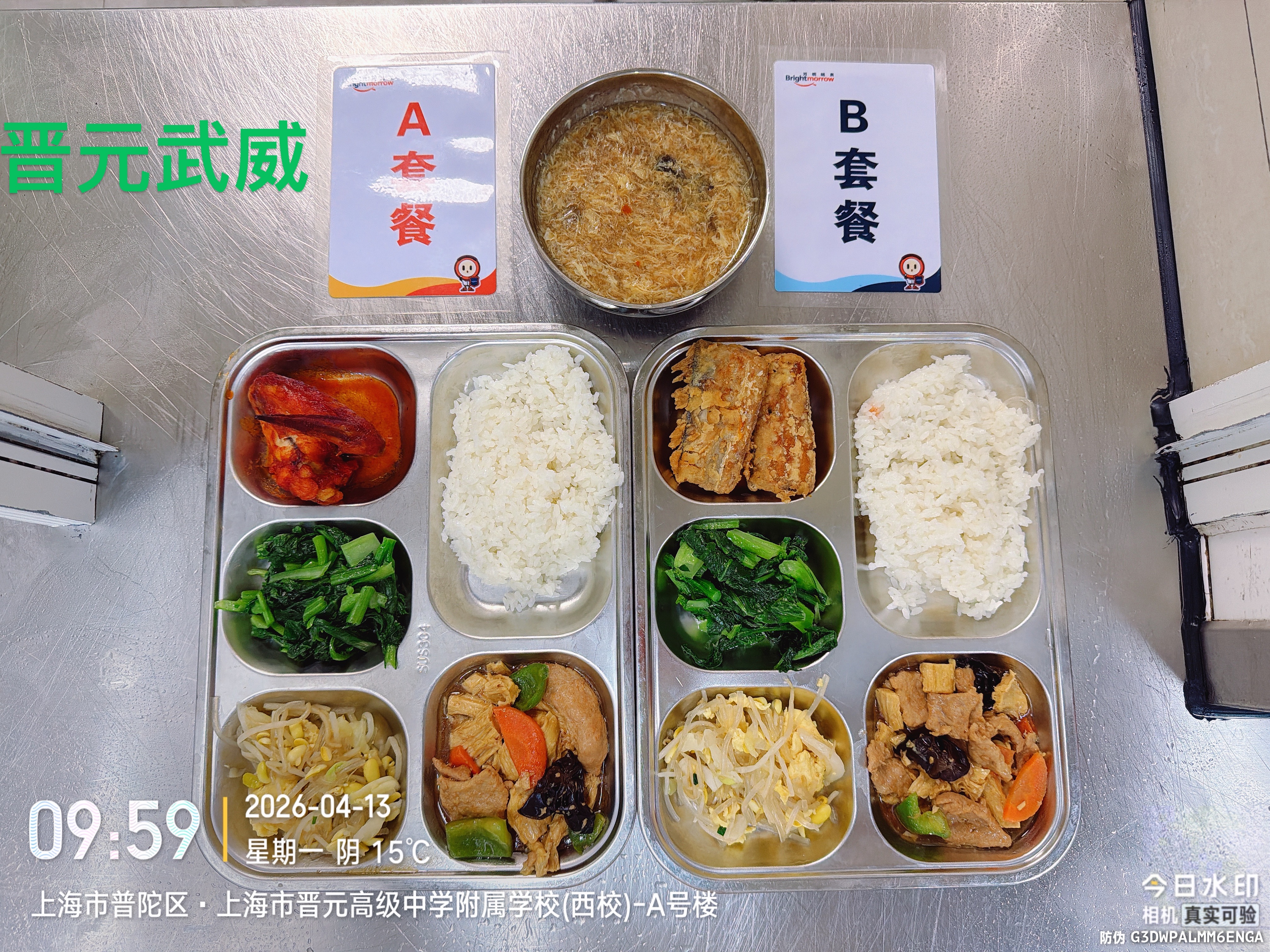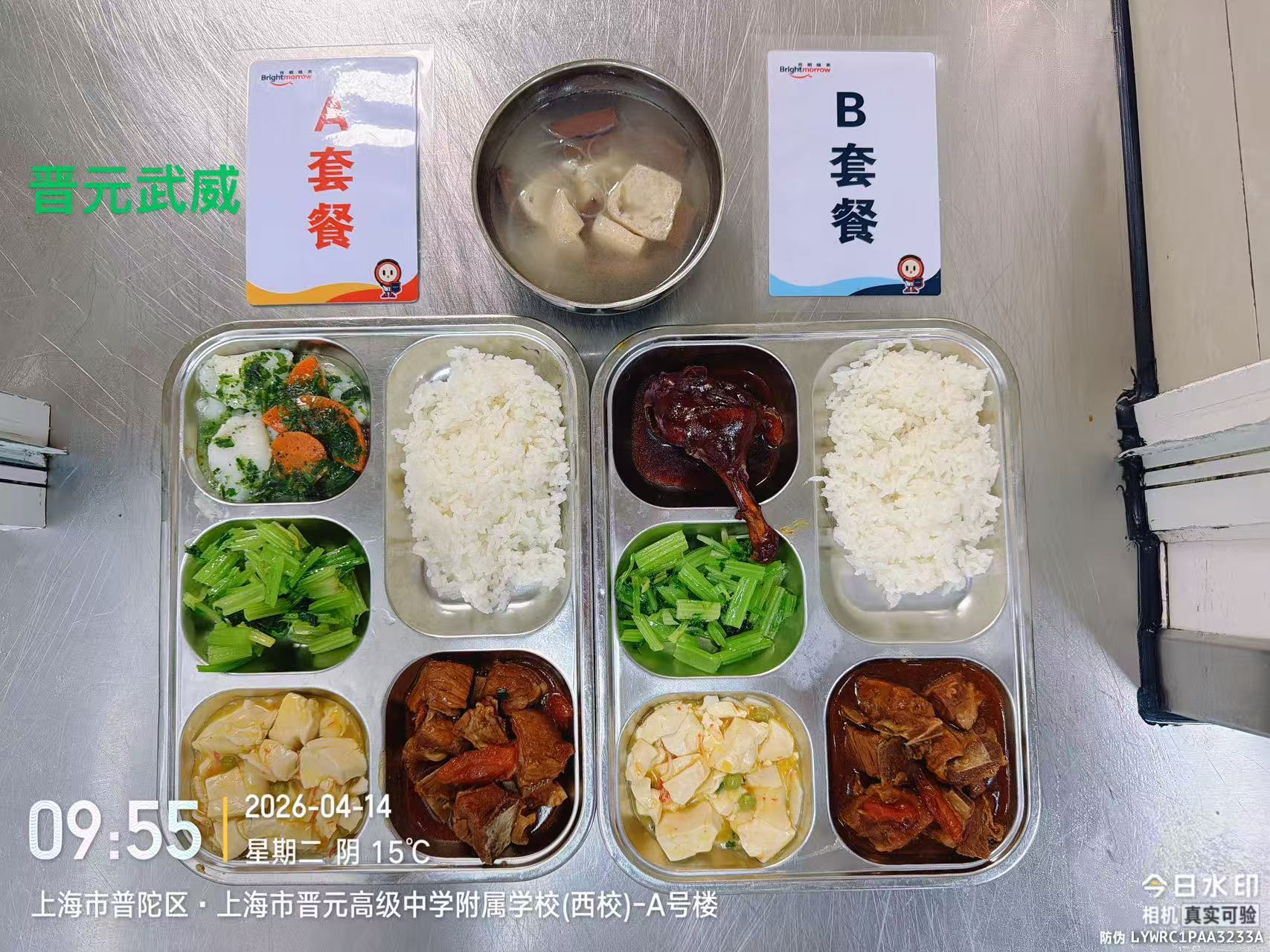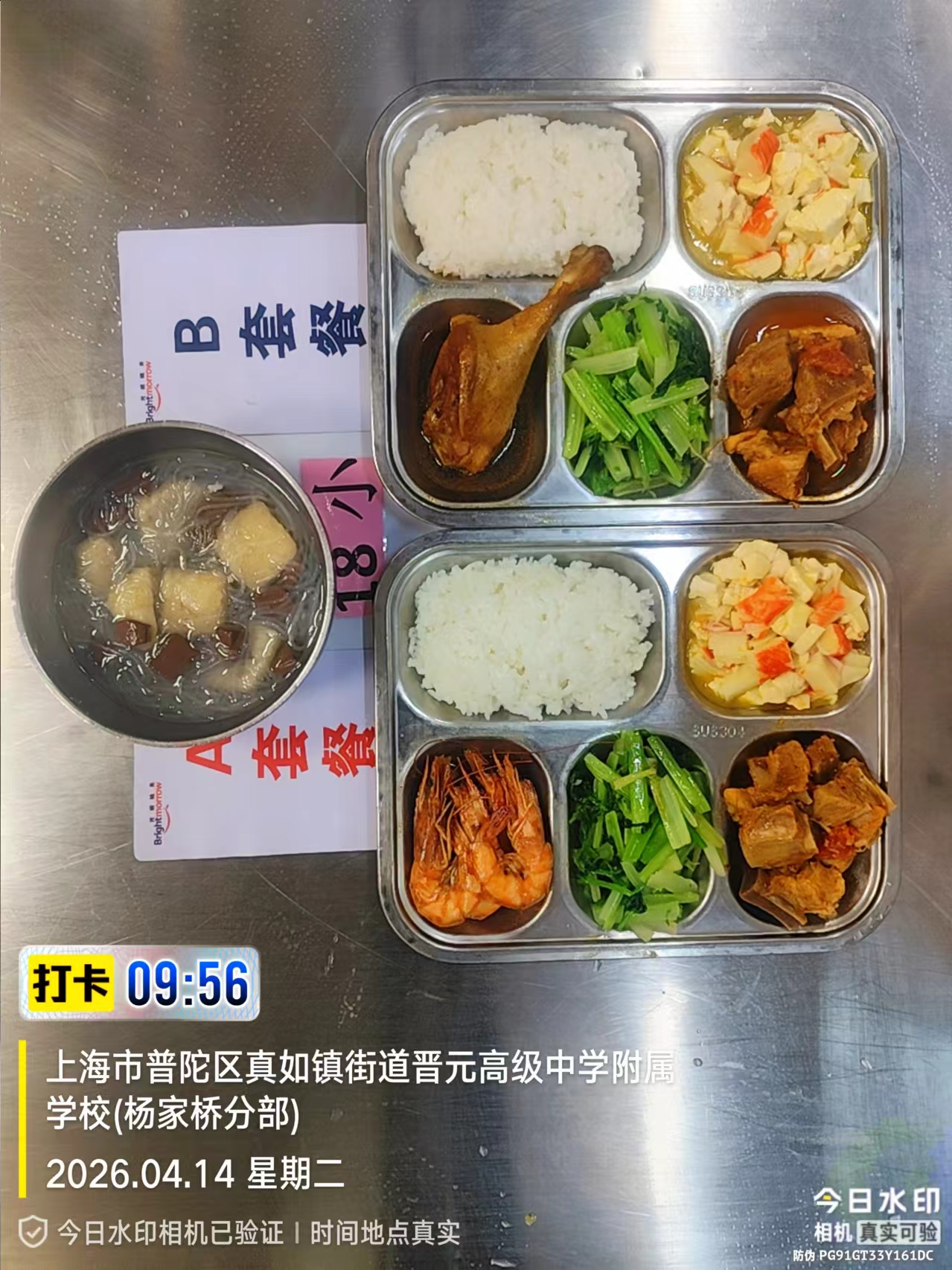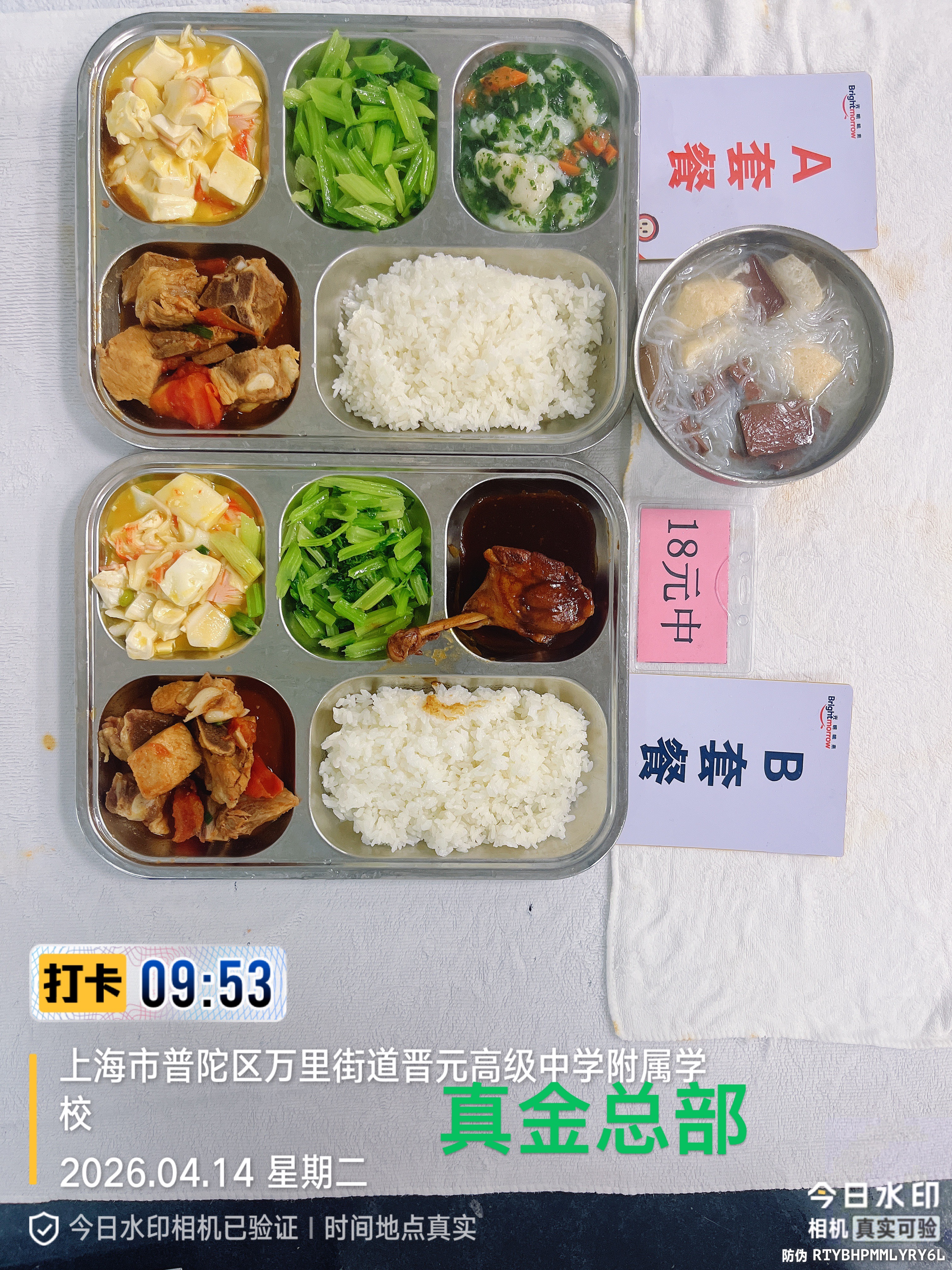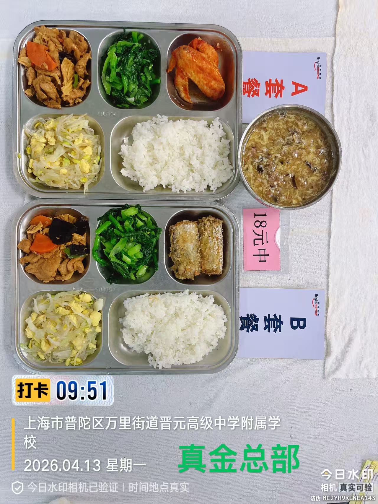 晋元附校、西校及南校三校四校区第七周学生午餐成品公示(4.13-4.17 每日更新 )