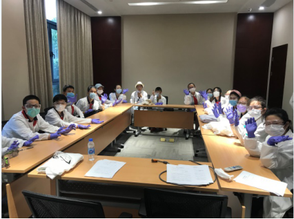 上海化工院国家重点实验室作为创新基地,给同学们带来了无数的感叹与奇妙的体验。每个进入实验室的同学都要签字承诺保证安全,并穿好防护服、戴防护眼镜、手套,负责本次参观的向导周慧老师强调“这是进入实验室的规则”,以此开启参观学习的序曲,让懵懂的同学们瞬间提高了职业规则意识。