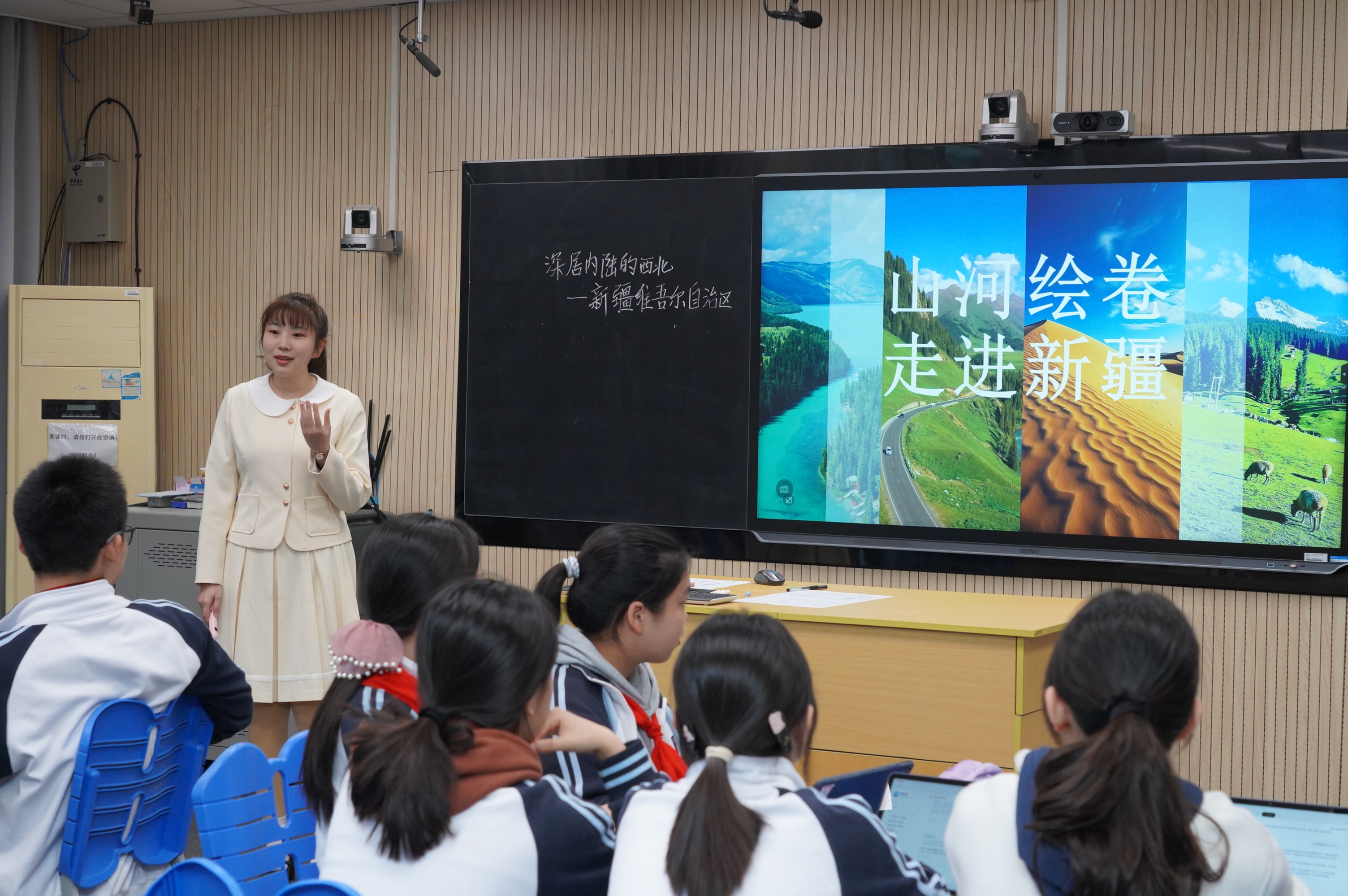 为深化数智技术与地理学科教学的深度融合,落实地理科学核心素养培养目标,11 月 13 日,我校地理教研组开展主题教研活动。中小学专业委员会执行主任兼秘书长陈庆贵、普陀区地理学科带头人高晓骏、晋元附校校长骆奇、科研室主任虞凌洁及地理教研组全体成员齐聚一堂,共同观摩青年骨干教师杨婧老师依托即梦AI、北斗AR、智能体等数智工具带来的 AI 赋能展示课《深居内陆的西北 —— 新疆》,聚焦新时代地理教学创新路径。