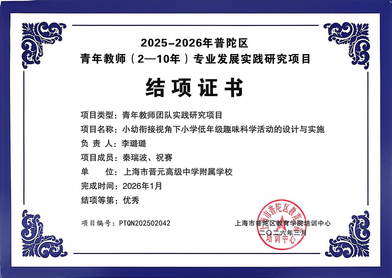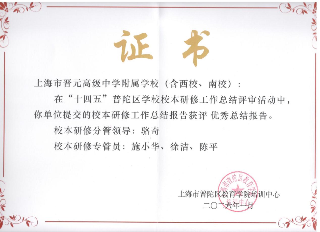 热烈祝贺我校在“十四五”普陀区校本研修工作总结评审中获评优秀总结报告