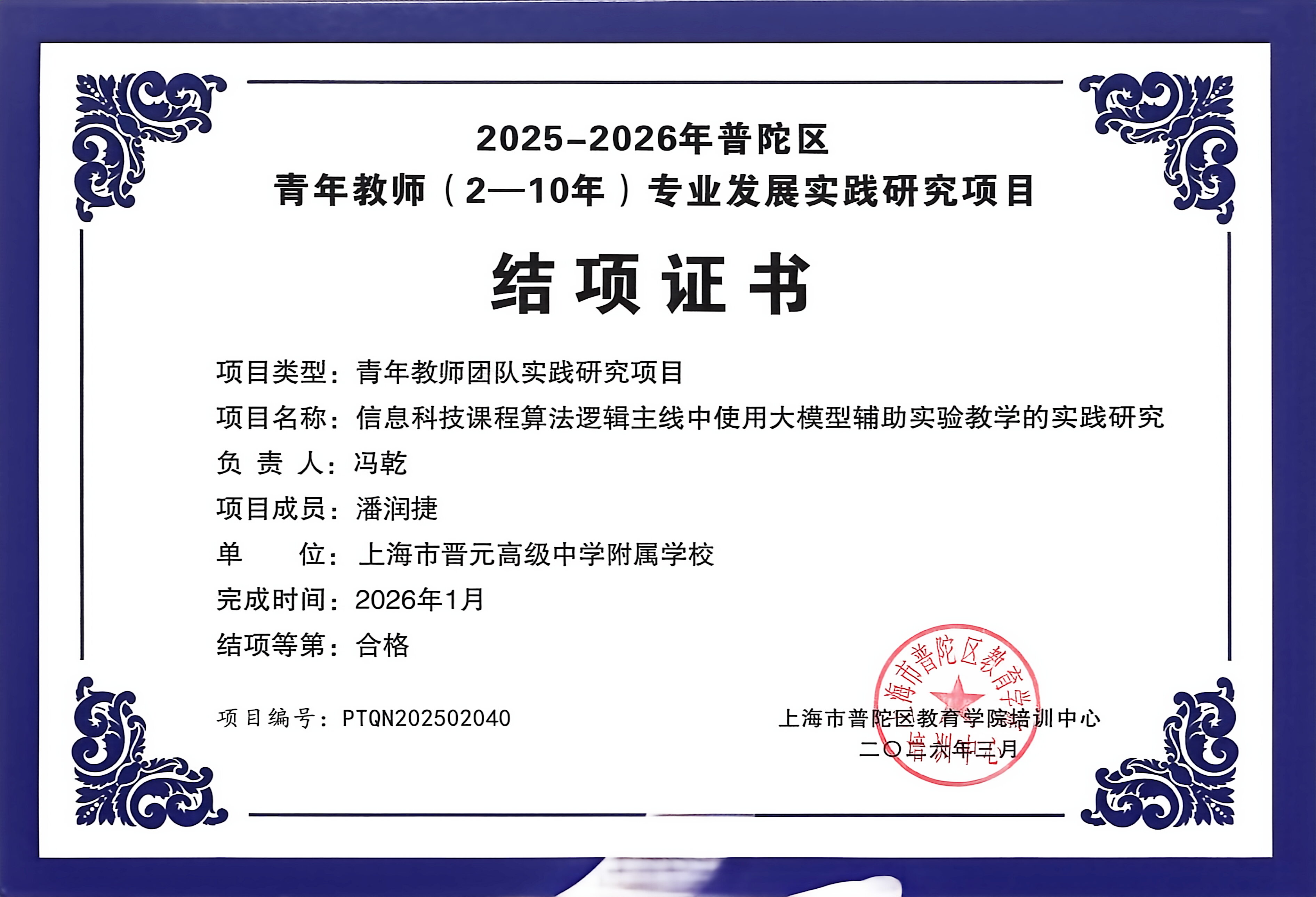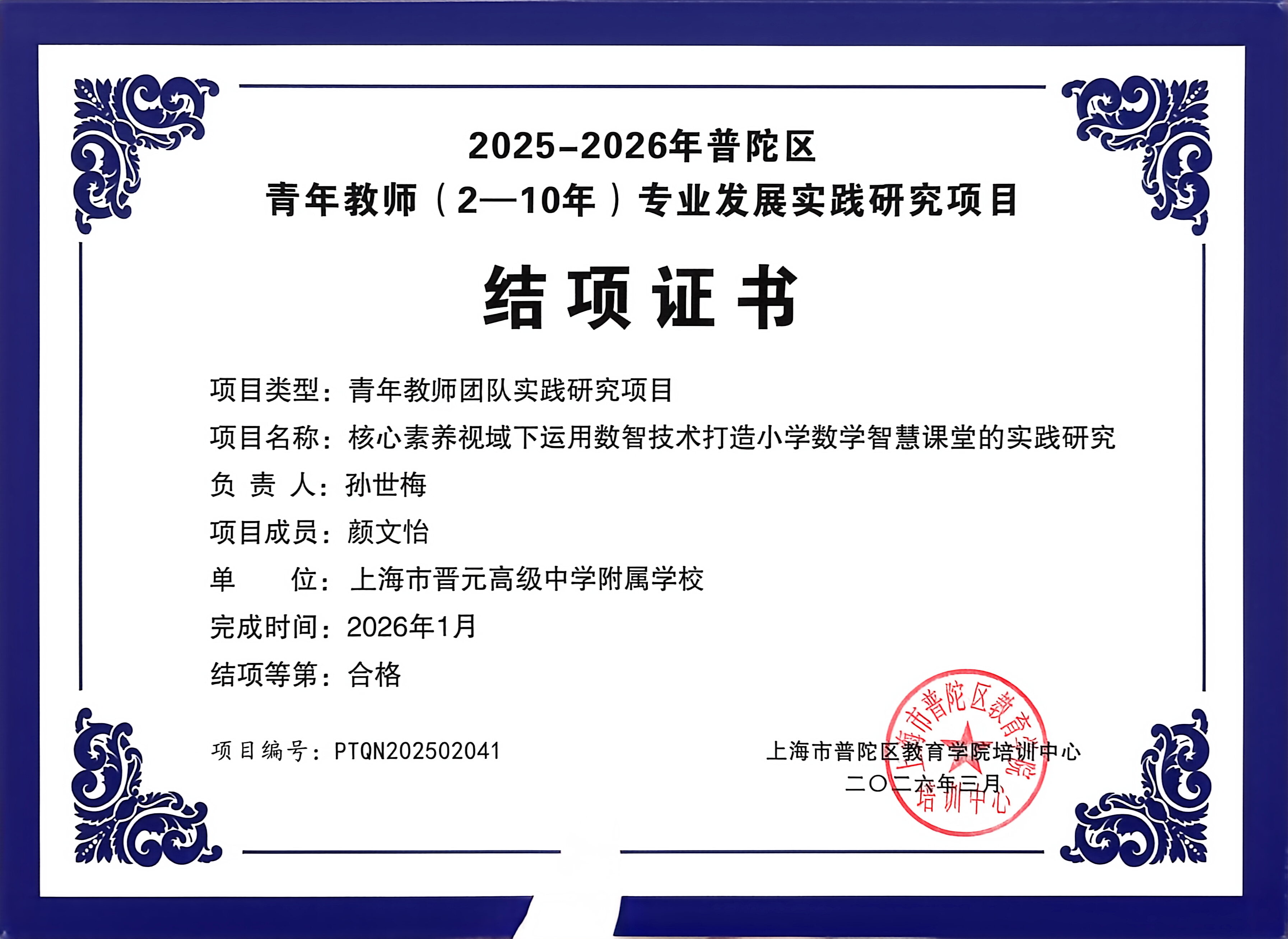 我校市级青年教师专业发展实践研究项目成功